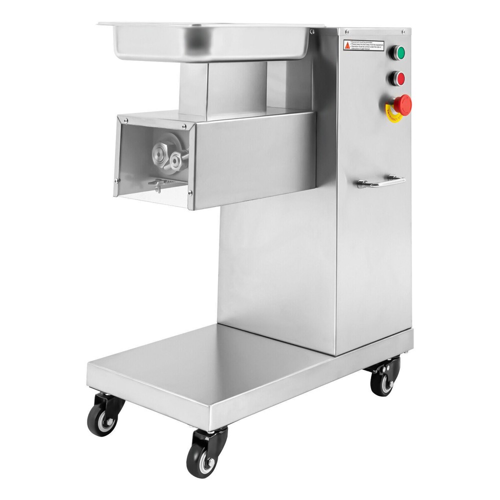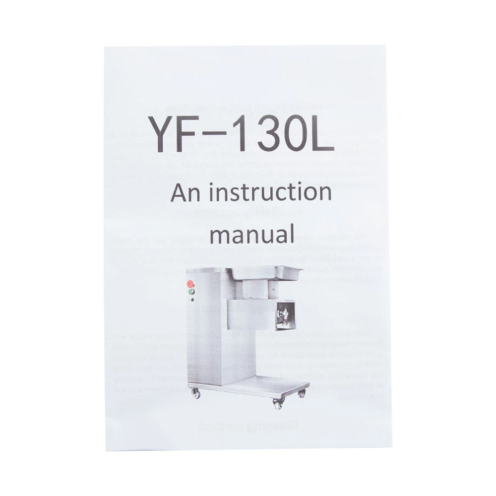 Specification Model: F-130L Material: 3Cr13(Stainless Steel), 201Stainless Steel Voltage: 110V Frequency: 60HZ Power: 850W Output: 500kg/h/1100lbs/h Mounting Type: Free-standing Bladet Specification: 3mm/0.2in Size of Feed Opening: 14.1*6.6cm/5.55*2.59in Blade Set Size: 20*18*10cm/7.87*7.08*3.93in Color: Silver Motor: Pure Copper Motor Process: Wire-drawing, Laser Cutting Gross Weight: 55kg/121.25lbs Net Weight: 37kg/81.57lbs Package Size: 62*40*83cm/24.4*15.7*32.6in Product Size: 54.5*33*66cm/21.46*12.99*25.98in Package Included 1*Commercial Meat Cutter 1*Tray 1*English User Manual All Accessories Needed for Installation 850W Commercial Meat Cutter Machine 500 kg/h Electric Meat Slicer with 3mm Blade 850W Meat Cutting Machine Electric Meat Cutter Slicer Dicer 3mm Blade 1100LB/H Description To create a better life, we need to start with every detail. This commercial meat cutter is designed to reduce the cooking burden, improve slicing efficiency, and free your hands to enjoy a creative kitchen life. Efficient commercial meat cutter is an ideal assistant for restaurants and hotels. Application The electric meat cutter is perfect for homes, meat processing businesses, restaurants, butcher shop, hotel kitchen, BBQ shop, dumpling house, and hot pot restaurant. The first time cut into meat slices, the second time cut into strips, and the third time cut into cubes. You can cut into the shape you want according to your needs. How to Install the Blade Set 1. Start the installation. 2. Align the card pins. 3. Install the blade set. 4. Install the spring. 5. Install the nut. 6. Complete the installation. Specification Model: F-130L Material: 3Cr13(Stainless Steel), 201Stainless Steel Voltage: 110V Frequency: 60HZ Power: 850W Output: 500kg/h/1100lbs/h Mounting Type: Free-standing Bladet Specification: 3mm/0.2in Size of Feed Opening: 14.1*6.6cm/5.55*2.59in Blade Set Size: 20*18*10cm/7.87*7.08*3.93in Color: Silver Motor: Pure Copper Motor Process: Wire-drawing, Laser Cutting Gross Weight: 55kg/121.25lbs Net Weight: 37kg/81.57lbs Package Size: 62*40*83cm/24.4*15.7*32.6in Product Size: 54.5*33*66cm/21.46*12.99*25.98in Package Included 1*Commercial Meat Cutter 1*Tray 1*English User Manual All Accessories Needed for Installation Key Features Precise and Even Cutting: You can say goodbye to laborious manual cutting as you can get even slices, strips or shreds of meat by simply pressing the knob on the panel. Uniform cutting helps to cook and maintain the taste and appearance of food in better condition. High-quality Material: This commercial meat cutter is made of high-quality 201 stainless steel. The stainless steel with high strength, impact resistance, and corrosion resistance makes the product have a long service life. Powerful Cutting Function: The product can easily make meat slices, shredded meat, and minced meat (cut into pieces once, cut into strips twice, and cut into minced meat three times) by using a thickened and enlarged stainless steel blade set. The strong cutting ability makes it an ideal assistant for restaurants, and meat markets. High Efficiency: The commercial meat cutter uses a 850W motor to provide powerful power, ensuring an excellent output of 500kg/1100lb per hour. Such an efficient meat cutter can meet the needs of restaurants, markets, and other commercial places. Stable and Low-noise: The pure copper motor has lower resistance and lower heat output, which is more durable and power-saving than the aluminum motor. Its low working noise can create a quiet working environment for you. Easy to Clean: Removable blade set and smooth stainless steel surface make this product easy to clean. You just need to wipe it gently with a damp cloth, which is very convenient. Space-saving : The meat cutter with a vertical design makes full use of vertical space. Only 21.46 * 12.99 inches of floor space will not take up too much space for you to easily place it in the kitchen. Flexible Movement&Fixation: The bottom of the product is equipped with four universal wheels that can rotate 360 ° (two of which are equipped with brakes) to allow you to move and fix it easily. Exquisite Process: Exquisite wire drawing process is adopted on the surface of the product to improve its corrosion resistance and wear resistance. The smooth surface presents a shiny metallic luster to decorate your kitchen. High Safety: The heightened feed inlet and emergency stop switch greatly improve the safety of use to prevent accidental injury. Protective Packaging: The product is carefully packed with foam and wooden boxes to avoid damage in transit, which allows the product to reach you intact. Customer Service: We aim to provide quality products and services. If you have any problems, please feel free to contact us. We will reply and solve the problem for you as soon as possible. Details Handles: The handles on both sides of the product body are convenient to move and operate. Enlarged Tray: The enlarged tray can hold more food, which makes cutting more efficient without adding meat frequently. One Switch to Start: One button to start the machine and it will automatically cut meat. Notes 1. Please read the operation manual carefully before use and follow the instructions to use the product correctly. Pay particular attention to safety instructions. 2. The product should not be immersed in water. 3. This product can be used for fresh meat, not for vegetables, fruits, cutting frozen meat or hard raw materials. 4. The blade is sharp. Please do not touch the blades with your hands during use and installation. 5. It is recommended to run for 30 minutes and rest for 5-10 minutes. Please do not use it continuously for 1-2 hours for a long time, which may cause damage to the motor. 6. The product must be reliably grounded. 7. Please keep the device away from children. 8. Please allow the slight color difference caused by the shooting light and 1-3cm error due to manual measurement. Please make sure you do not mind before you or