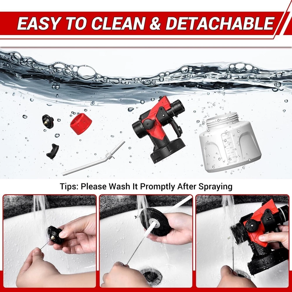 850W Electric Paint Sprayer, 1400ML HVLP Spray Paint Gun Product Details Tank Volume: 1400 Milliliters Color: Red Recommended Uses For Product: This HVLP paint sprayer can be adjusted by adjusting the flow control knob to regulate the atomized particles and flow size. When you using the paint sprayer to spray some small handmade products, you can adjust down the output of the paint to control the fineness and range of the spray, which is more effective and saves paint at the same time. See more Material: Plastic, Metal Tank Volume: 1400 Milliliters Color: Red Recommended Uses For Product: This HVLP paint sprayer can be adjusted by adjusting the flow control knob to regulate the atomized particles and flow size. When you using the paint sprayer to spray some small handmade products, you can adjust down the output of the paint to control the fineness and range of the spray, which is more effective and saves paint at the same time. Material: Plastic, Metal Style: Handheld Power Source: AC Included Components: 1️⃣ 5 Copper Nozzles, 4️⃣ Cleaning Brush*1, 2️⃣ Paint Spray Gun*1, 5️⃣T hrough Needle*1 & Funnel*1, 3️⃣ Instruction Manual*1 Model Name: 1 Product Dimensions: 1 x 1 x 1 inches Item Weight: 3.39 pounds Item model number: 1 5 Nozzles & 3 Spray PatternsThe paint sprayer can be adjusted to 3 different spray patterns: horizontal, vertical and round. The paint sprayer comes with 5 sizes of sturdy brass nozzles (0.5mm/0.8mm/1.0mm/1.5mm/2.5mm) that are durable and won't clog. It is an excellent paint sprayers for home interior and exterior, you can use it on furniture, walls, fences, garage doors and any other painting projects. 5 Nozzles & 3 Spray PatternsThe paint sprayer can be adjusted to 3 different spray patterns: horizontal, vertical and round. The paint sprayer comes with 5 sizes of sturdy brass nozzles (0.5mm/0.8mm/1.0mm/1.5mm/2.5mm) that are durable and won't clog. It is an excellent paint sprayers for home interior and exterior, you can use it on furniture, walls, fences, garage doors and any other painting projects. Free AdjustmentThis HVLP paint sprayer can be adjusted by adjusting the flow control knob to regulate the atomized particles and flow size. When you using the paint sprayer to spray some small handmade products, you can adjust down the output of the paint to control the fineness and range of the spray, which is more effective and saves paint at the same time. Lightweight & Easy to GripThis paint gun weighs only 2.6LB, which is lighter than most paint gun on the market. The handle of the paint spray gun is ergonomically designed for an easy and comfortable grip, relieving you of the burden of spraying paint for a long time. The 5.58 feet long power cord allows you to use the paint gun freely in a wider range without the need to bring a terminal block. Package ContentPaint Spray Gun*1, Instruction Manual*1, Different Nozzles (Size)*5, Cleaning Brush*1, Through Needle*1, Funnel*1. If the product doesn't meet your expectations, please contact us through the order form, we will provide you with 24-hour customer service and after-sales protection. The electric paint sprayer has a powerful 850W motor that can quadruple the efficiency of your work, helping you get the job done faster. The paint sprayer has a large 1400ML capacity, which can spray a 12'x 14' wall in one fill, no need to add paint in the middle, saving time and labor. Payment Delivery details Terms of sales About us Contact us Payment 1. PayPal is the only online payment method we accept. 2. Please make your payment within 7 days after auction ends. 3. Before bidding, please read the above terms and conditions carefully. The bidding winner will be considered to agree with all terms and conditions listed. Delivery details 1.We ship only to the contiguous 24 States. We do not ship to Alaska, Hawaii, Puerto Rico, or APO/FPO. 2.Please make sure the Ship-To address you input during checkout is correct. We are not responsible for any wrong or undeliverable address. 3.All orders are usually processed within 24 hours after payment completed received. Orders are shipped on business days only. Business days are Monday-Friday, excluding federal holidays within the United States. Terms of sales These items are Brand New. Any Return requests must be submitted within 60 days of purchase. Items must be unopened and in their original packaging. Buyer is responsible for return shipping costs. This does not apply to items that arrived damaged. If your order arrived damaged you must contact us within 24 hours of receiving your order. We will request that you send the item back to us, at which time we will reimburse the shipping cost, and send you a replacement item. About us We are a Chinese company sellers. Welcome to buy. We offer our customers high quality products at low prices. We maintain high standards of excellence and strive for 100% customer satisfaction! Contact us Our Office Hours Are : Start from 9:00 a.m. to 6:00 p.m. (GMT+8) of Monday to Saturday. Closed on Sunday and public holidays (China). We apologize for the late reply during the holidays and the time lag. On Dec 3, 2024 at 21:49:36 PST, seller added the following information:
