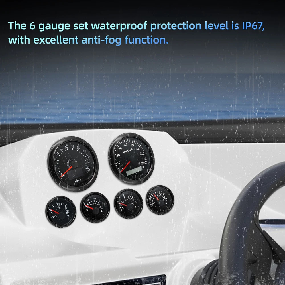 6 Gauge Set 85mm GPS Speedometer 120MPH Tachometer 8000RPM with Senders for Boat