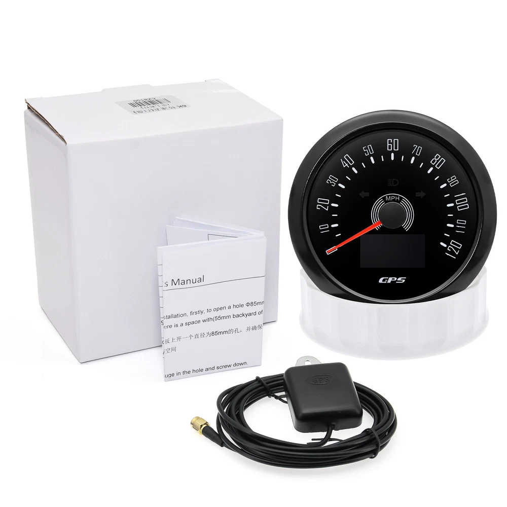 85MM GPS Speedometer 0-120MPH Tacho 0-8000RPM & 52mm Fuel/Oil Pressure/Temp/Volt 6 Gauge Set 8 5MM GPS Speedometer 0-120MPH Tacho 8000RPM& 52mm Fuel/Oil Pressure/Temp/Volt Feature: High-brightness LED backlight. 316 stainless steel for long-term use even in acid-base,humid environment. IP67 waterproof and dust-proof grade. With curved glass( with anti-fog function). Suitable for all kinds of vehicle modification. Using stepper motor drive pointer, accurate display of the engine speed, and with the LCD display clear display mileage. Gauges have many kinds backlight color (red,yellow,orange,green,blue,purple,white),customers can adjust any color that you like. Product Detail GPS Speedometer: GPS Speedometer: 120MPH Total mileage: (can't be adjusted ) TRIP:Short mileage(can be adjusted ) 1. Save when power off 2. Long press the button to reset COG: Course Over Ground Backlight: 7 Colors Backlight OLED LCD screen: working temperature -40℃~+80℃ Tac hometer High Precision Size:85mm Signal :Pulse Working voltage:9-32VDC Working current:<120mA Backlight:7 Color backlight Engine hours:0.0-99999.9H Working temperature:-30-70℃ Storage temperature:-40-85℃ Indicating Range:0-8000RPM Waterproof and dustproof grade IP67. Functions:current tacho/RPM and hour Operation mode: LCD display, stepper motor Tachometer fit for Car/Truck/ Boat /Diesel Generator Engine/Gasoline Engine Fuel Level Gauge Sizes:52 mm (2-1/16") Measuring Range:Empty-Full Resistance:240 (E)-33 (F) ohms Backlight:7 Colors Water Temperature Gauge Install diameter:Φ52mm Indication range:0~120℃/30-250℉ Input signal: 287.4~22.4ohms Storage temperature:-40~+85℃ Backlight:7 Colors Oil Pressure Gauge Install diameter:Φ52mm or 2-1/16" Indication range:0~10bar/0-150 PSI Input signal: 10-184ohms Operating temperature:-30~+75℃ Storage temperature:-40~+85℃ Backlight: 7 Colors Volt Gauge Sizes:52 mm (2-1/16") Measuring Range: 8-16 (V) Backlight: 7 Colors Trim gauge 7 Color Backlight : Red (default)→green → blue → white →yellow→cyan →Purple →(automatic). Fixing dimension: 52mm(2'') Indicating Range: UP-DN Signal: 0-190ohms Working Voltage: 9-32V(12V/24V) Operation mode: LCD display, stepper motor Package Includes: 1X 85MM Digital GPS Speedometer Gauge 1X GPS Antenna 1X 85MM Tachometer 1X 52MM Fuel level gauge 1X 52MM Voltmeter 1X 52MM Water temp gauge 1X 52MM Oil pressure gauge 1X 52MM Trim Gauge 7X Installation Instruction