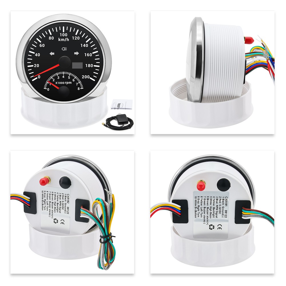 85MM GPS Speedometer 0-200 Km/H with Tachometer Gauge 8000RPM for Car Boat Truck 85MM GPS Speedometer 0-200Km/H with Tachometer Gauge 0-8000RPM for Car Boat Motorcycle Warmly tips: If any problem after buying, such as some when you install or the parcel received or un-received, please do not open a case and do not hesitate to contact us. We would do our best to give you the best solution. Thank you so much Features: - Suitable for all vehicles and off-road vehicles - The signal comes directly from the satellite signal receiver(GPS Antenna), don’t need other speed sensor. - The gauge has the advantages of high precision, quick location confirmation and short start up time. - IP67 waterproof and dustproof grade - Reverse polarity protection and anti-fogging performance - No Stationery Drift - Stepper motors used for full range of stepping gauges, great feature with its less power consumption, longer life, higher precision, etc. Technical Data: * Fixing dimension: 85mm(3-3/8") * Indicating Range: 0-200km/h,and 0-8000rpm * Working Voltage: 12V/24V * Total Mileage Adjustable, Mileage Range: 0-99999.9 km * GPS Blind Area Odometer Compensation * OverSpeed Buzzer Alarm (Value Adjustable) * Indication light: LEFT, HIGH BEAM, RIGHT * Backlight: Red * Working temperatures: - 40 to 85°C * Operation mode: LCD display, stepper motor Connection: 1. Black: Ground(-) 2. Red: 9-32VDC(+) 3. Blue: RPM Signal 4. Yellow: Backlight(+) 5. White: High Beam(+) 6. Brown: Buzzer alarm(+) 7. Green: Buzzer alarm(-) 8. Yellow: Left Turn 9. Gray: Right Turn 10. White: Ex. Button(no need connect)==(If need to connect, please connect negative) Package Included(as picture): 1x GPS speedometer with tachometer 1x GPS Antenna 1x Multi-plug socket 1x Installation Instruction Wholesale and Drop shipping - For wholesale, we will offer the discount or free express shipping which only takes 3-7 days to arrive. - For drop shipping, We could send the goods to your customers directly and won't leave information about us if youd like to.