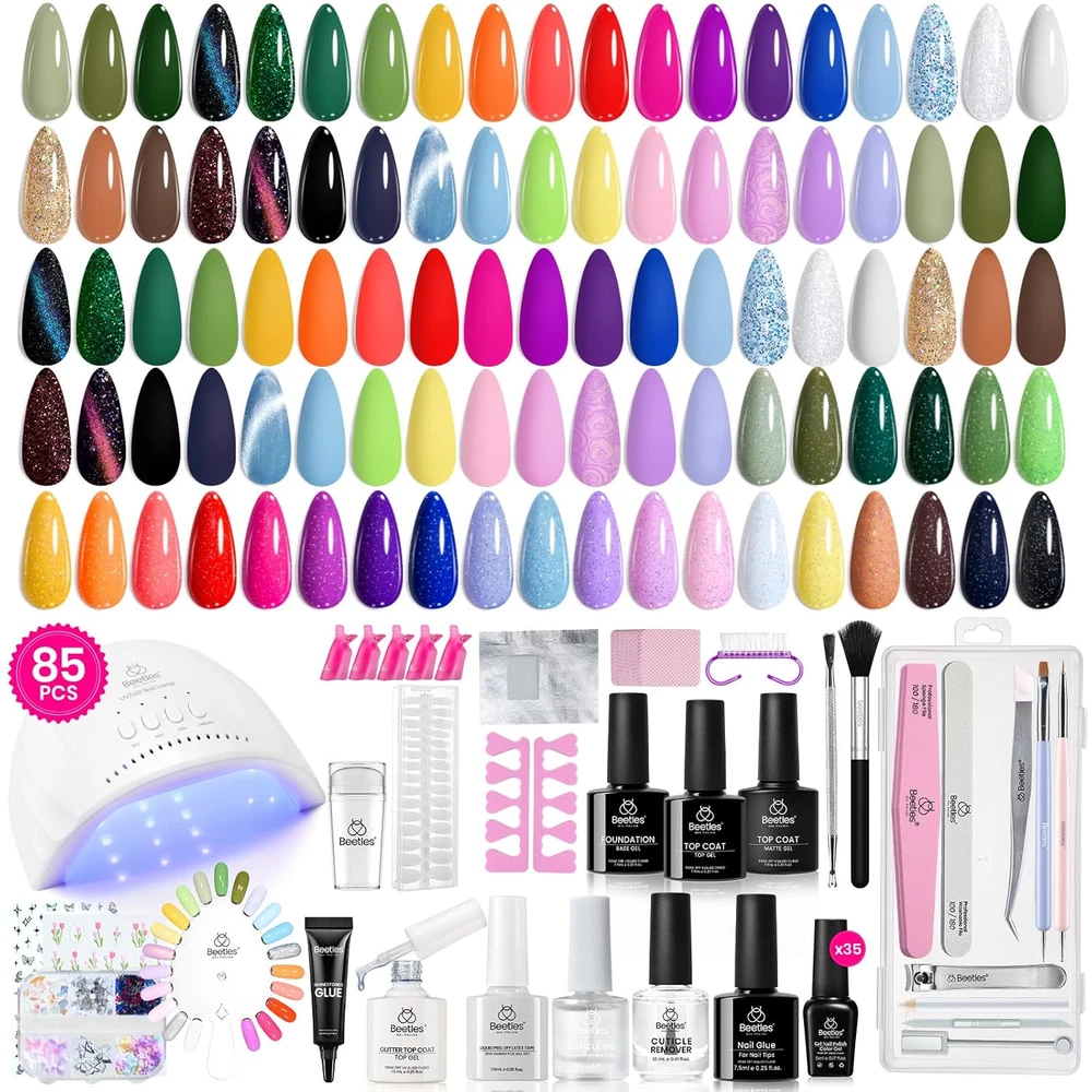 Store New Arrivals Add to Favorite View Feedback Contact Fast deliveries to the customer's home Quality customer service John Make the customers happy! Beetles 85 Pcs Spring Gel Nail Polish Kit with UV Light - 35 Colors All in One Manicure Kit, Travel Diary Collection Beetles Gel X Nail Gel Polish Set with Nail Tools for Beginners Description ALL-IN-1 Gel Nail Kit:This Gel Nail Polish Kit includes 35*5ml all season trendy gel nail polish, 4*7.5ml Base and Glossy&Matte&glitter Top Coat, 7.5ml gel nail glue, 12ml nail softener, 7.5ml cuticle oil, 7.5ml cuticle protectors, 5g Rhinestones nail glue, 24W LED Nail Lamp, 40*nail tools (including Nail art stamper*1, Double-ended nail art pen*2, Cuticle pusher*1, Rhinestones picker, wax pencil*1, Nail decorations*1 and so on). For more accessories, please see the product description. Upgraded UV Nail Lamp:High power nail dryer for curing all kinds of UV LED gel nail polish and base gel top coat. 30 lamp beads, all-round uniform curing, it's easy to use and quick-drying. 3 default curing settings: 30s, 60s, 120s. With infrared sensor function, it will light up automatically when your hand, reaches in, effectively saving energy and the lamp has a longer service life. Easy to use:Gel nail polish kit with new and upgraded 2-in-1 accessories to effectively improve your manicure prefinish, it is tailor-made for beginners. At the same time, it is also easy to remove nail polish, just put a little acetone on the foil cotton pad and wrap your nails/fingers. Wait for a few minutes, the gel nail polish will fall off immediately. It is best to use our steel pusher to remove it (The kit does not include acetone, you need to buy it separately). Long-Lasting Wear:The Beetle Gel Polish kit has everything you need for a DIY manicure at home. Enjoy a safer, healthier and more affordable manicure experience. Beetles 35 colors gel polish starter kit is made of non-toxic ingredients which makes the gel nail polish safe and low odor. With proper application and use of our base and top coat, our gel nail polish can last up to 28 days without chipping or fading. Ideal Gift for Her:This at-home nail kit comes with plastic storage container for easy organization and makes for a wonderful surprise for any nail enthusiast. If you are looking for birthday, anniversary, Valentine's Day, Mother's Day gifts for your family or friends, the gel nail kit will be a good choice. Warm Notice : Nail gel polish has different color differences in different light sources, displays and coatings. When you encounter any problems, please feel free to contact us. Product Description From the brand Add to Cart Add to Cart Add to Cart Add to Cart Add to Cart Customer Reviews 4.3 out of 5 stars 615 4.4 out of 5 stars 310 4.1 out of 5 stars 276 4.4 out of 5 stars 357 4.5 out of 5 stars 34,712 3.8 out of 5 stars 140 Price $13.99 $ 13 . 99 $7.99 $ 7 . 99 $6.99 $ 6 . 99 $29.99 $ 29 . 99 $21.99 $ 21 . 99 — Color Transparent 15ml Pink Pearl Nail Polish colored liquid latex for nails 36 Colors Gel Nail Polish Kit 20 mini gel colors animal-style lash clusters Feature 15 Sizes Gel Nail Tips Shine Finish and Long Lasting Air Dry Shine Finish and Long Lasting Healthy and Low Odor 3 Pairs Feature Pre shaped Long Coffin Hot Sale New Arivial Healthy and Low Odor Shine Finish and Long Lasting 8-14mm Feature Healthy and Low Odor Healthy and Low Odor Healthy and Low Odor Perfect for All Perfect for All Hot Sale Beetles Gel Polish Beetles Gel Polish Beetles Gel Polish Beetles Gel Polish Beetles Gel Polish Beetles Gel Polish Beetles Gel Polish Product Description Color 0-0-Travel Diary Item Form Gel Included Components function(f) {var _np=(window.P._namespace("DetailPageProductOverviewTemplatesJava"));if(_np.guardFatal){_np.guardFatal(f)(_np);}else{f(_np);}}(function(P) { P.when('A').execute(function(A){ A.on('a:truncate:po-attribute-truncate-2:updated', function(data) { var isTruncated = !data.truncateInstance.getIfTextFits(); var seeMoreElement = document.getElementById('po-attribute-see-more-id-2'); if(seeMoreElement) { seeMoreElement.style.display = isTruncated ? '' : 'none'; } }) }); })); 35 colors Gel Nail Polish, Base Coat, Glossy Top Coat, Matte Top Coat, Gel Nail Glue, Nail Softener, Cuticle Oil, Cuticle Protectors, Rhinestones Nail Glue, UV Nail Lamp, Nail Art Stamper, Double-ended Nail Art Pen, Cuticle Pusher, Rhinestones Picker, Wax Pencil, Nail Decorations, Nail Buffer, Nail File, Nail Clippers, Nail Separators, Nail Forms, Nail Swatches, Remover Foil Wraps, Lint Free Nail Wipes, Glass Cuticle Stick, Tweezers, Nail Clips, Nail Brush, Nail Decorations, Handle Grip, Plastic Storage Container, Nail Buffer. See more Finish Type Glossy Package Dimensions 9.57 x 8.07 x 7.56 inches; 4.92 Pounds ABOUT US We offer the best prices around on high quality products. Our E-store includes media such as books, movies, music and games while offering electronics, toys, sporting apparel, clothing, tools, general home, garden items and more. SHIPPING We are always working hard to ensure your package arrives as soon as possible. Please understand that some factors like weather, high postal traffic, and the performance of shipping companies are outside of our control. We offer free shipping to the lower 48 states and ship within 2 business days of payment, usually sooner. We do not accept P.O. Boxes. Please provide a physical address. For shipping outside of the continental USA, we only use eBay's Global Shipping Program. The item is shipped to KY and then sent to the rest of the world. International customers are responsible for all duties and taxes. Continue to 'check out' to calculate costs for shipping the item to your country. Messages regarding eBay's Global Shipping Program MUST be directed at eBay EXCLUSIVELY. RETURNS We offer a 30-Day Return Policy on items in which you are not completely satisfied with. You have the option of a full-refund or an exchange of the item. No returns are available on items shipped o