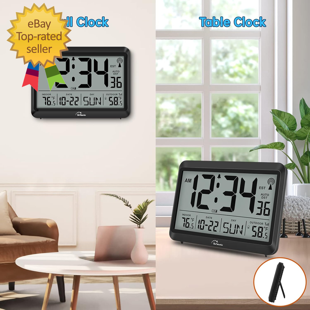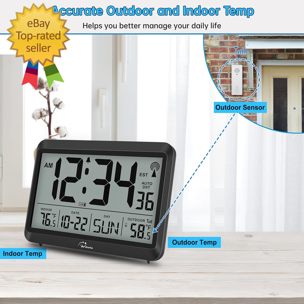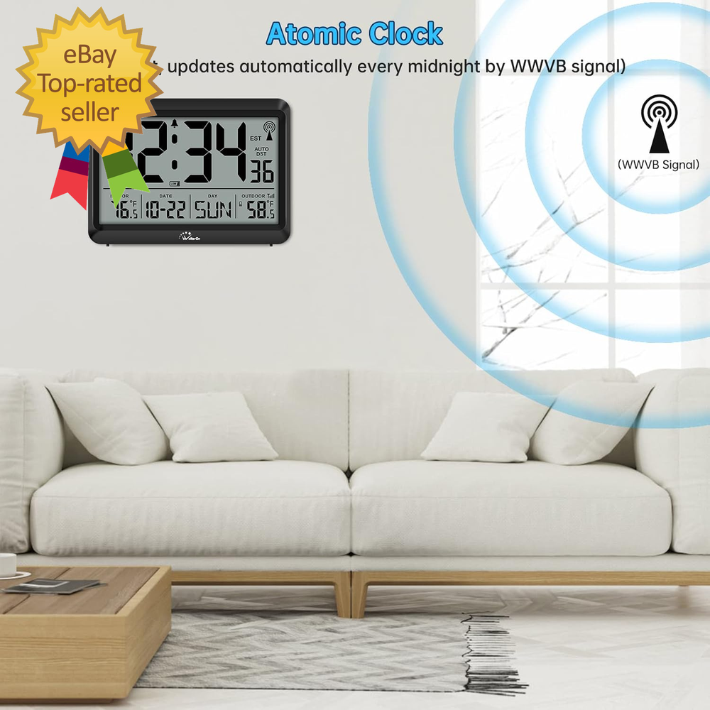8.5-inch Atomic Digital Clock with Indoor Outdoor Temperature and Battery Operation