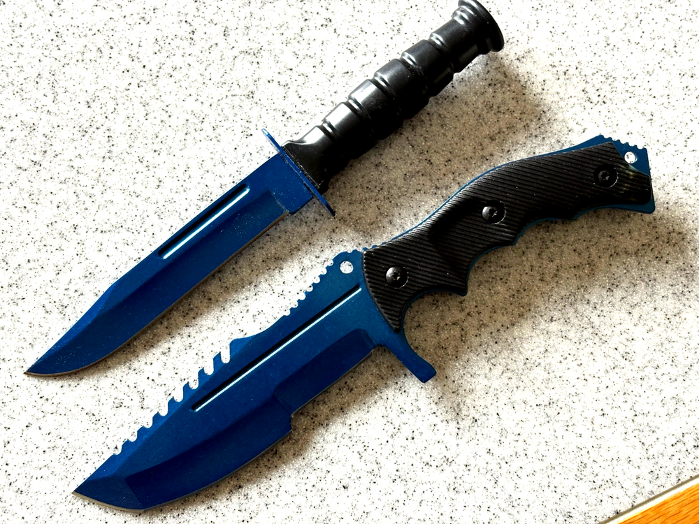 Lot of 2 open box. Never used .. smaller knife has a tiny scratch mark on the blade. Very light weight and easy to carry. Measurement includes the handle. Each knife features a stainless steel blade with blue finish and durable TPU secure-grip handles. In the set, you get an 8 1/2” huntsman and a 7 1/2” military-style clip point knife. Fast shipping.