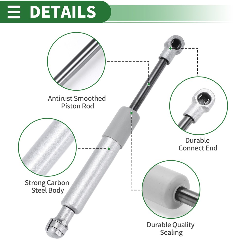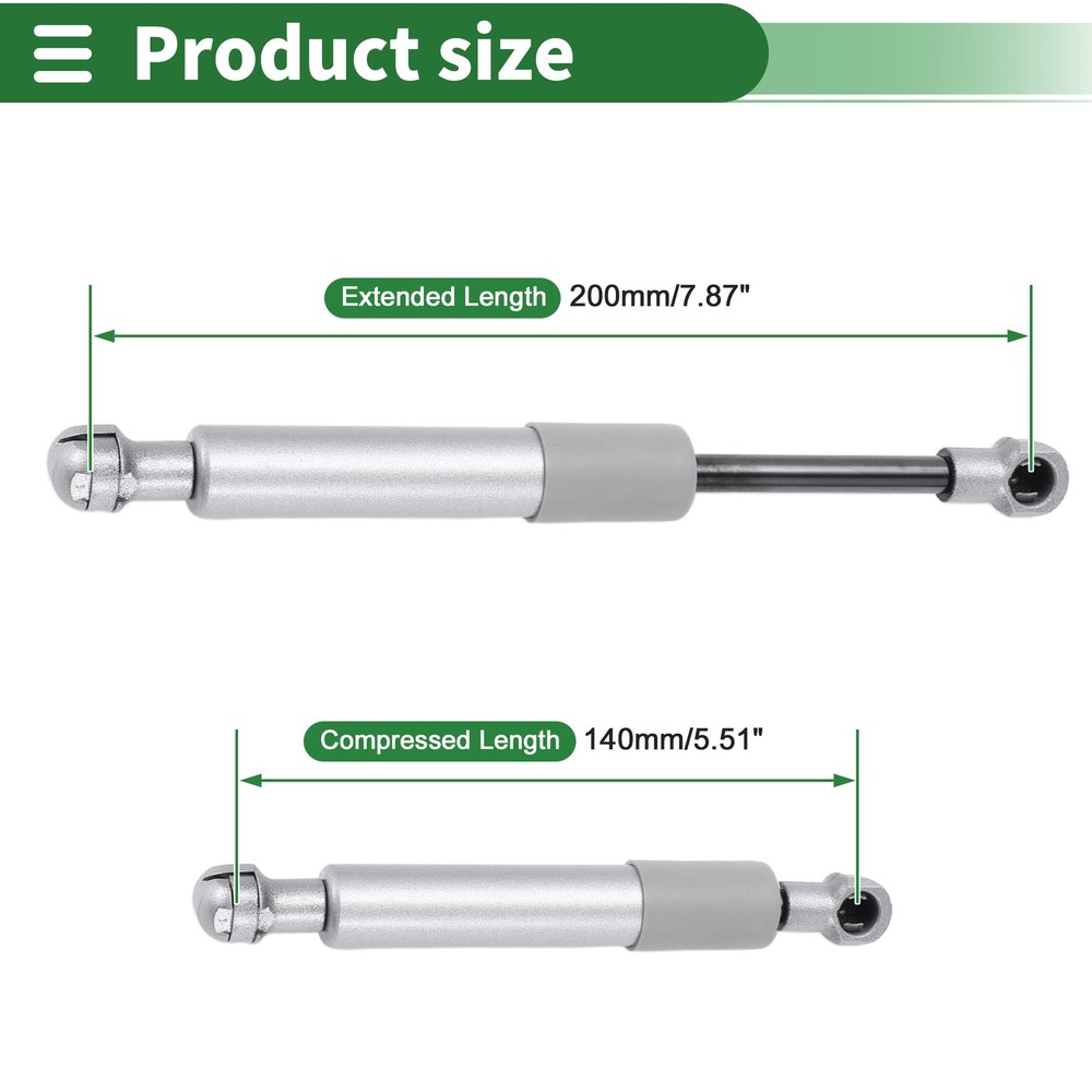 Document Feature:Easy to install the gas springs with simple hand tools in just few minutes.With easy fittings to any surface, just attach and lift, your gas spring lifts and hold the weight objects.The gas springs are powerful, can support small,medium to heavy object. Easy to lift and support, smooth use, bringing convenience to your work.This gas struts are universal, which fits for RV window, cabinet door cover, storage box cover, boat hatch cover, car hood and trunk, pickup truck tonneau cover, tailer cover, bus luggage door, motorcycle seat cover and so on.Specifiction:Extended Length: 200mm/7.87"Compressed Length: 140mm/5.51"Force: 85lb/380N/38kgColor: Silver ToneMaterial: Carbon SteelNote:If the temperature is lower than minus 20 degrees, the oil density of the gas spring turns high (frozen) and it is difficult to press down.Please allow 0.5mm differences due to manual measurement.Package Included:1 Pcs Gas Struts Shop Category New Arrival Hot Item 200mm/7.87" Gas Struts 85lb/380N/38kg Gas Springs Silver Tone Carbon Steel 1 Pcs Feature: Easy to install the gas springs with simple hand tools in just few minutes. With easy fittings to any surface, just attach and lift, your gas spring lifts and hold the weight objects. The gas springs are powerful, can support small,medium to heavy object. Easy to lift and support, smooth use, bringing convenience to your work. This gas struts are universal, which fits for RV window, cabinet door cover, storage box cover, boat hatch cover, car hood and trunk, pickup truck tonneau cover, tailer cover, bus luggage door, motorcycle seat cover and so on. Specifiction: Extended Length: 200mm/7.87" Compressed Length: 140mm/5.51" Force: 85lb/380N/38kg Color: Silver Tone Material: Carbon Steel Note: If the temperature is lower than minus 20 degrees, the oil density of the gas spring turns high (frozen) and it is difficult to press down. Please allow 0.5mm differences due to manual measurement. Package Included: 1 Pcs Gas Struts Item Specifics Brand X AUTOHAUX Features Waterproof/Durable Material Carbon Steel Placement on Vehicle front Type Gas Struts Product Name Gas Struts Net Weight 109g Shell Color Silver Tone Dimension 200mm/7.87" Package Content 1 Pcs Gas Springs Note This is not oem product,accessory only. Universal Fitment Yes You Should Know If you have any questions, please feel free to contact our customer service. Our response will be faster than eBay! Our Handling Time: within 24 hours on weekdays eBay Handling Time: 72 hours About Us Shipping Feedback Payment Contact Us Angstrom Autohaus is based in Hong Kong, our group comprises factories in Asia that manufacture OEM and aftermarket automotive parts and accessories. We believe in FACTORY DIRECT purchases. Our mission is to deliver Lower Prices and Better Quality to consumers and distributors wherever, whenever. We operate from a distribution center in Hong Kong, where we perform sourcing, quality control and fulfillment. We strive to ensure that our products are reliable, updated and that our transactions are smooth and speedy. We are positioned to bring you the latest consumer automotive aftermarket parts and accessories globally and round the clock. We are proud to have served over 500,000 ebay buyers worldwide. International Buyers - Please Note: Import duties, taxes and charges are not included in the item price or shipping charges. Buyers are responsible for these charges. Please check with your country's customs office to determine what these additional costs will be prior to bidding/buying. Note that delivery times may vary, particularly during peak periods or inclimate weather conditions. All items will be dispatched from our warehouse in China or Hong Kong directly. Due to Custom restrictions, we do not ship lighters to US We cannot ship on weekends and we do not offer Saturday, Sunday or holiday delivery. All our items will be shipped to buyer's PayPal address, please confirm your address on PayPal before you bid. We left positive feedback for you after receiving payment. Your feedback is very important for us, positive feedback and 5 Score DSR is highly appreciated. Please let us know before leaving any negative feedback or 1 point, 2 point low DSR or open any disputes on Paypal and Ebay, please give us the opportunity to resolve any problems and we will try our best to satisfy your needs. If any question, please feel free to contact us via 'Ask seller a question' ,We try our best to reply to your emails as soon as possible, due to high volume of daily incoming emails and time zone difference, we may not be able to reply your emails immediately.Please allow 1-2 business days for us to response. Payment Methods: We accept eBay payment. We appreciate prompt payment and look forward to your business in the future. Unpaid item will be filed without receiving payment in 7 days from listing ended. Contact Us Please email us to resolve any problem before you leave any feedback to us. We will reply you via email ASAP, if no response for you within 48 hours, please check the spam / junk folder in your mail box. Descripción Política 200mm/7.87" Gas Struts 85lb/380N/38kg Gas Springs Silver Tone Carbon Steel 1 Pcs Feature: Easy to install the gas springs with simple hand tools in just few minutes. With easy fittings to any surface, just attach and lift, your gas spring lifts and hold the weight objects. The gas springs are powerful, can support small,medium to heavy object. Easy to lift and support, smooth use, bringing convenience to your work. This gas struts are universal, which fits for RV window, cabinet door cover, storage box cover, boat hatch cover, car hood and trunk, pickup truck tonneau cover, tailer cover, bus luggage door, motorcycle seat cover and so on. Specifiction: Extended Length: 200mm/7.87" Compressed Length: 140mm/5.51" Force: 85lb/380N/38kg Color: Silver Tone Material: Carbon Steel Note: If the temperature is lower than minus 20 degrees, the oil density of the gas sprin