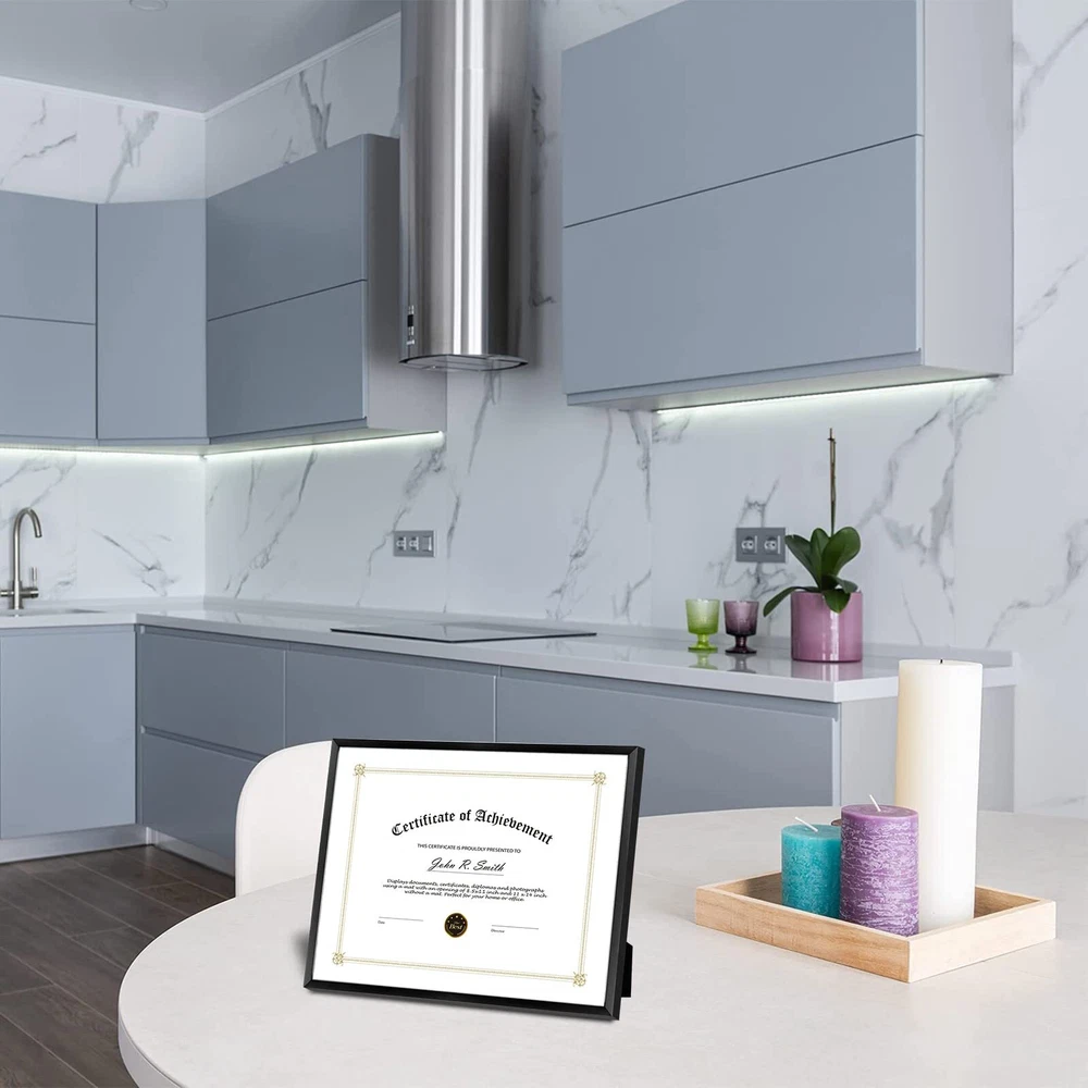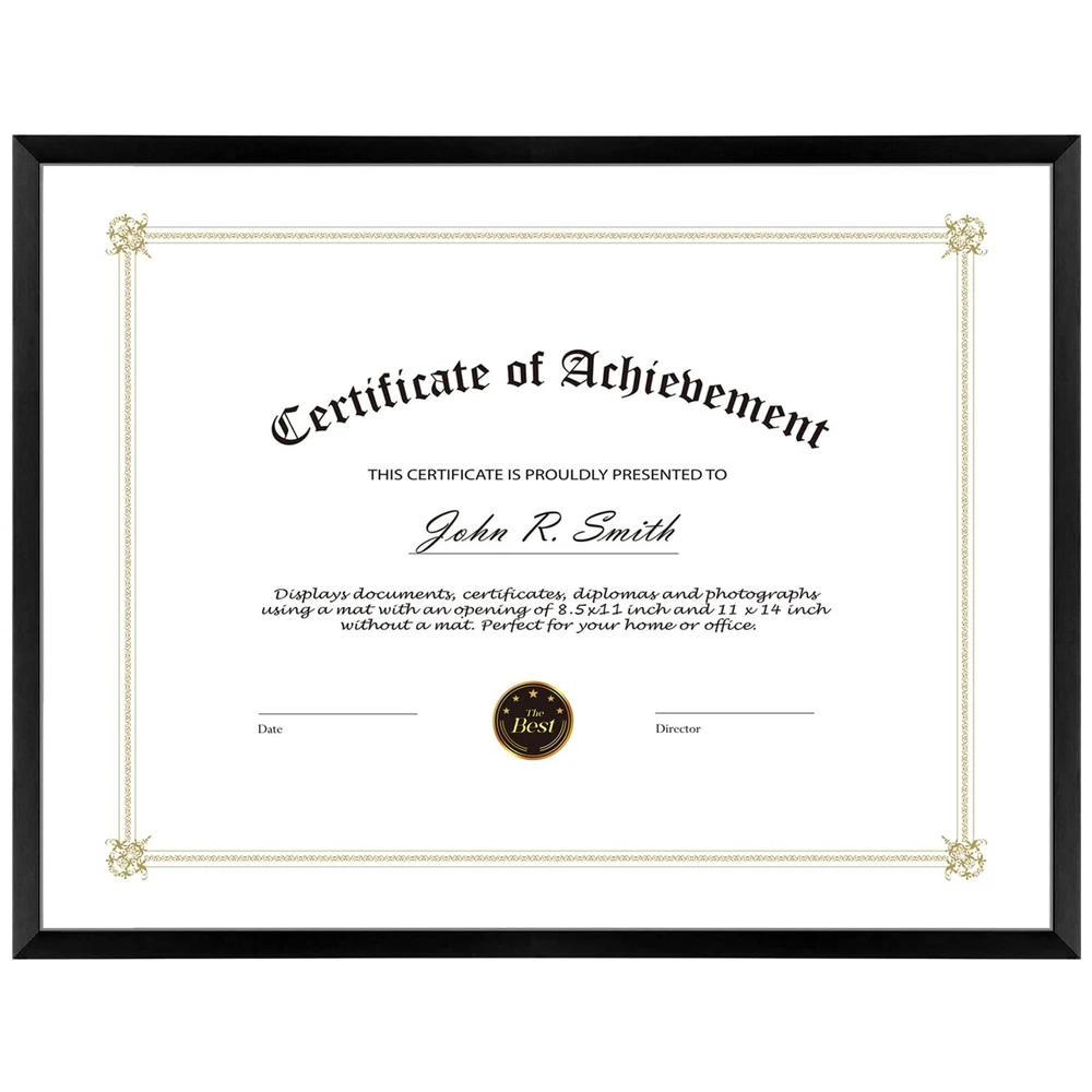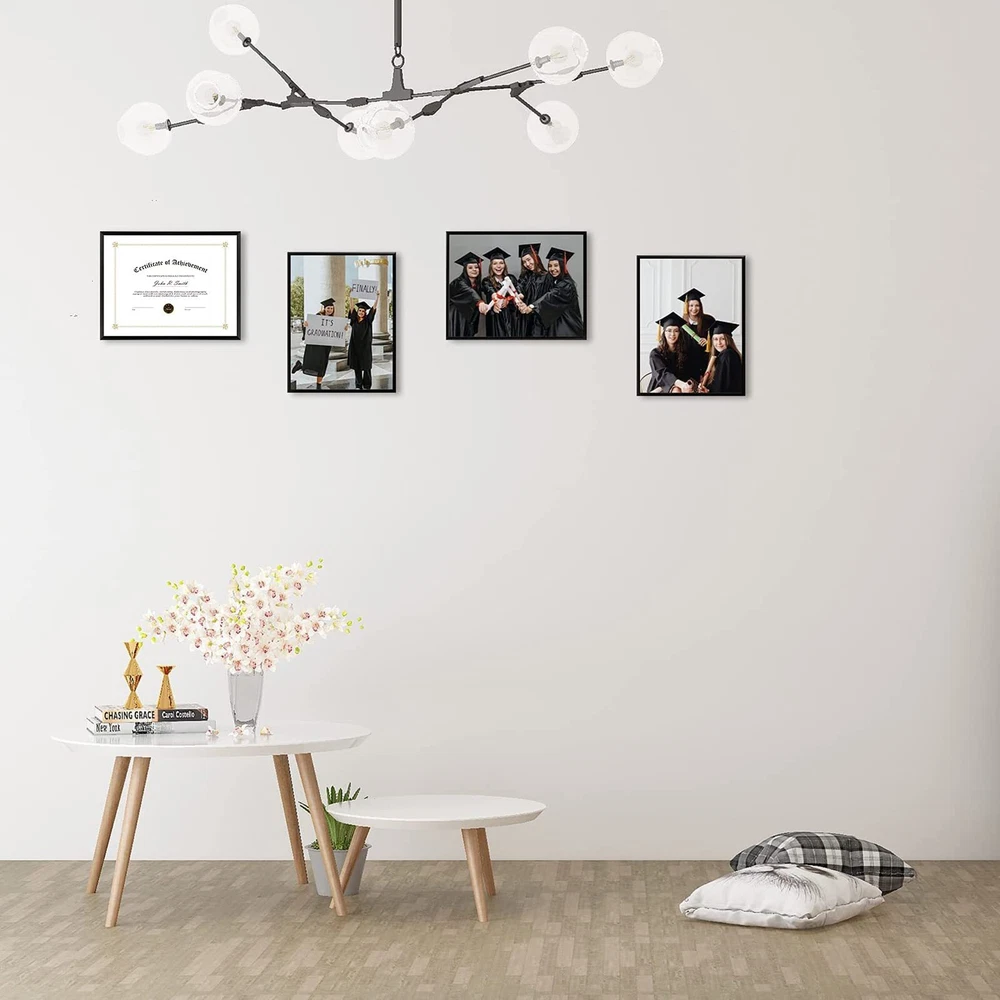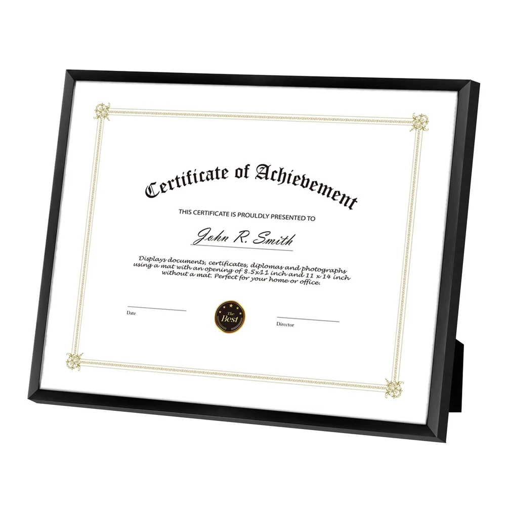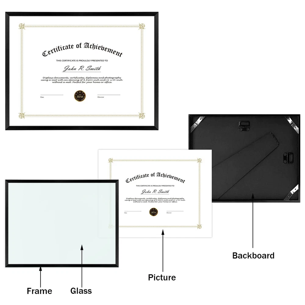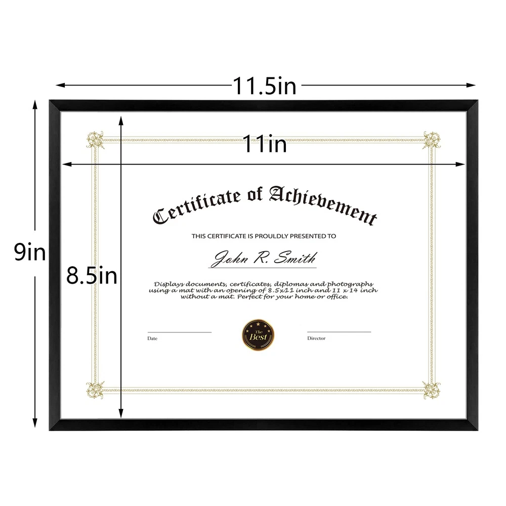 Metal Picture Frame For 11x8.5 Inches, Fits Many Kinds of Certificate, Document, Cpa, Master Degree, Great Idea For Recording Your Wonderful Moments Vertical or Horizontal Display, with Easel Standing For Table-Top, Two Hangers In The Back For Wall Mount. This Frame is Equipped with Sturdy Rotatable Metal Tabs Allowing For Easy Addition of Your Photos Durable Hd Real Glass Front Protect Your Documents From Dust, Moisture and Scratches, Make Your Certificates Great For Years. Kindly Notice: The Real Glass Was Glued In Advance Cannot Be Moved Education is Priceless! Your College Diploma is One of The Most Expensive and Valuable Credentials You Ever Earn. To Protect It From Damage, You Need a Durable Frame. This Metal Frames is Designed For Both Beauty and Function A Wonderful Gift For Your Friends & Family. Suitable For Different Occasions Like Graduation, Anniversary, Birthday and Various Festivals. You can Also Turn Any Bare Wall Into a Gallery of Your Own with This Lightweight 8.5x11'' Aluminum Frame Decorate Your Home/Office. Diploma Frames Are Made For You To Print, Protect and Bring To Life Your Most Precious Moments. From Pictures and Art Painting, To Certificates and Documents, Turn Your Memories Into Masterpieces with Our Druable Aluminum Frames