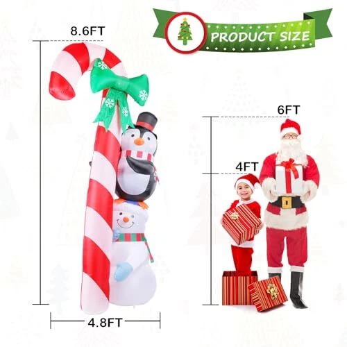 30 Days Return Policy Fast Delivery Trusted seller 8.6 FT Christmas Inflatable Decorations Candy Canes, Large Candy Canes,Snowman and Penguins Built-in Bright LED Light Blow Up for Yard, Garden,Lawn Outdoor Holiday Yard Decorations Product Description 【Lovely Inflatable Candy Cane 】 - 8.6 feet tall inflatable Christmas Candy Cane with snowman and penguins has built-in bright LED lamp beads; It's perfect for Christmas indoor/ outdoor home yard garden art decorations 【High Quality Material】 - Made of high-quality 210T Polyester which is durable and fade resistant. This inflatable decor is providing with a powerful-duty blower to continuous airflow inflate the decoration 【Sandbags & Ground Stakes Support】 - T have sandbags are secured at the bottom. T are ground stakes and ropes in each inflatable decoation, and t are small hooks on both sides of the inflatable decoation to secure the nails, so you can put them in anyw 【Safe & Easy to use】 - You just need to connect the plug, this inflatable decoation could blow up in seconds. And you won't need to unplug it during use. Our plugs are UL-certified safety plugs 【Christmas Decoration】 - This inflatable decoration is perfect for home decoration such as garden ,yard or party etc.Please contact us with any questions! We offer free refund and replacement Shipping Returns Payment Shipping Shipping is FREE to all addresses other than APO/PO boxes in the lower 48 states. All our stock ships from US-based warehouses. Shipped via USPS or UPS (depending on location and package weight) Unless stated otherwise, all orders will ship within 24-72 hours of your payment being processed. Check our feedback to see the great reviews of FAST shipping we offer. Returns As our valued customer, we will do our best to make sure the product you receive arrives to you on time and as expected. If you are not satisfied with your purchase, please contact us within 30 days of receiving your order to process a return. Payment We currently accept payment via eBay managed payments only. Once payment is cleared, we will dispatch your shipment within 1-3 business days. Please refer to the "Shipping" tab for more information regarding shipping speed to your destination.