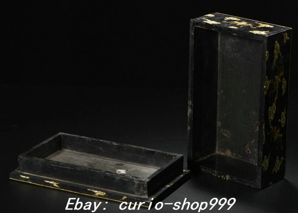 **** Welcome to our antique & Collectable Shop : curio-shop999 **** Description: Here is an 8.6" Qianlong Dynasty Wood Lacquerware Gold Dragon Loong Beast Wenfang Box Case . It is in good condition, and was created by skilled craftsmen in traditional style with fine handcrafts.This is a great piece of valuable collection, a valuable personal alter or a very good present. the handwork is very fine with incredible detailling. Don't miss out this chance to get it.Wish you good luck! . Material : Wood Lacquerware Gold Plating : Chinese Style : Same as photos showing Size : High 2.7 Long 8.6 Breadth 5.1 (inch) Condition Perfect Condition. Perfect, with no scratches, flaws or repairs. Weight: 1.0 KG----included the weight of packing materials Shipping cost to all over the world countries in Free Honored Customers: We are selling the collectibles products and crafts in Beijing ,China since 1993 and collected them all over the world all the time . In our shop the bronze sculpture, animal, vase, urn, flowerpot,Incense Burner.Table chair sets. Militaria goods. buddha statues, Bodhisattva Statues, Buddhist Ritual Items etc is our speciality .Many of the items we sell come from our own personal collection and have been in our family for a very long time .My great-grandfather was the first in this family to start collecting art & antiques when he still lived in San Xi and Tibet around 1922 ,some of the paintings he once collected can now be seen in museums around the globe.We won't make money from the shipping cost, if you dislike the item when you receive it,we can refund all of your money to you within thirty days. Please confidence for bidding . We recommend the combine shipping and offer you an big price discount if you order more items together ! 2025.5.14 四 号