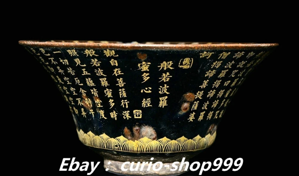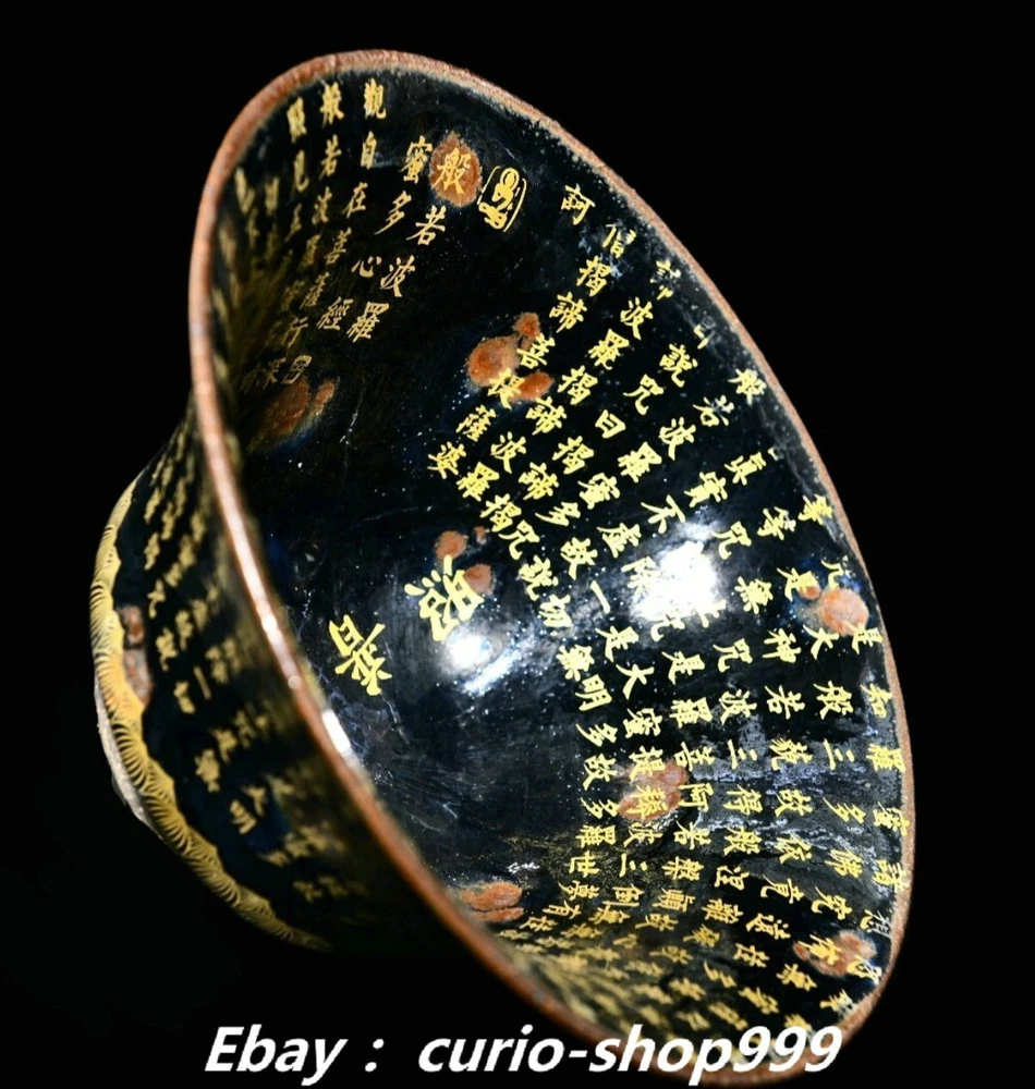 **** Welcome to our antique & Collectable Shop : Porcelain**** Description: Here is 8.6" Song Dynasty Jian Kiln Porcelain Gilt Buddhist Scriptures Buddha Head Bowl . It is in good condition, and was created by skilled craftsmen in traditional style with fine handcrafts.This is a great piece of valuable collection, a valuable personal alter or a very good present. the handwork is very fine with incredible detailling. Don't miss out this chance to get it.Wish you good luck! . Material : Jian Kiln Porcelain Gilt Style : Same as photos showing Size : Heigh t 3.9 Long 8.6 B readth 8.6 (inch) Condition Perfect Condition. Perfect, with no scratches, flaws or repairs. Weight: 2.1 KG----included the weight of packing materials Shipping cost to all over the world countries in Free Honored Customers: We are selling the collectibles products and crafts in Beijing ,China since 1993 and collected them all over the world all the time . In our shop the bronze sculpture, animal, vase, urn, flowerpot,Incense Burner.Table chair sets. Militaria goods. buddha statues, Bodhisattva Statues, Buddhist Ritual Items etc is our speciality .Many of the items we sell come from our own personal collection and have been in our family for a very long time .My great-grandfather was the first in this family to start collecting art & antiques when he still lived in San Xi and Tibet around 1922 ,some of the paintings he once collected can now be seen in museums around the globe.We won't make money from t he shipping cost, if you dislike the item when you receive it,we can refund all of your money to you within thirty days. Please confidence for bidding . We recommend the combine shipping and offer you an big price discount if you order more items together ! 2024.09.02 四 号