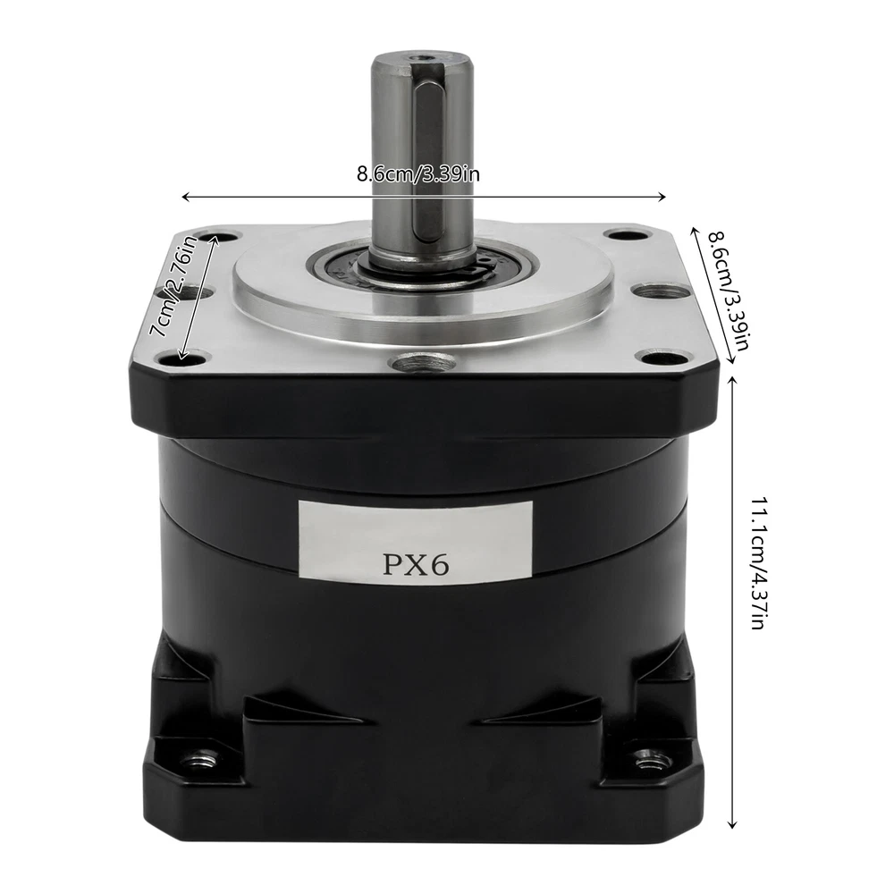 Specifications Material: Cast Aluminum, 45#Steel Process: Hobbing Color: Black Style: Modern Assembly Required: No Installation Form: Vertical Gear Type: Cylindrical Gear Reducer Input Speed: 100-3000rpm Output Speed: 16-500rpm Max. Holding Torque: 40N·m Reduction Ratio: 6:1 Operating Noise: ≤ 70dB Input Hole Spacing: 69.6mm/2.74in Output Hole Spacing: 70mm/2.76in Product Size: 8.6*8.6*11.1cm/ 3.39*3.39*4.37in Package Size: 11*11.5*13cm/4.33*4.53*5.12in Gross Weight: 1.8kg/3.97 lbs Net Weight: 1.76kg/3.88 lbs Package Included 1* 86 Stepper Motor Reducer Gearbox Other Accessories Required for Installation 86 Stepper Motor Planetary Gearbox Speed Reducer Gear Head for CNC Stepper Motor Specifications Material: Cast Aluminum, 45#Steel Process: Hobbing Color: Black Style: Modern Assembly Required: No Installation Form: Vertical Gear Type: Cylindrical Gear Reducer Input Speed: 100-3000rpm Output Speed: 16-500rpm Max. Holding Torque: 40N·m Reduction Ratio: 6:1 Operating Noise: ≤ 70dB Input Hole Spacing: 69.6mm/2.74in Output Hole Spacing: 70mm/2.76in Product Size: 8.6*8.6*11.1cm/ 3.39*3.39*4.37in Package Size: 11*11.5*13cm/4.33*4.53*5.12in Gross Weight: 1.8kg/3.97 lbs Net Weight: 1.76kg/3.88 lbs Package Included 1* 86 Stepper Motor Reducer Gearbox Other Accessories Required for Installation Description A high-quality 86 stepper motor reducer gearbox is a model of precision craftsmanship and efficient transmission. It is made of high-strength materials, which have a long service life and can work continuously and stably under high load conditions. Advanced design concepts and precise gear structures enable it to output high torque and improve transmission efficiency. Its compact design not only saves installation space but also greatly reduces the burden on the overall equipment, making it an ideal choice for space-limited applications. Key Features High-quality Material: It is made of high-quality cast aluminum and 45 # steel and processed by hobbing, which is wear-resistant, impact-resistant, and rust-resistant, protecting the internal parts well and ensuring longer service life. High Efficiency: It adopts an efficient gear meshing design, low friction bearings and compact internal machinery to improve transmission efficiency, reduce energy loss during operation, and lower operating costs. Excellent Performance: Its input shaft and sun gear adopt an integrated structure, which provides higher accuracy and concentricity and withstands greater torque, thus providing greater accuracy and stability. It has a reduction ratio of 6:1, so you can change your motor speed more easily. Low Noise: The optimized gear design and lubrication mechanism can reduce the noise level during operation( ≤ 70dB ), creating a quieter working environment for you. Space-saving: Its compact design and lightweight(3.88 lbs) allow it to be installed on machines that have limited space for a gearbox, making it particularly suitable for integration into small automation equipment. Easy Maintenance: It supports disassembly-free external maintenance, which reduces downtime and maintenance costs and increases productivity. The bearings at both ends also act as dust protection, relieving you of the burden of maintenance. High Compatibility: The bottom standard interface makes it easy to connect with stepper motors, simplifying the installation process and shortening the equipment commissioning time. Customer Service: Communication is the best way to solve problems. If you have any problems, please feel free to contact us. We will reply and solve the problem for you as soon as possible. Details Smooth Edges: The smooth and burr-free edges enhance the beauty of the product and ensure your safety when installing and cleaning it. Positioning Pin: The horizontal structure and positioning pin make your installation more convenient and efficient. Rectangular Base: It increases the contact area with the plane to ensure its stability when working. Application It is mainly used to reduce the speed of 86 stepper motors and increase holding torque. It is widely applied in CNC machines, such as engraving machines, mills, lathes, work benches, benches, bandsaw machines, grinding machines, etc. Notes Please note that the output shaft is not recommended to be disassembled by non-professionals. Please note that the gear reducer output shaft-mounted fittings shall not be knocked downward with force to avoid excessive up-and-down tampering. When installing the circular gearbox, the length of the mounting screws should be controlled, and the screws screwed in too long will damage the internal structural parts of the box. Please note that the reducer must not be rotated directly on the output, which may cause internal gear breakage. Please allow the slight color difference caused by the shooting light and 1-3cm error due to manual measurement, and make sure you do not mind before you order. Payment Delivery details Terms of sales About us Contact us Payment We accept ebay payment 。 Fees such as import duties, taxes are not included in the item price or shipping costs. These charges are the buyer's responsibility. Delivery details Shipping: 2-9 working days to: USA Terms of sales We maintain high standards of excellence and strive for hundred percent customer satisfaction. Feedback is very important to us. We hope that you contact us immediately before you give neutral or negative feedback, so that we can address your concerns. It is impossible to address issues if we do not know about them! About us Your satis faction is our ultimate goal. We work hard to earn your trust and future business. Our certified technicians have tested each item before shipping. The unit comes with 1 year limited warranty on all manufacturing defects. a) If you receive a defective item, you may return it or ask for a discount. Please contact us within 14 days after you receive the package. b) What you returned must be intact and in its original packaging as re? u