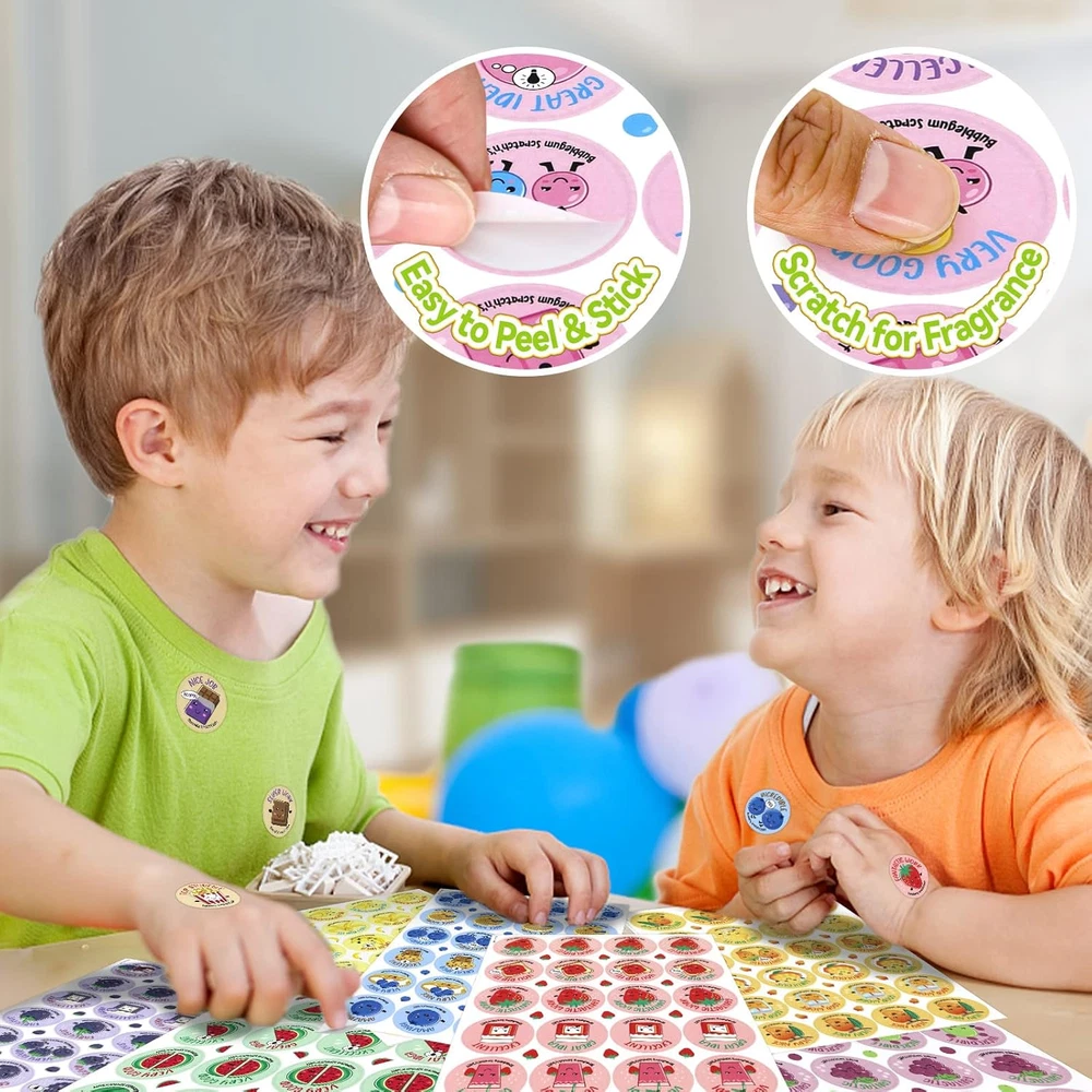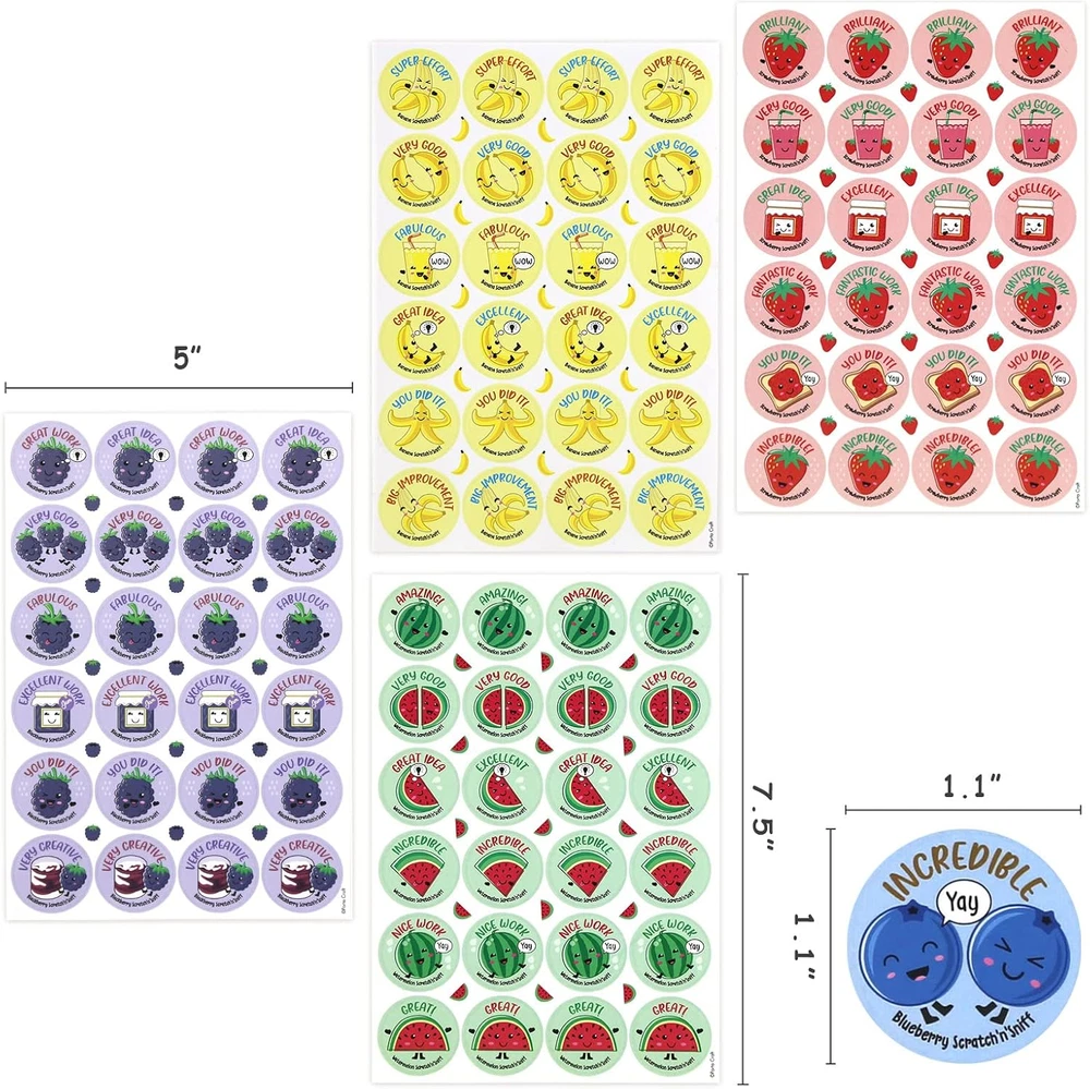 864 Scratch & Sniff Stickers, 12 Scents, Reward & Party Favor, Kids & Teachers