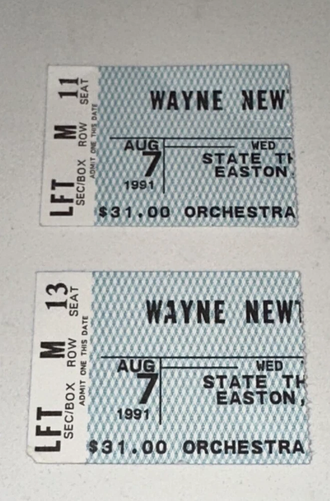 8/7/91 Wayne Newton Music Concert Admit One Easton PA State Theater Ticket Stub