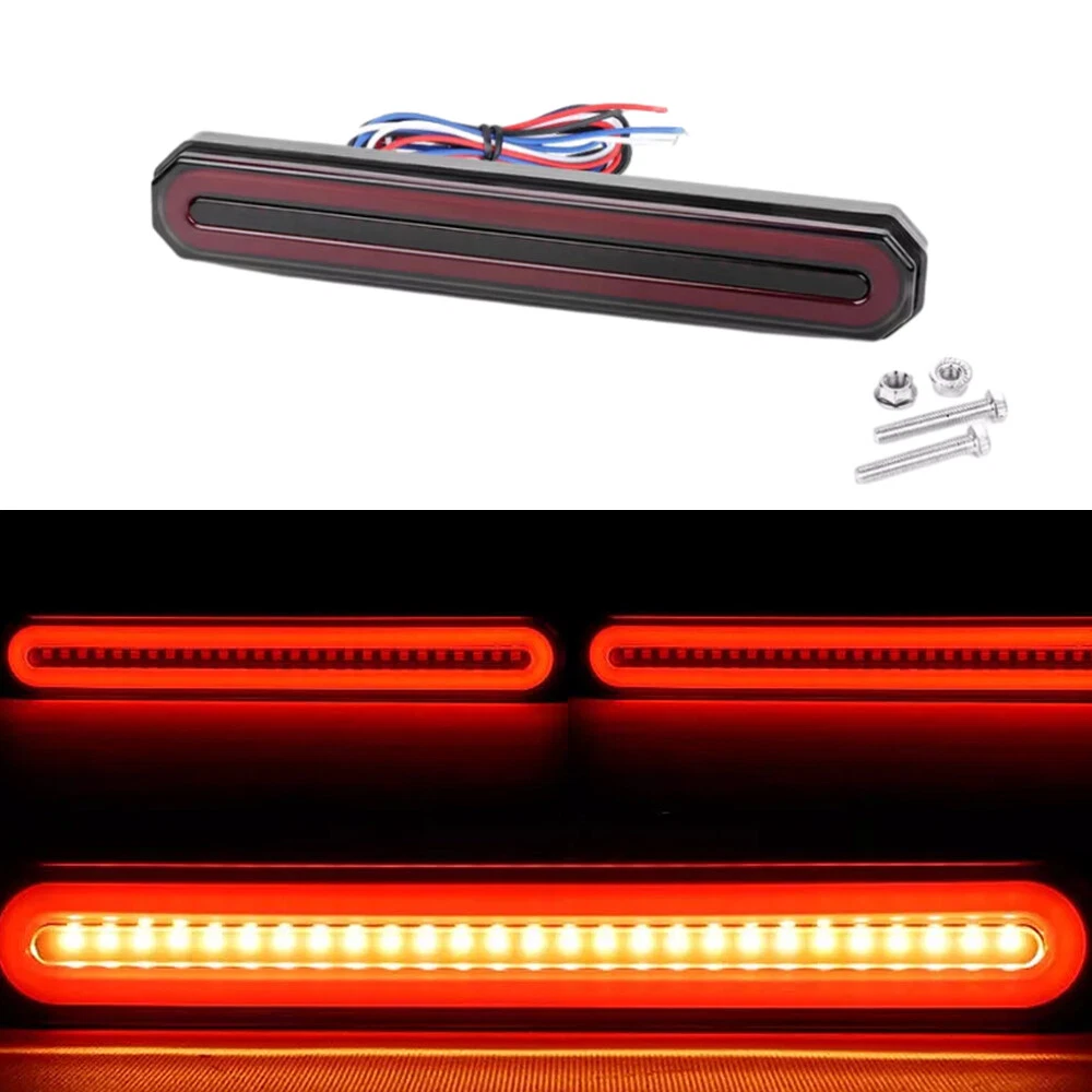 Features: 【Enhanced Visibility】Provides bright red and amber lighting, ensuring increased safety for fit for heavy trucks and trailers. 【Multi-Functionality】Combines brake, tail, and sequential turn signal lights in a unit, delivering comprehensive lighting solutions for fit for various vehicles. 【Robust Design】Crafted from ABS and LED materials, offering reliable performance and longevity for fit for demanding road conditions. 【Professional Installation Recommended】For better results, it is recommended that you have it professionally installed. 【Wide Application】Suitable for trucks, trailers, RVs, and more, thanks to its universal compatibility with 12-24V DC systems. Specification: Name: Brake Tail Turn Lights Material: ABS+LED LED Quantity: 87 pcs Voltage: 12-24V DC Light Color: Red+Amber Size: 220mm/8.66inch Fitment: Universal compatible with most vehicles with 12-24V DC, such as fit for trucks, trailers, and RVs Package Included: 1 x Brake Tail Turn Lights