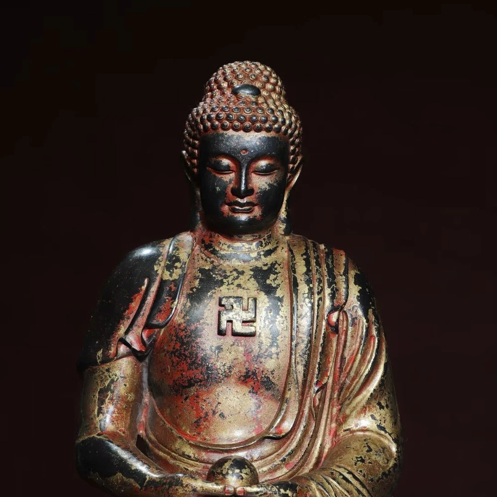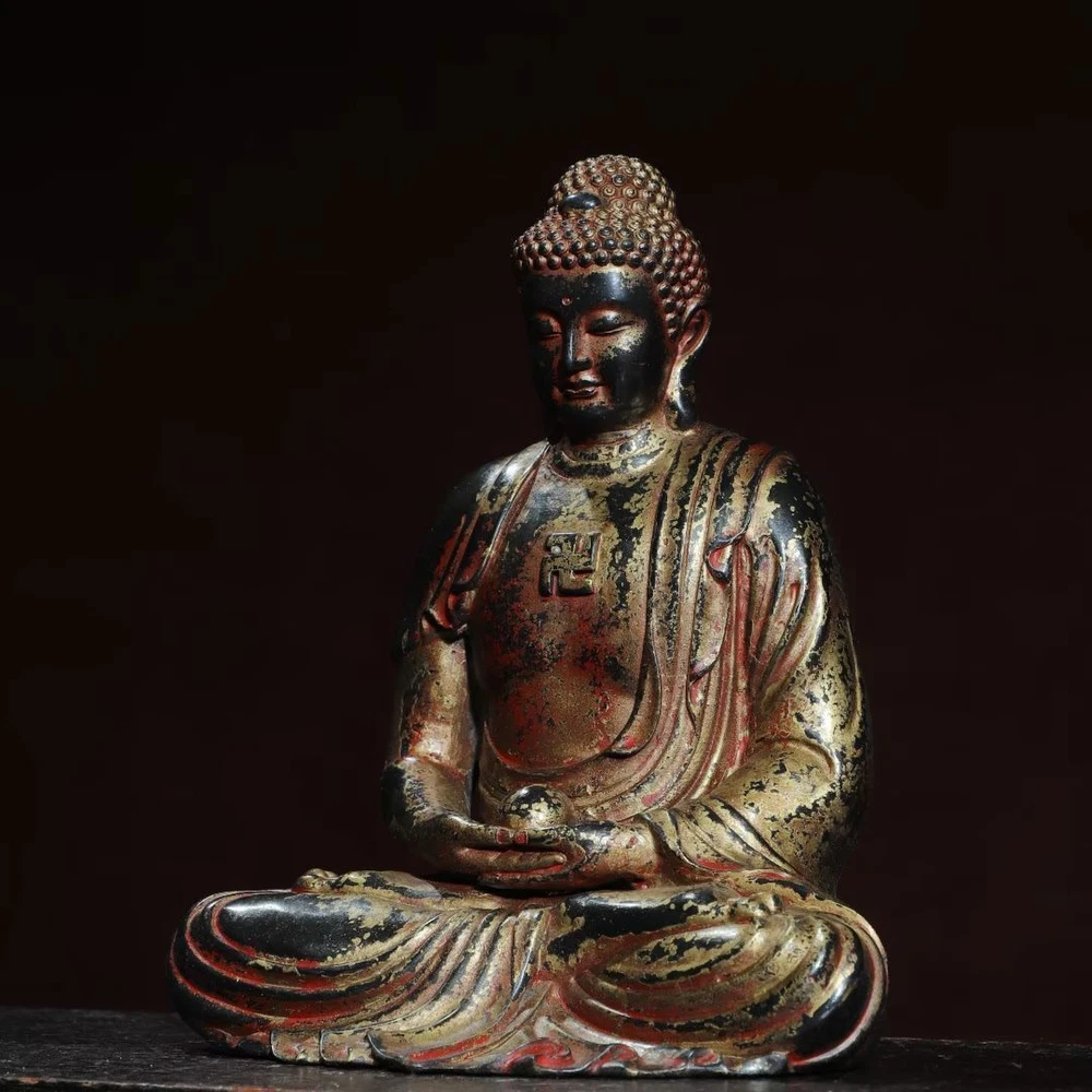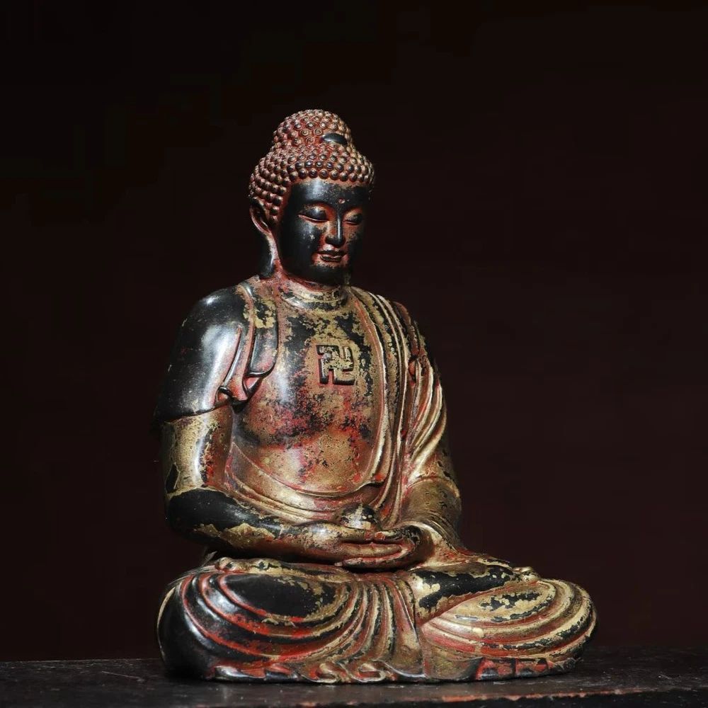 $ 110.8912.4"Tibetan Buddhism temple bronze gilt Shakyamuni Sakyamuni Shakya Mani statue