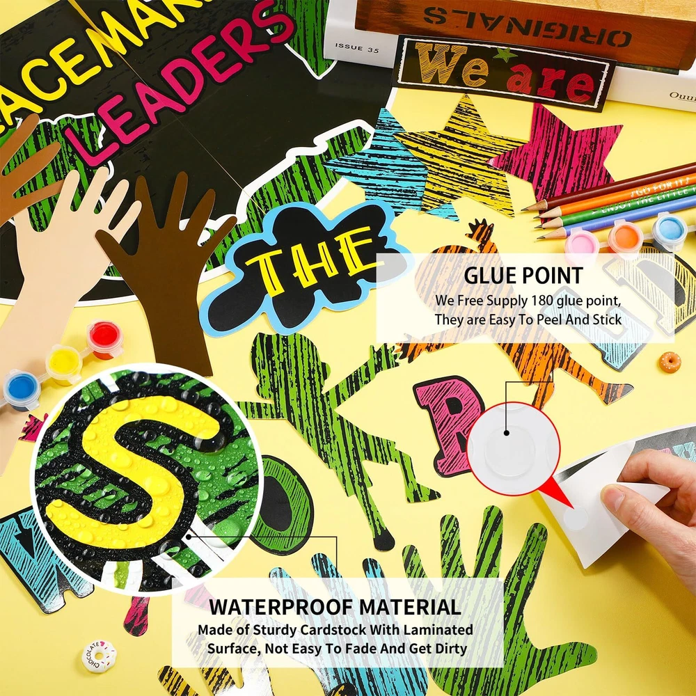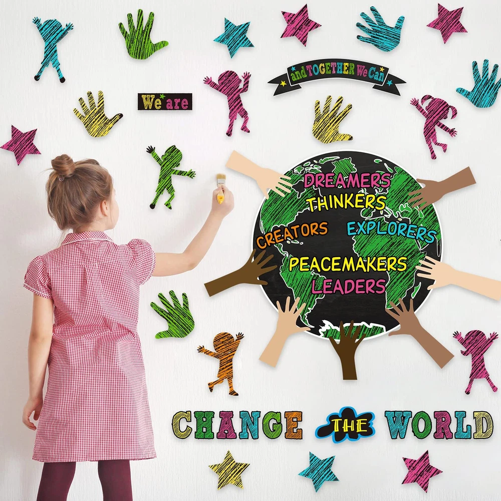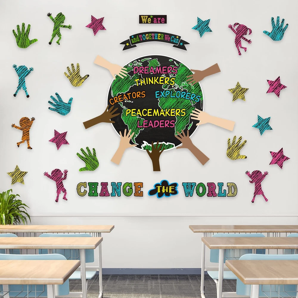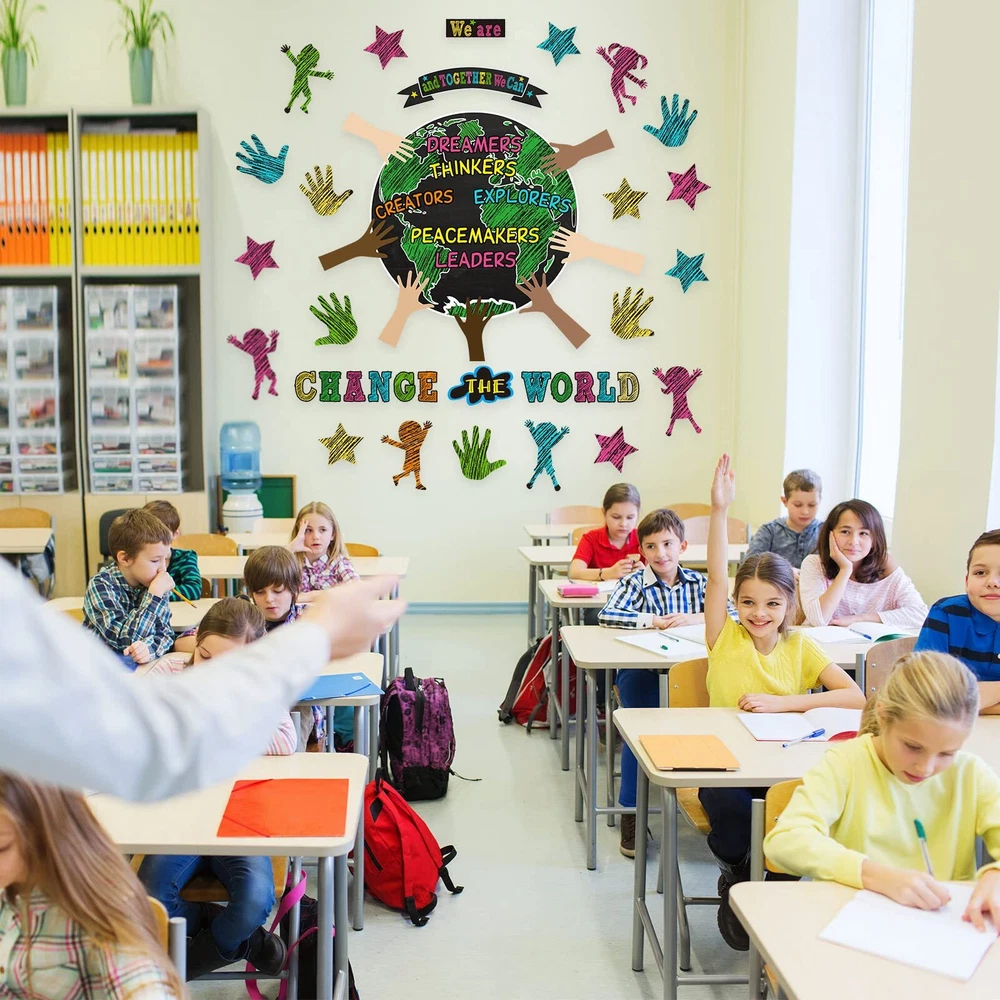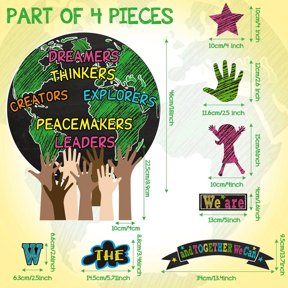 Features: Informative and helpful: Transform your classroom with an earth day classroom decor, this is good for motivating students and encouraging a positive classroom environment. Multiple uses: This we are and together banner poster also can be applied with other classroom tools to encourage students and achieve effective action. Specifications: Material: white cardboard Color: as shown in the pictures Size: as shown in the pictures Package includes: 14 x Text cards 4 x Earth Cards 7 x Types of arm jam 30 x Palm card prints 15 x Star cards 18 x Character cutouts Notes: Manual measurement, please allow slight errors on size. The color may exist slight difference due to different screen displays. Package Include: you will get 88 pieces of one world together classroom decor, including 14 text cards, 4 earth cards, 7 types of arm cards, 30 palm card prints, 15 star cards, 18 character cutouts with 180 glue points for easy using, sufficient quantity makes them suitable for decorating the wall and add color to the classroom Easy to Use: you can put glue points on the place you want, peel them from the white protective film, then place the cutouts on the glue points, the cards can be fixed well; We provide you with removable glue points that are easily removed from surfaces when not in use, these one world together cutouts can create a warm learning atmosphere for students Quality Material: we can change the world cutouts are made of 210g white cardboard, hard to break, colorful, have clear printings, and not easy to fade; The glue points are made of quality glue which is safe for you, help your students build confidence with this motivational and inspirational bulletin board set Practical Design: these earth bulletin boards set make nice additions to the classroom, whiteboard and bulletin board, they let your boards look more colorful and meaningful, student will pay more attention to the bulletin board if you paste these classroom bulletin board sets on it, which is a good helper for teachers Multi Purposes: these we are and together classroom decorations has bright colors and beautiful shapes, can be attached to bulletin boards and classroom wall, suitable for classroom decoration, classroom display, home decoration, class activities, class task cards, teaching tools, and wherever you want to add joy and fun