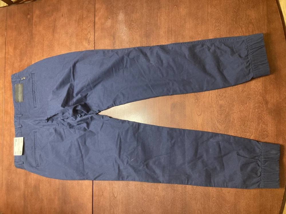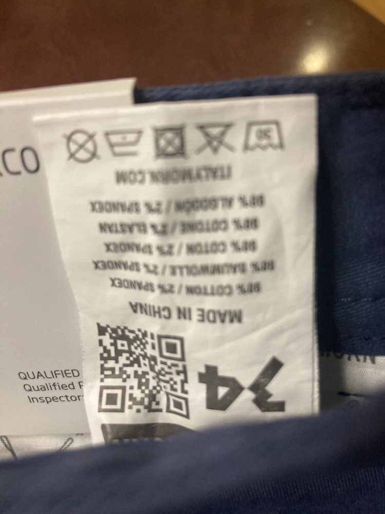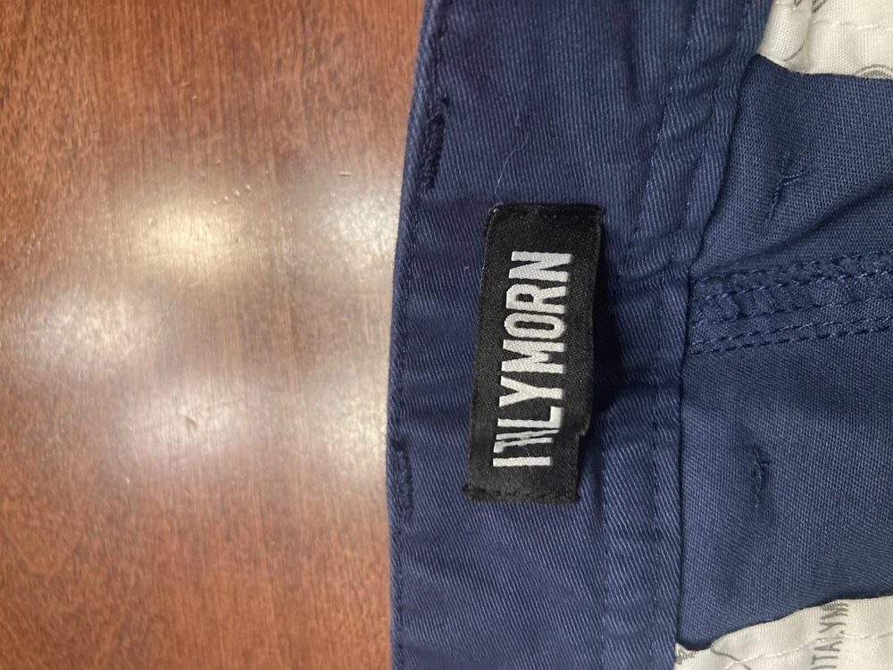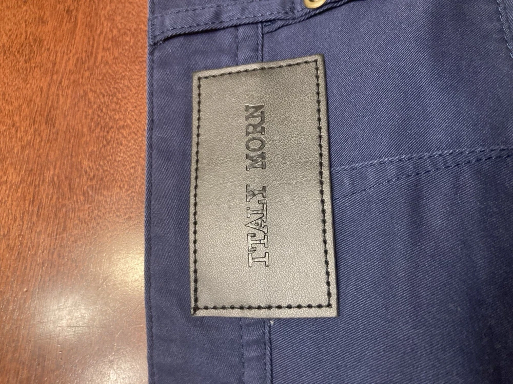 Elevate your wardrobe with these stylish Italy Morn chino pants. The navy blue color and solid pattern make them a versatile choice for any occasion, whether it's casual, workwear, or business. The pants feature a flat front and a relaxed fit, with a straight leg style and a 5-pocket design. Crafted from breathable and stretchable cotton fabric, these pants are perfect for all seasons. The waist size is 34 inches and the inseam is 31 inches, with a high rise of greater than 12 inches. The pants also have a zip closure and are machine washable for easy care. Upgrade your look with these modern and comfortable Italy Morn chino pants. Faint white marks around the knees