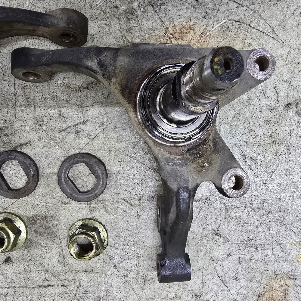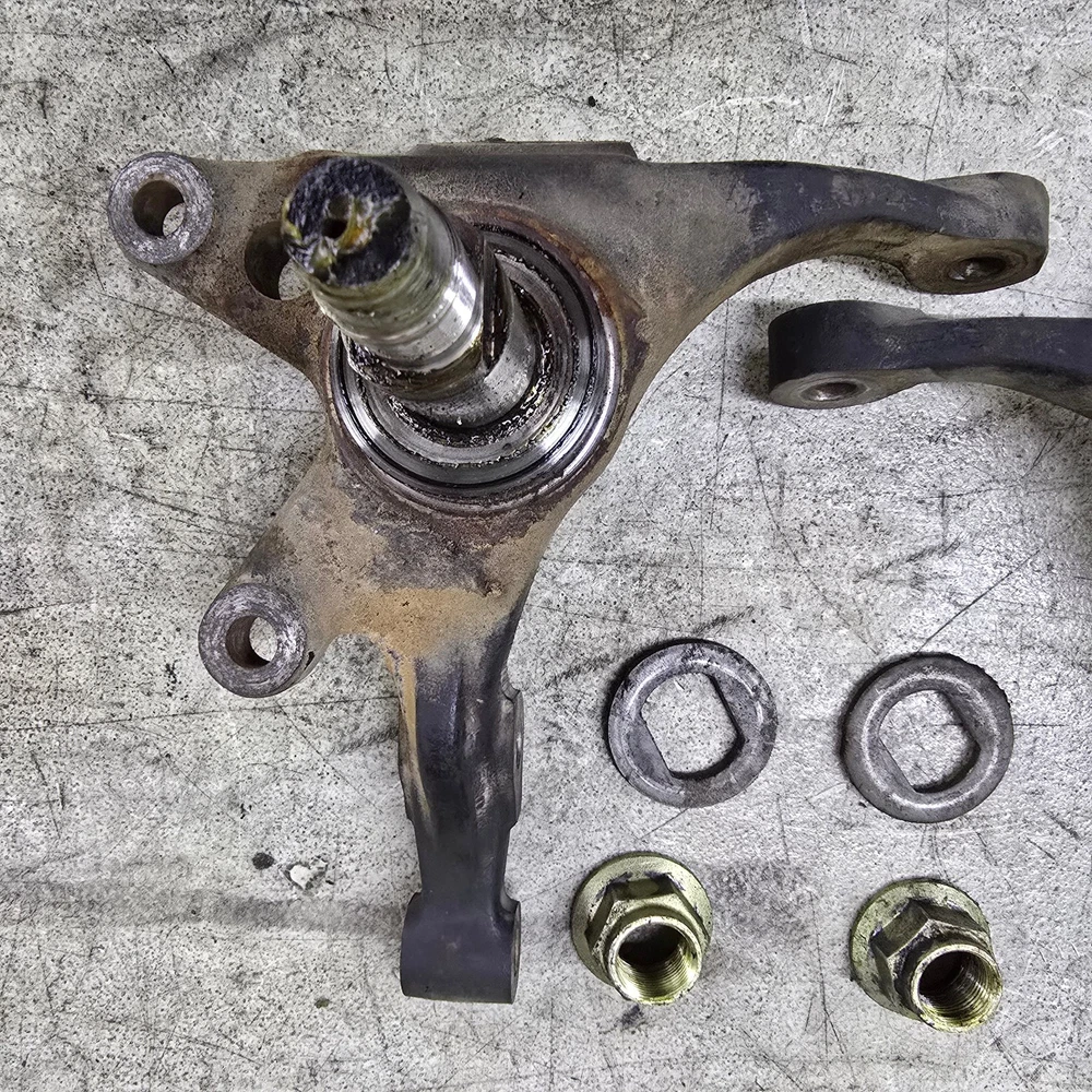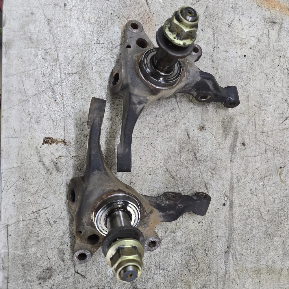 Used OEM S13 front steering knuckles with washer and nut for bearing. for 1989 to 1994 nissan 240sx This is a PAIR of front steering knuckles. 1 left and 1 right. no bends or severe rust flaking. see photos This is a used component and may show signs of prior use or cosmetic wear. It has not been tested beyond visual inspection unless otherwise stated in the listing. Functionality is not guaranteed unless specifically noted. By purchasing this item, the buyer agrees to assume all risk and liability associated with installation and use. The seller shall not be held liable for any damages, costs, or losses resulting from the installation, programming, or operation of this component.