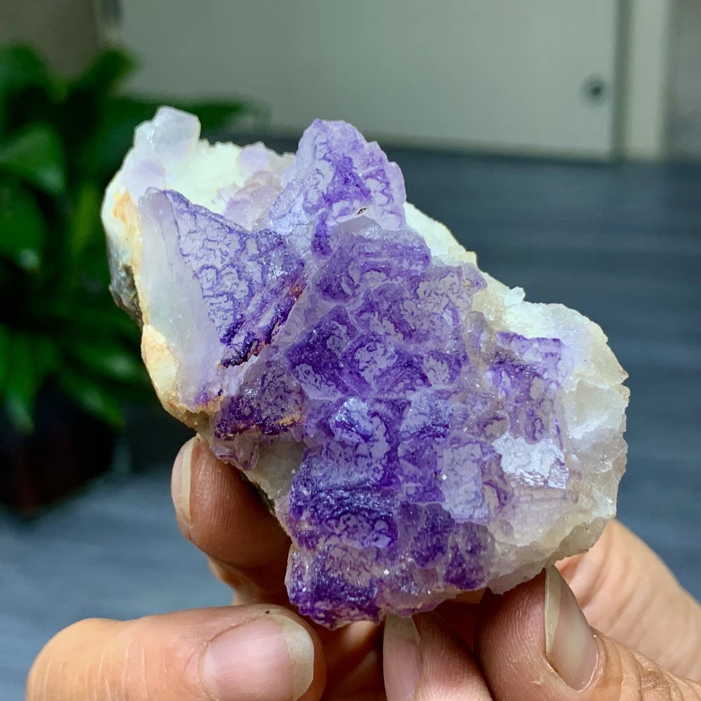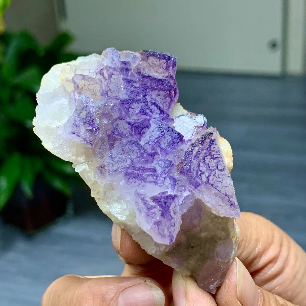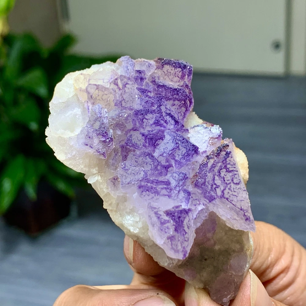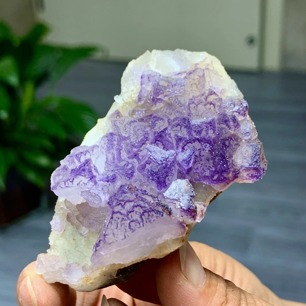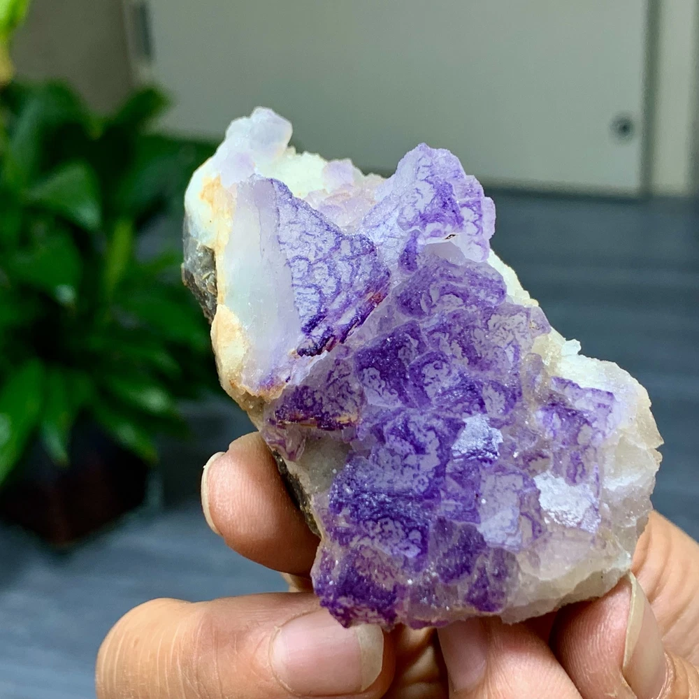 89G Natural Purple QR Code Fluorite Cluster Crystal from Guizhou Mineral Specimen