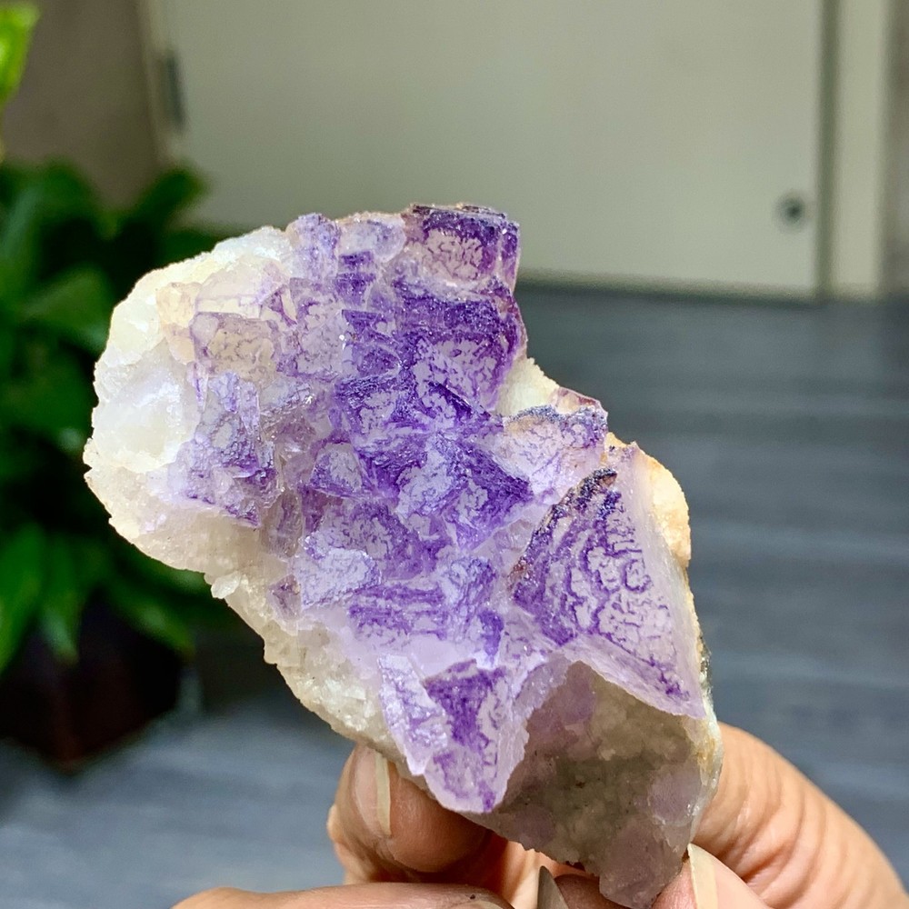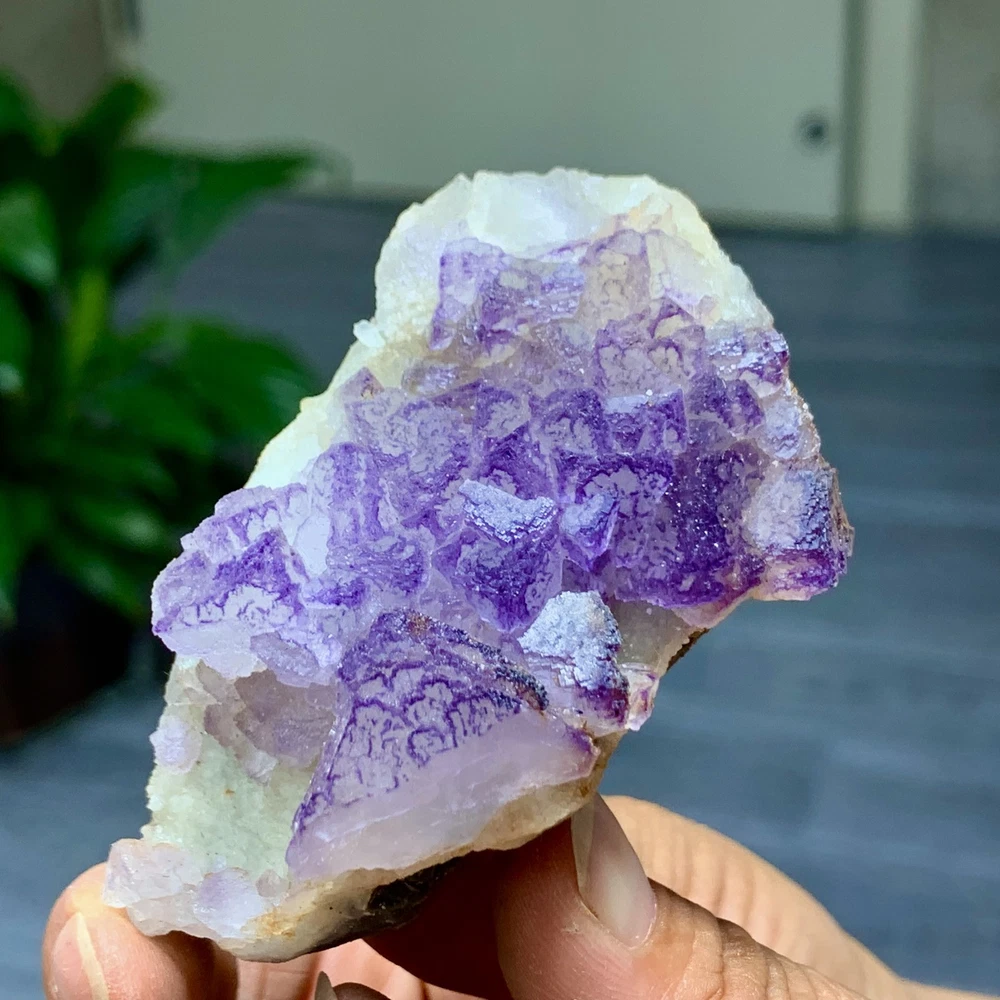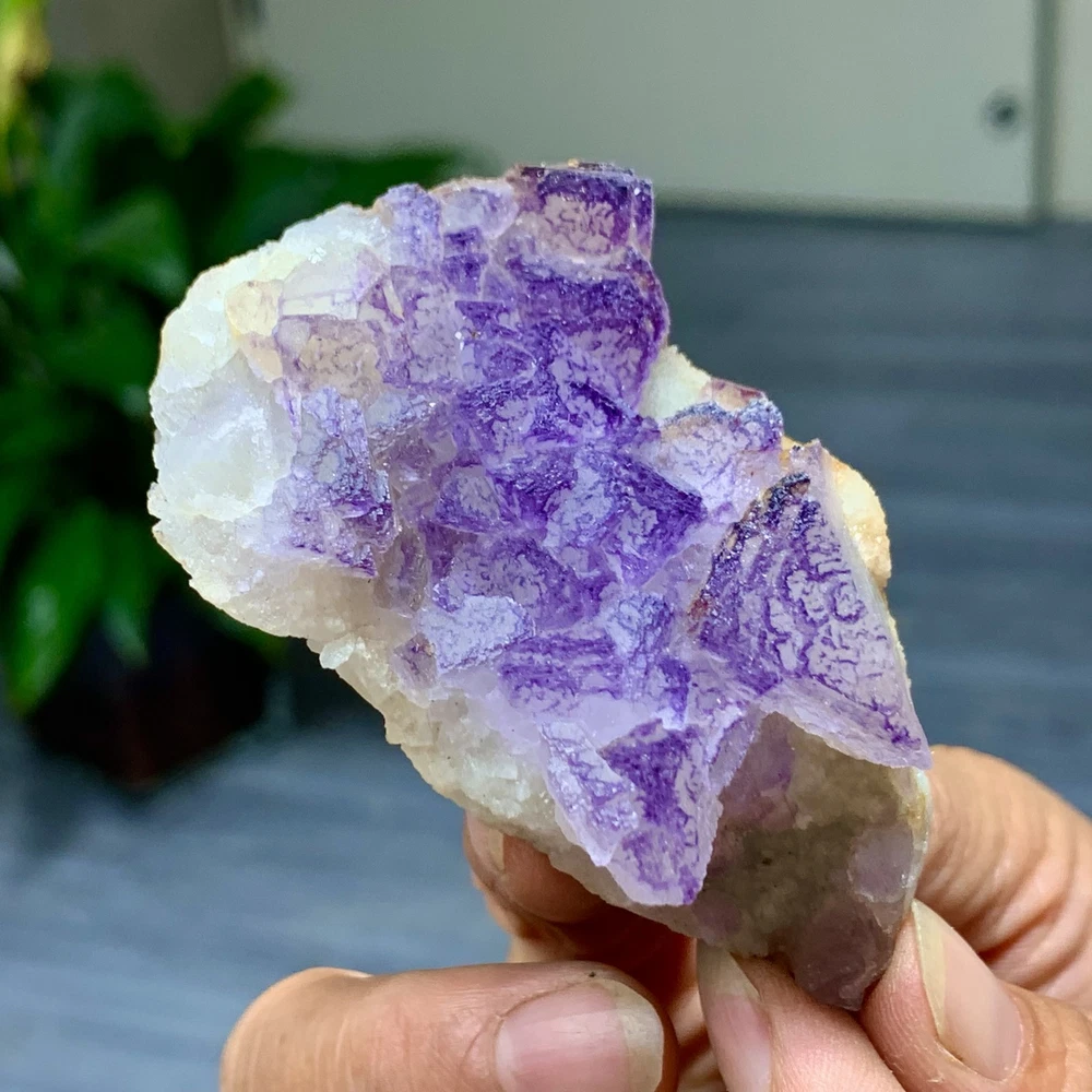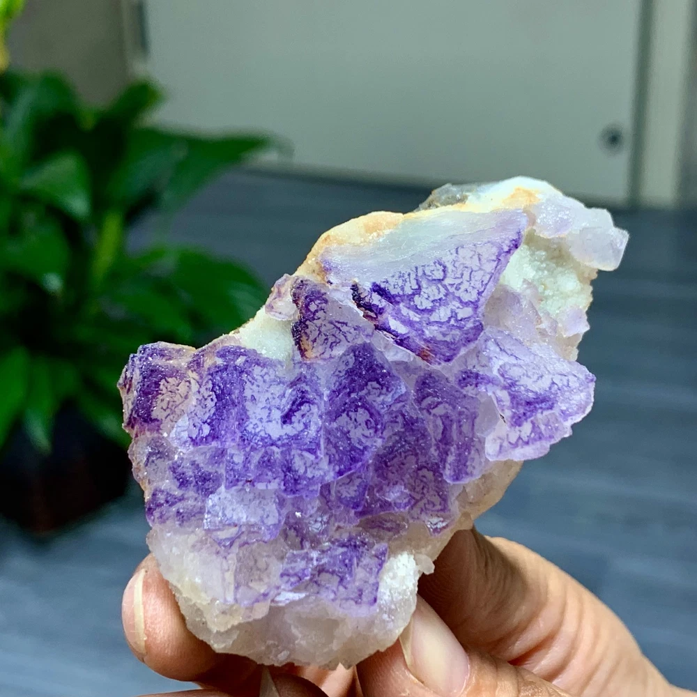 89G Natural Purple QR Code Fluorite Cluster Crystal from Guizhou Mineral Specimen
