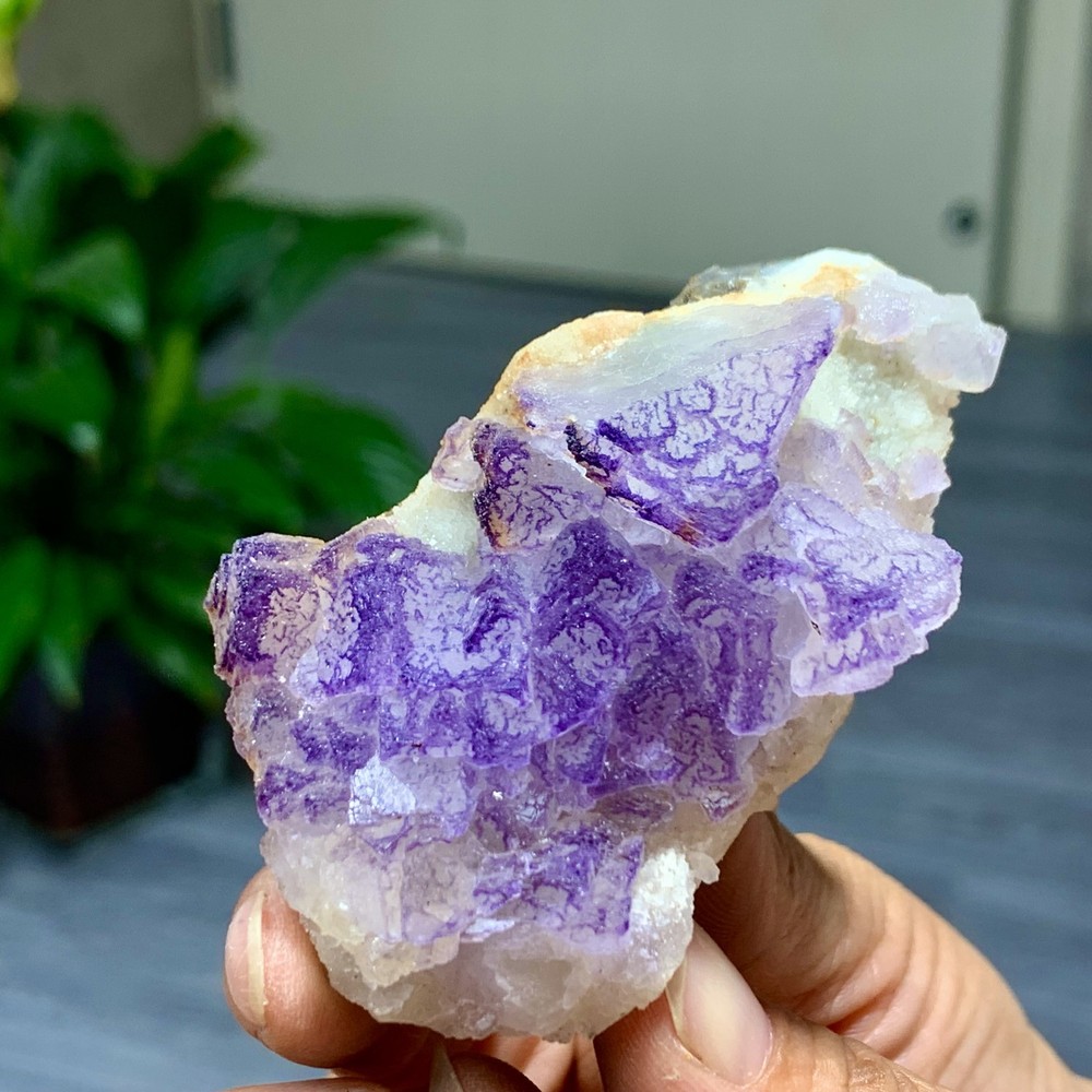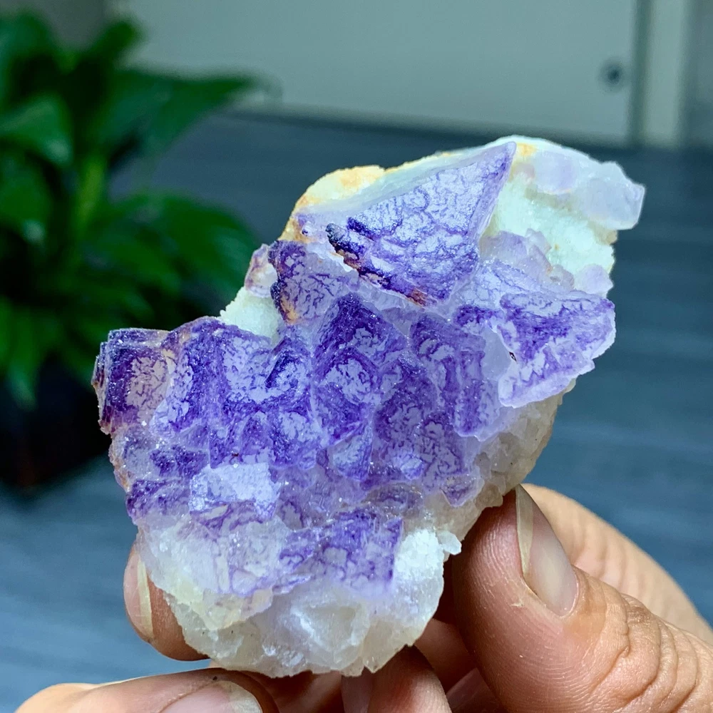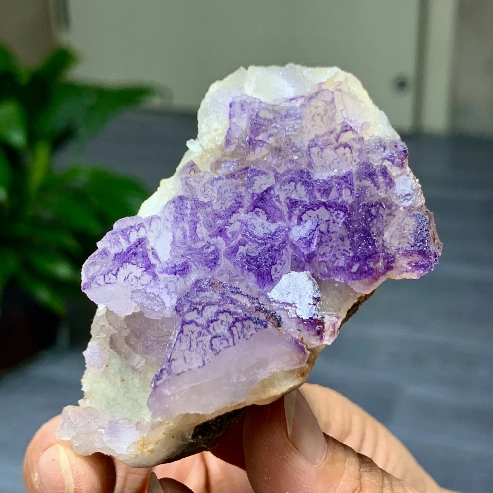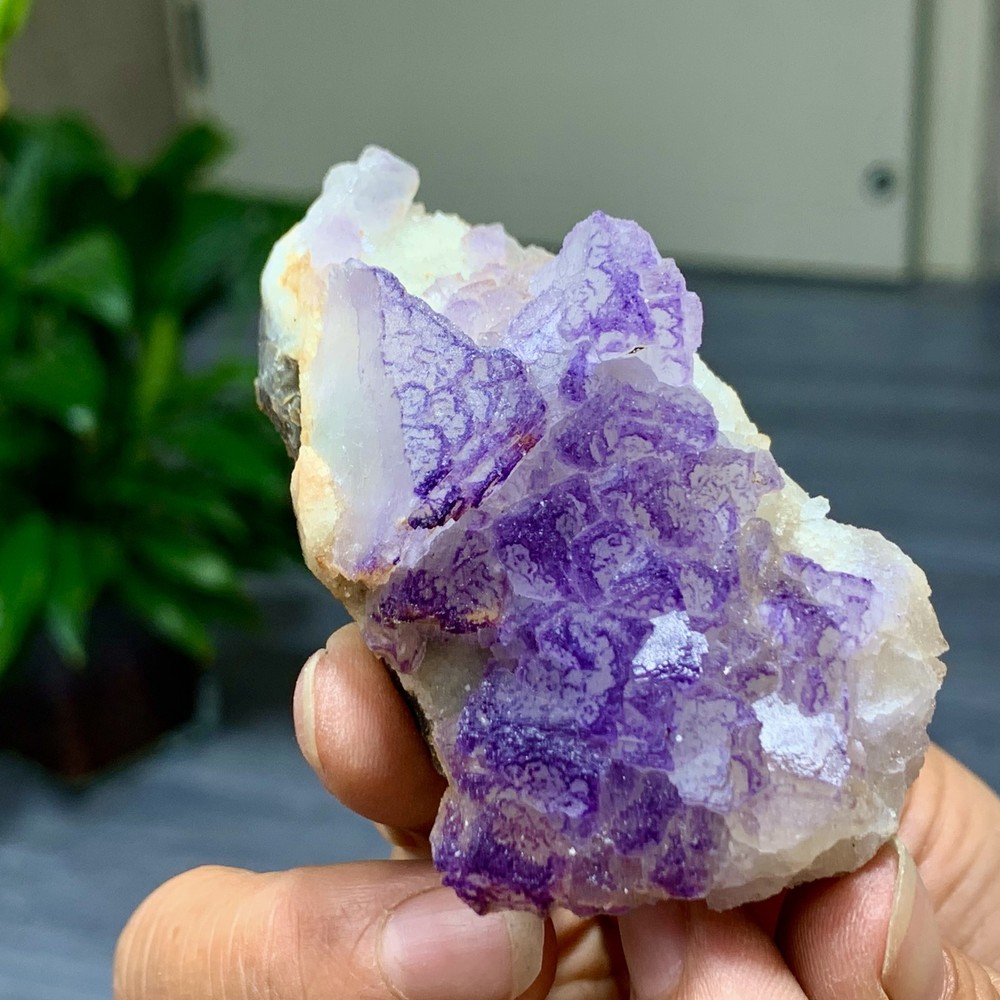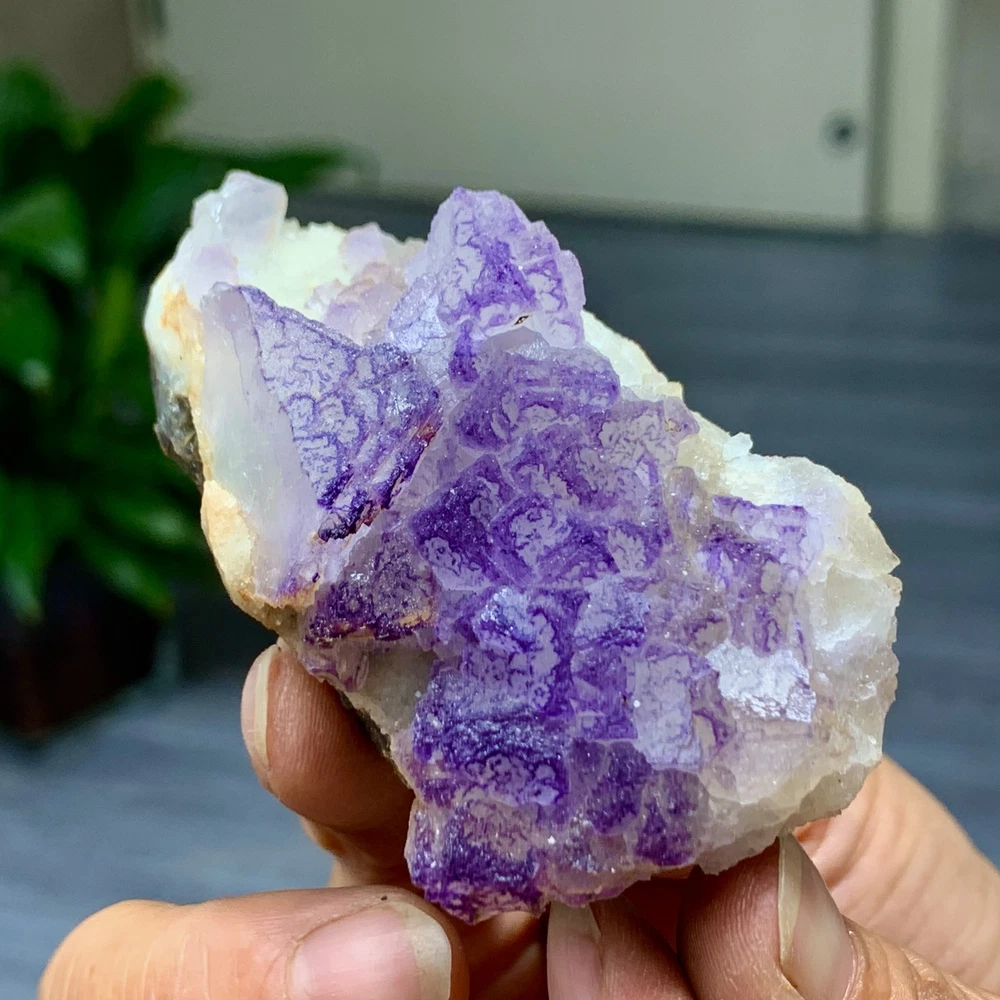 89G Natural Purple QR Code Fluorite Cluster Crystal from Guizhou Mineral Specimen