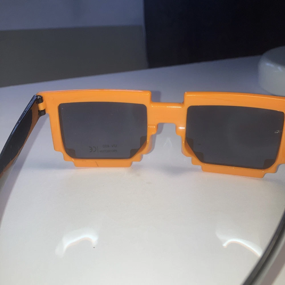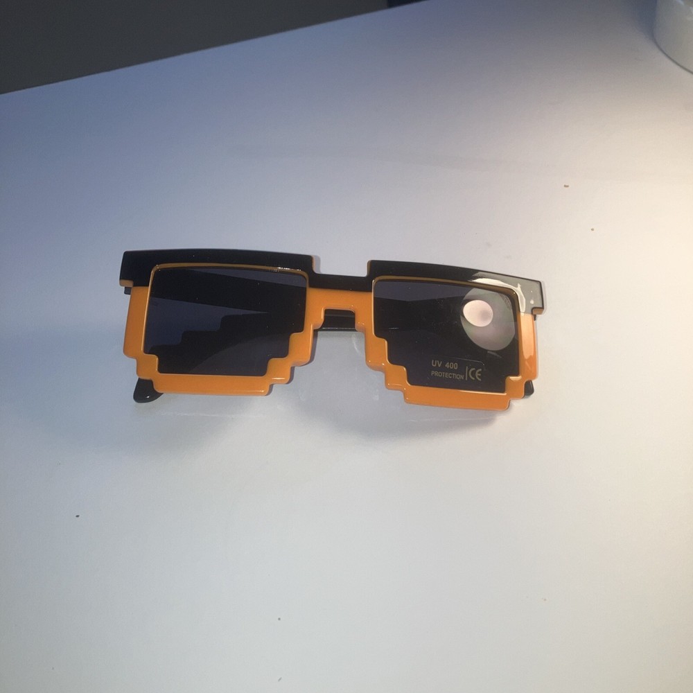 These sunglasses are a total vibe! The retro 8-bit pixel design in bright orange makes them super fun and unique. They’re lightweight, comfy, and the black lenses give just the right tint without being too dark. Love that they offer full UV protection—great for sunny days or just rocking a cool Minecraft-inspired look. Fits all ages and adds a playful pop to any outfit. Definitely a must-have for gamers and style lovers alike!