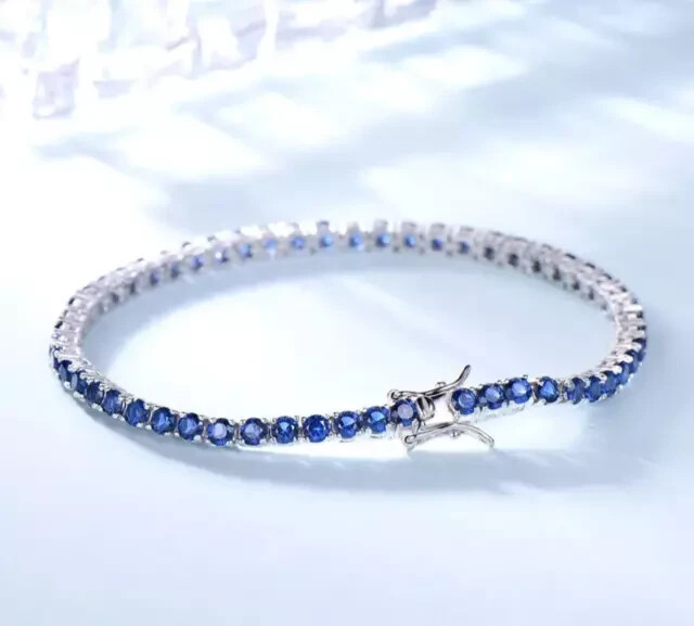 8CT Round Lab-Created Sapphire Tennis Bracelet in 14K White Gold Plated for Women