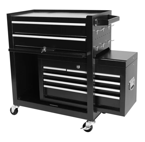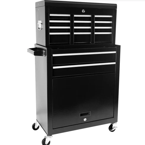 Specification Product Information Item Code:W1239137221 Product Type:General Item Product Name:8-Drawer Rolling Tool Chest with Wheels, Large Tool Cabinet with Drawers, Mobile Steel Tool Storage Organizer with Lock&Liner for Warehouse, Workshop, Black Main Color:Black Main Material:Steel Product Dimensions Assembled Length (in.):24.41 Assembled Width (in.):12.99 Assembled Height (in.):42.52 Weight (lbs.):55.56 Package Size Length (in.):27.56 Width (in.):16.34 Height (in.):29.33 Weight (lbs.):61.29 Product Features HIGH CAPACITY. Rolling tool box is equipped with 8 sliding drawers: 2 large, 3 medium & 3 small, 1 top layer, and 1 bottom cabinet, to store tools of different sizes and meet your needs. Each drawer is designed with a liner. Tool chests & cabinets has 8 hooks beside of cabinet, hanging tools. We also provide you with 7 storage boxes. EASY TO MOVE & STORE. Top box with 2 handles, easy to take and lift, and bottom tool cabinet with hand bars, which help you to move forward. Craftsman tool chest can be easily moved and stored because there are 4 universal casters, 2 of them is braked. ADVANCED DESIGN - Each drawer is equipped with smooth slide rail that is easy to open and close. The top and the bottom tool box can be locked by keys which makes the tools inside safe. EASY TO TIDY. Our heavy-duty tool chest is rustproof, scratch-resistant, and easy to clean. The padding inside drawers provides excellent cushioning and heat insulation, protecting your tools from damage. DURABLE. Tool chest is made of premium steel with powder coating, stable construction, avoids from scratching, denting, and chipping, more durable; classic color. The tool chest with drawers is detachable, can be divided into top tool box and bottom tool cart, with an independent locking system. Description