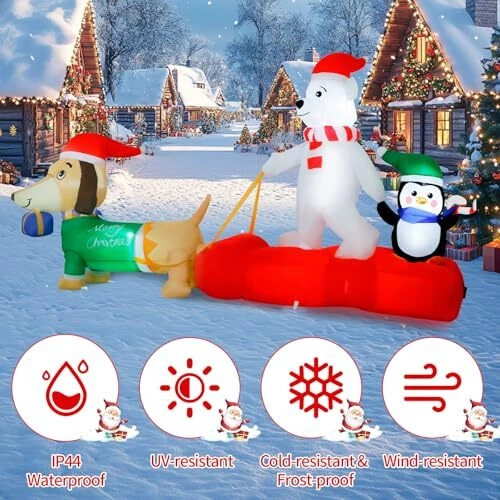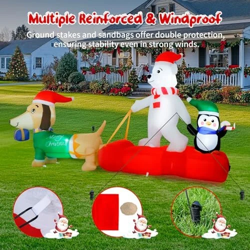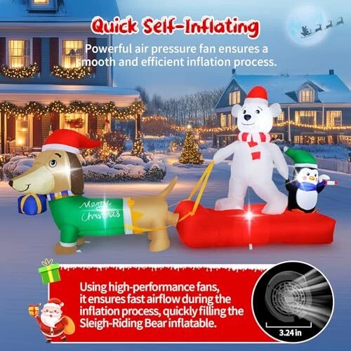 30 Days Return Policy Fast Delivery Trusted seller 8FT Christmas Inflatable Outdoor Lighted Polar Bear & Penguins Carrying Dog Sleigh Decor, Sleigh-Riding Bear with a Candy Cane-Holding Penguin Yard Decor for Xmas Holiday, Indoor & Outside Product Description ?【Charming Holiday Decoration】A polar bear wearing a red Santa hat leads an adorable little penguin holding a candy cane. A Christmas puppy carrying a gift in its mouth drives the sled that carries both the penguin and the polar bear, together distributing delightful Christmas presents and spreading joyful holiday wishes. The sparkling lighting effects highlight every detail, adding warmth and festive cheer to your celebration. ?【Sparkling Light Effects】Decorate your Christmas with this 8-foot inflatable decoration, bringing joy and warmth to your home. Featuring three-LED light, it offers advantages in brightness, uniformity, energy efficiency, longevity, and fault redundancy. Suitable for both indoor and outdoor use, it creates an unforgettable festive atmosp whether placed in your yard or living room. ?【Sturdy and Stable】Our Inflatable Outdoor Decor is made from high-quality waterproof polyester material. The sandbag at the bottom can be filled with sand to add weight to the base. Use the ropes and ground stakes to enhance stability and prevent it from being blown away or moved accidentally. This ensures that the Inflatable Outdoor Decor will last throughout the entire holiday season. ?【Durable and Easy to Maintain】Featuring advanced heat-sealing technology, the seams are tight and airtight. Made from specially treated high-quality synthetic fabric, it is resistant to both high and low temperatures, with excellent dyeing performance, vibrant colors, and minimal fading. It supports CE and UL certified adapters, making this Inflatable Outdoor Decor a dazzling and safe highlight of your holiday decorations. ?【Package Included】1 x 8FT Inflatable Outdoor Decor, 1 x Storage Bag, 1 x Sandbag(which can be filled with sand to add weight, ensuring the balance and stability of the 8FT Inflatable Outdoor Decor.), 2 x ropes, 4 x Stakes to secure, 1 x 1.25A UL-certified Adapter adaptor. Shipping Returns Payment Shipping Shipping is FREE to all addresses other than APO/PO boxes in the lower 48 states. All our stock ships from US-based warehouses. Shipped via USPS or UPS (depending on location and package weight) Unless stated otherwise, all orders will ship within 24-72 hours of your payment being processed. Check our feedback to see the great reviews of FAST shipping we offer. Returns As our valued customer, we will do our best to make sure the product you receive arrives to you on time and as expected. If you are not satisfied with your purchase, please contact us within 30 days of receiving your order to process a return. Payment We currently accept payment via eBay managed payments only. Once payment is cleared, we will dispatch your shipment within 1-3 business days. Please refer to the "Shipping" tab for more information regarding shipping speed to your destination.