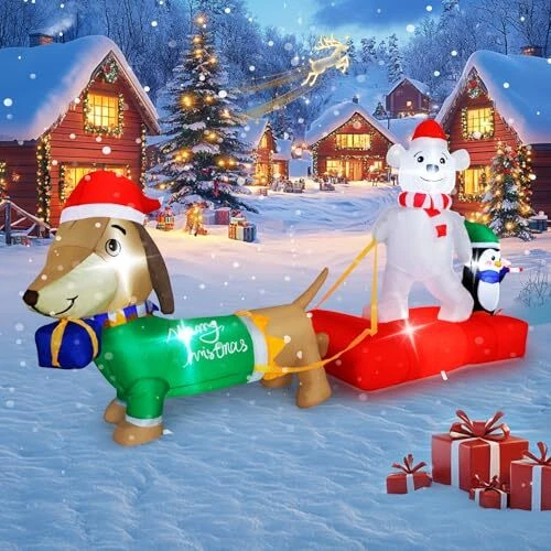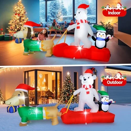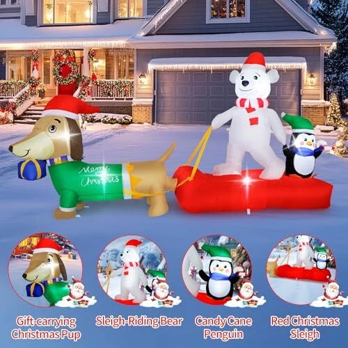 8FT Christmas Inflatable Outdoor Lighted Polar Bear & 8FT Gift Dog Sleigh