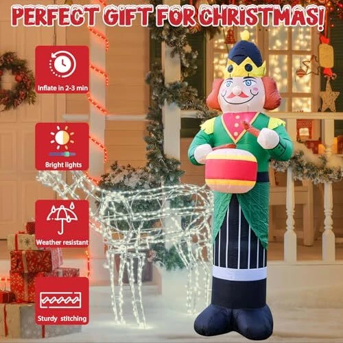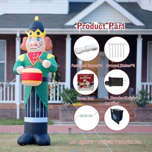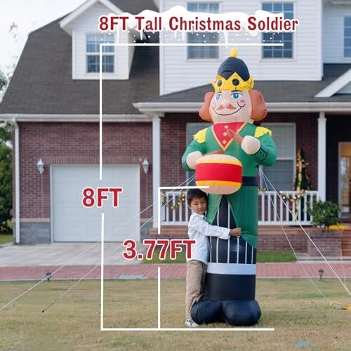 30 Days Return Policy Fast Delivery Trusted seller 8FT Christmas Inflatable Nutcracker Soldier Outdoor Decorations, Xmas Blow up Yard Decorations,Santa Soldier with Lights for Indoor Outdoor Patio Garden Xmas Decor Product Description 8FT GIANT CHRISTMAS INFLATABLE DECORATIONS: A large size 8FT tall christmas outdoor inflatable soldier , it adds an eye-catching centerpiece to your holiday seasonal layout and welcome your guests with warm wishes, creating a warm and happy atmosp for your yard and room. 2 TO 3 MINUTES EXPANSION: This inflatable christmas soldier ornament is designed with a high-performance built-in fan, allowing it to fully inflate within two to three minutes after being plugged in. Its lightweight construction and self-inflating feature enable any family member to easily set it up and take it down. Before inflation, please ensure that the zipper is securely closed to maintain proper sealing and achieve optimal inflation. ENHANCED STABILITY SUPPORT: Includes 6 ground stakes and 4 ropes to ensure stability during use, providing you with greater flexibility in positioning this inflatable decoration. Additionally,You can also place bricks or sandbags (not included) inside the inflatable model to enhance its stability. INTERNAL LED LIGHTS: This 8FT soldier outdoor decoration features 3 built-in LED bulbs that emit a bright white light, making it perfect for nighttime displays. At night, this gigantic soldier model will illuminate your yard, drawing everyone's attention and becoming the star attraction of christmas party night. Neighbors will be captivated by the dazzling lights and charming design, enhancing the festive atmosp and making your yard the standout highlight of the entire neighborhood. NOTE:① If the device is used continuously for more than 12 hours, it is recommended to allow it to rest for 1-2 hours. This pause will help ensure a longer lifespan and optimal performance of the product.②Please refrain from using the product on rainy or snowy days for safety reasons, as it relies on electricity. Shipping Returns Payment Shipping Shipping is FREE to all addresses other than APO/PO boxes in the lower 48 states. All our stock ships from US-based warehouses. Shipped via USPS or UPS (depending on location and package weight) Unless stated otherwise, all orders will ship within 24-72 hours of your payment being processed. Check our feedback to see the great reviews of FAST shipping we offer. Returns As our valued customer, we will do our best to make sure the product you receive arrives to you on time and as expected. If you are not satisfied with your purchase, please contact us within 30 days of receiving your order to process a return. Payment We currently accept payment via eBay managed payments only. Once payment is cleared, we will dispatch your shipment within 1-3 business days. Please refer to the "Shipping" tab for more information regarding shipping speed to your destination.