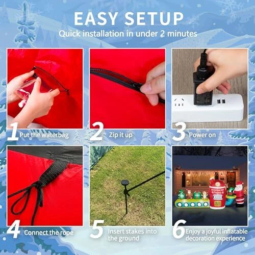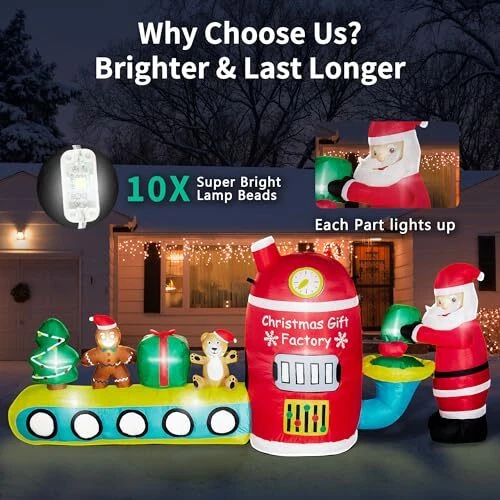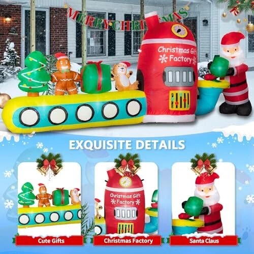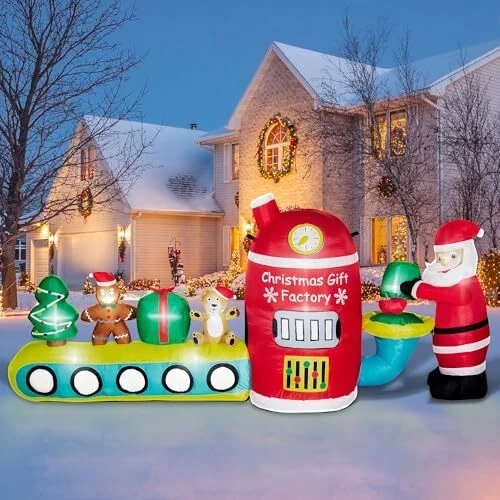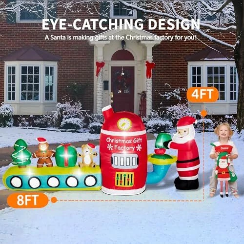 30 Days Return Policy Fast Delivery Trusted seller 8FT Christmas Inflatables Outdoor Decorations Santa Claus Gift Factory Blow Ups Cute Christmas Decor Built-in LED Lights for Xmas Outside Indoor Party Yard Lawn Garden Porch Holiday Product Description 【Inflatable Christmas Decorations】Santa has set up a Christmas gift factory in your yard, crafting gingerbread, Christmas trees, and teddy bears, everyone who passes by gets a gift. TwoBees 8ft Christmas inflatables combine many Christmas elements and spread warmth to your family and neighborhood 【Eye-Catching Light】The Christmas blowups outdoor Christmas inflatables with 10 super bright LED lights built inside, effortlessly light up your lawn or garden at night, creating a joyful holiday vibe during this biggest festive season of the year in the cold winter, attracting kids and family members to enjoy this cheerful festival together 【Fast Inflate & deflate】The cute Christmas yard decorations outdoor gift factory can self-inflate within mins once plug-in, and quickly deflate once you are done using it. Super powerful and waterproof blower gives you a great user experience with low noise. Ideal for front door, outdoor and indoor Christmas decorations, yard, lawn, patio, porch, home, door, party decor, New Year events, and more 【Premium Material】Crafted from thickened 210T umbrella fabric, with a tight weave for superior rip and fade resistance. 6 waterbags and 6 ground stakes keep it stable and stand firmly! Our Christmas outdoor decor is designed to withstand rain, snow, and wind, making it your favorite holiday display for seasonal use year after year 【Quality Guarantee】Each product undergoes triple-check before shipment. The fan and adapter are UL-certified, ensuring safety and eliminating potential hazards. Contact us at any time if products don't meet your expectations. We are committed to ensuring that every moment brings you joy Shipping Returns Payment Shipping Shipping is FREE to all addresses other than APO/PO boxes in the lower 48 states. All our stock ships from US-based warehouses. Shipped via USPS or UPS (depending on location and package weight) Unless stated otherwise, all orders will ship within 24-72 hours of your payment being processed. Check our feedback to see the great reviews of FAST shipping we offer. Returns As our valued customer, we will do our best to make sure the product you receive arrives to you on time and as expected. If you are not satisfied with your purchase, please contact us within 30 days of receiving your order to process a return. Payment We currently accept payment via eBay managed payments only. Once payment is cleared, we will dispatch your shipment within 1-3 business days. Please refer to the "Shipping" tab for more information regarding shipping speed to your destination.