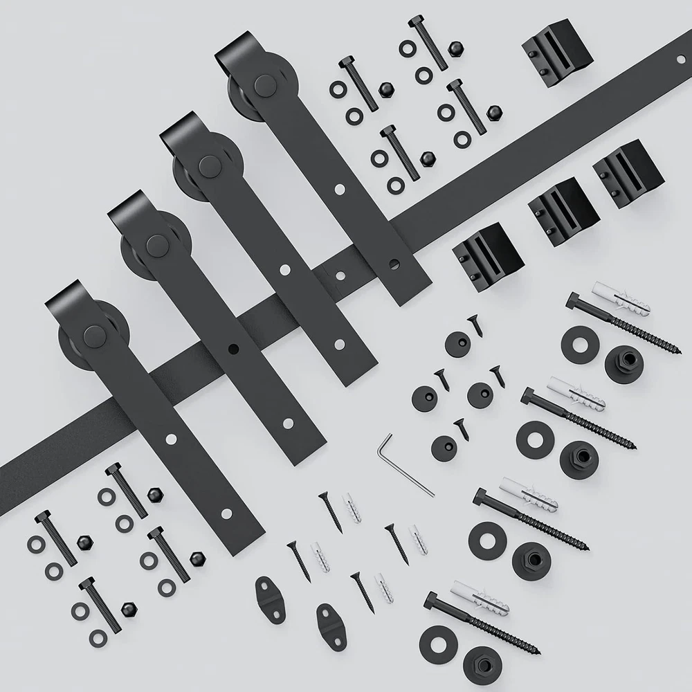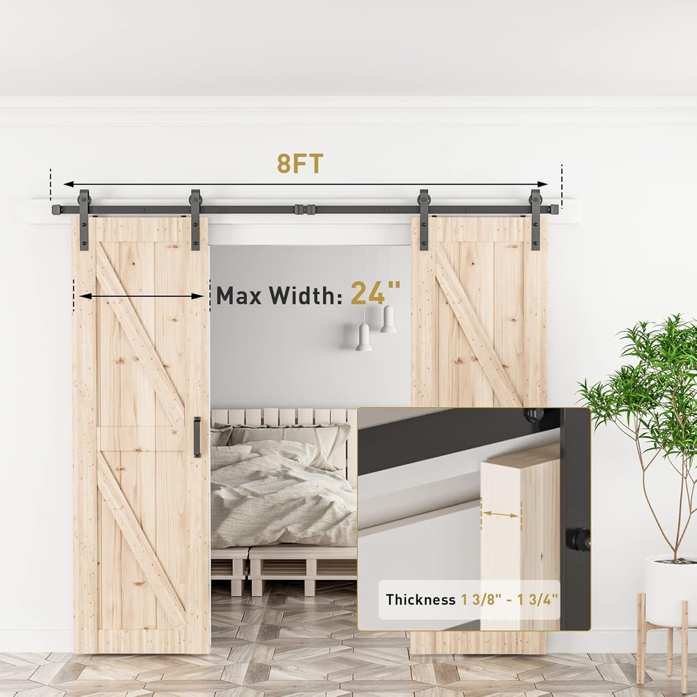 8FT Double Sliding Barn Door Hardware Kit for Wood Slabs - Garage Installation