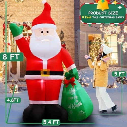 30 Days Return Policy Fast Delivery Trusted seller 8FT Outdoor Christmas Inflatables Decorations Santa Claus with Gifts Bag Christmas Inflatables Blow up with Built-in LED Lights Inflatable Santa for Outdoor/Indoor/Yard/Holiday Decor Product Description BRING HOLIDAY CHEER IN CLASSIC CHRISTMAS FASHION - Infuse your holiday spirit with our 7-feet inflatable Santa Claus and build the perfect holiday yard display this year to outdo the neighbors and bring holiday cheer in classic Christmas fashion SUPER BRIGHT LED LIGHTS —Eye-catching, bright LED lights built inside the inflatable Santa. Warm white 4 LED lights create the ultimate festive Christmas display in your yard this holiday season. With the Outdoor Santa Claus Christmas Holiday Inflatable, you can bring the holiday spirit to life SEIF-INFLATING &WATERPROOF FOR OUTDOOR USE—Our Christmas inflatable yard decoration is crafted from high-quality, 210T thickened polyester PVC waterproof material, ensuring long-lasting durability and resistance to tearing. It features a powerful waterproof built-in fan and a UL-certified adapter, continuously inflating the decoration and maintaining its perfect condition A POWERFUL BUILT-IN FAN,EASY TO USE—The H2cegak Christmas inflatable Santa is equipped with an upgraded powerful inflation fan, allowing the inflatable yard decoration to be quickly inflated in just two minutes, efficiently. Don’t forget to zip up the bottom before inflating. It also comes with 2 ropes and 4 stakes to ensure it stays firmly in place DURABLE MATERIALS & ADVANCED SEWING TECHNIQUES—The high-density thickened polyester fiber combined with advanced sewing techniques ensures durability, waterproofing, fade resistance, and puncture resistance. This outdoor decoration is suitable for rainy and snowy weather. The deflated tree is easy to store and saves space effectively STABLE & WIND-RESISTANT —Each set includes 4 stakes and 2 ropes for quick and easy setup of the Christmas inflatable decoration. The outdoor Christmas decoration features two built-in water/sand bags to enhance bottom stability! T's a zippered opening at the bottom, providing space to add our water bags for added safety and security. Rest assured that this inflatable Christmas tree won't be blown away by the wind Shipping Returns Payment Shipping Shipping is FREE to all addresses other than APO/PO boxes in the lower 48 states. All our stock ships from US-based warehouses. Shipped via USPS or UPS (depending on location and package weight) Unless stated otherwise, all orders will ship within 24-72 hours of your payment being processed. Check our feedback to see the great reviews of FAST shipping we offer. Returns As our valued customer, we will do our best to make sure the product you receive arrives to you on time and as expected. If you are not satisfied with your purchase, please contact us within 30 days of receiving your order to process a return. Payment We currently accept payment via eBay managed payments only. Once payment is cleared, we will dispatch your shipment within 1-3 business days. Please refer to the "Shipping" tab for more information regarding shipping speed to your destination.