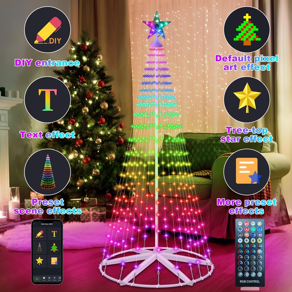 This Christmas tree is a total showstopper! The 388 RGB LEDs create a dazzling light display, and the smart app makes it super easy to switch colors and effects. Just be mindful of the timer settings if the lights turn off—and keep the control box dry for outdoor use. Perfect for adding festive magic to any space!