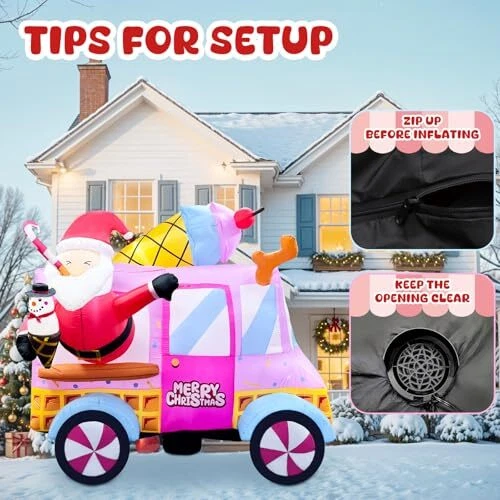 30 Days Return Policy Fast Delivery Trusted seller 8FT Santa Ice Cream Truck Inflatable, Cute Christmas Inflatable Outdoor Decoration Santa Claus Blow Up Snowman Cone in Giant Pink Van with Built-in LEDs & Blower for Yard Xmas Party Decor Product Description 【8FT Christmas Santa Truck Inflatable】The christmas inflatable outdoor decoration features an adorable pink ice cream van with antlers, a happy santa claus holding a snowman ice cream, a perfect addition to your winter wonderland display! What's more, the blower, adapter, ground stakes and fastened ropes that everything needed for setup are all included in the package. 【Outdoor Lighted Christmas Decorations】Adorned with 7 LED lights, when darkness falls, this christmas truck inflatable will light up your front yard, creating a warm and inviting glow that's sure to delight all passersby, making this a delightful addition to your outdoor Christmas decor. Your kids and friends will love this joyful addition to your blow up Christmas decorations. 【Weather Resistant Christmas Yard Inflatables】Made of 210T polyester, this outdoor inflatable christmas decorations is not only waterproof, but also soft, durable, and wear-resistant, rest assured that it's built to withstand years of use. With the added sandbags, fastened ropes and ground stakes, this santa claus inflatable can confidently face any wind or snow challenge or any other weather conditions that may come its way. 【Easy Installation with Self-Inflation】Setting up this ice cream snowman outdoor Christmas decorations is a breeze. It features a built-in blower that self-inflates blow up santa in seconds. Simply plug in and watch as it pops up magically before your eyes. The lightweight materials and user-friendly design make it a snap for anyone to set up in their yard. And when the celebration is over, taking it down is just as easy. 【Perfect Outdoor Santa Claus Decorations】Transform your yard into a winter wonderland with this delightful 8 ft christmas inflatable outdoor decoration. Perfect for decorating your house, lawn, yard or patio with this Christmas inflatables snowman. The beautiful design of the Christmas outdoor decorations is sure to bring a smile to the faces of all who see it. Shipping Returns Payment Shipping Shipping is FREE to all addresses other than APO/PO boxes in the lower 48 states. All our stock ships from US-based warehouses. Shipped via USPS or UPS (depending on location and package weight) Unless stated otherwise, all orders will ship within 24-72 hours of your payment being processed. Check our feedback to see the great reviews of FAST shipping we offer. Returns As our valued customer, we will do our best to make sure the product you receive arrives to you on time and as expected. If you are not satisfied with your purchase, please contact us within 30 days of receiving your order to process a return. Payment We currently accept payment via eBay managed payments only. Once payment is cleared, we will dispatch your shipment within 1-3 business days. Please refer to the "Shipping" tab for more information regarding shipping speed to your destination.