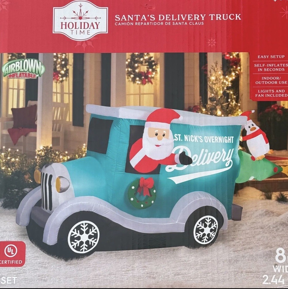 Holiday Time Christmas Inflatable 8 FT Santa's Delivery Truck Scene Yard Decor