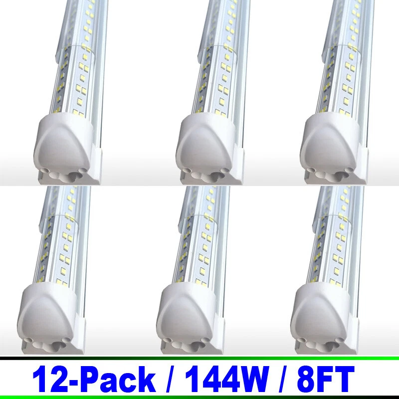 8Ft LED Shop Light Fixture -144W 18000LM, 6500K Integrated Tube Light 12 Pack