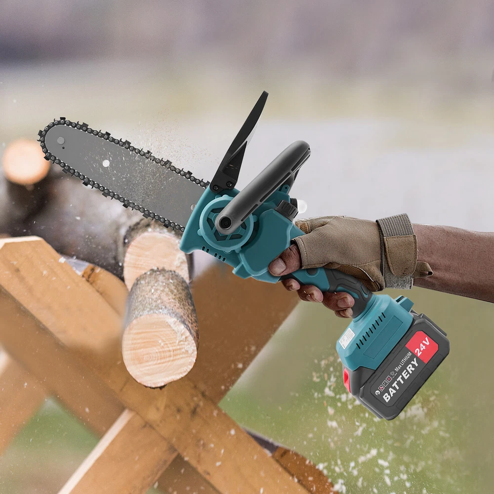 Specifications Color: Black, Green Material: #50 Steel, ABS Process: Quenching Copper Type: Brushless Pure Copper Motor Battery Capacity: 3000mAh(18650, 10 Battery Cells) Plug Standard: US Standard Rated Voltage: 100-240V AC50-60Hz Running Current: 60(A) Guide Plate Length: 25cm/9.84in Maximum Cutting Diameter: 20cm/8in Oil Tank Capacity: 30ml/1oz Charging Cord Length: 65cm/25.59in Power: 800W Speed: 4360rpm Endurance: About 40min Assembly Required: Yes Product Size: 13.3*12.5*46.2cm/5.24*4.92*18.19in Carrying Case Size: 49.7*16*24.5cm/19.57*6.3*9.65in Packaging Size: 49.7*24.5*16cm/19.57*9.65*6.3in Gross Weight: 3.6kg/7.94lbs Net Weight: 2.6kg/5.73lbs Package Included 1*Electric Saw 1*Saw Chain 1*Screw Driver 1*Charger 1*Battery 1 Pair*Gloves 11*Carrying Case Other Needed Accessories 8 inch Electric 800W Chainsaw Cordless Handheld Chain Wood Cutting Saw w/Battery Description This 8-inch electric chainsaw will be a flexible, lightweight plant-cutting and pruning tool in your hands with its powerful motor, high-capacity battery, comfortable handle, and compact size. The automatic lubrication function makes the product run quickly, providing you with a fast and smooth cutting experience and improving your work efficiency. Key Features Sturdy and Durable: The product is made of #50 steel and ABS with a quenching process, which is sturdy, durable, corrosion-resistant , rust-proof , tear-proof , and wear-resistant . Powerful Cutting Performance: The quenched high-quality guide chain ensures a smooth cut. In addition, a pure copper motor is used to provide your tool with long run time, large torque, and strong power, reducing wear and tear to extend the service life while delivering strong power for more efficient and faster cutting. Large Battery Capacity: This product is equipped with a 24V 3000mAh rechargeable Li-Ion battery that can last for 40 minutes for long-time working. In addition, the design of using lithium battery charging avoids the operation limitation brought by charging cable, which makes your operation site more flexible. Compact Size and Lightweight: Its slim body (5.24*4.92*18.19in) allows you to work easily even in narrow spaces. In addition, its lightweight(5.73 lbs) makes it ideal for one-handed use by women and the elderly, and less fatiguing for long-time work. Safety Guarantee: The product is equipped with a safety lock, you need to press the safety lock first and then press the trigger to activate it, effectively avoiding accidental contact and accidental injury. In addition, the product comes with overheating protection to avoid damage to the product under high intensity and long time operation. Thoughtful Design: The product is equipped with automatic chain lubrication. You only need to pour the oil into the oil tank to lubricate the chain, the product will reduce wear and make the cutting smoother. Simple Chain Adjusting: You just need to twist the knob on the sprocket cover to adjust the chain tension without tool requirements. User-friendly Design: The product comes with a non-slip textured handle and a pair of gloves to provide protection for your hands and allow you to hold the product tightly. Customer Service: We aim to provide quality products and services. If you have any problems, please feel free to contact us. We will reply and solve the problem for you as soon as possible. Details Protective Baffle: It prevents wood chips from splashing, ensures a healthy working environment, and protects your hands during work. Air Vents: They can promote ventilation and accelerate the cooling effect to avoid overheating of the machine. Application The product is suitable for use in gardens, farms, parks, forests, pastures, orchards, indoors, etc. for tree pruning, shrub pruning, home improvement, wood cutting, and other work. Specifications Color: Black, Green Material: #50 Steel, ABS Process: Quenching Copper Type: Brushless Pure Copper Motor Battery Capacity: 3000mAh(18650, 10 Battery Cells) Plug Standard: US Standard Rated Voltage: 100-240V AC50-60Hz Running Current: 60(A) Guide Plate Length: 25cm/9.84in Maximum Cutting Diameter: 20cm/8in Oil Tank Capacity: 30ml/1oz Charging Cord Length: 65cm/25.59in Power: 800W Speed: 4360rpm Endurance: About 40min Assembly Required: Yes Product Size: 13.3*12.5*46.2cm/5.24*4.92*18.19in Carrying Case Size: 49.7*16*24.5cm/ 19.57*6.3*9.65in Packaging Size: 49.7*24.5*16cm/19.57*9.65*6.3in Gross Weight: 3.6kg/7.94lbs Net Weight: 2.6kg/5.73lbs Package Included 1*Electric Saw 1*Saw Chain 1*Screw Driver 1*Charger 1*Battery 1 Pair*Gloves 1*Carrying Case Other Needed Accessories Notes Please check the size carefully before ordering. Please remember to fully charge the battery before storing it if you don't use it for a long time for a better experience the next time you use it. Please allow the slight color difference caused by the shooting light and 1-3cm error due to manual measurement, and make sure you do not mind before you order. Payment Delivery details Terms of sales About us Contact us Payment We accept ebay payment 。 Fees such as import duties, taxes are not included in the item price or shipping costs. These charges are the buyer's responsibility. Delivery details Shipping: 2-9 working days to: USA Terms of sales We maintain high standards of excellence and strive for hundred percent customer satisfaction. Feedback is very important to us. We hope that you contact us immediately before you give neutral or negative feedback, so that we can address your concerns. It is impossible to address issues if we do not know about them! About us Your satis faction is our ultimate goal. We work hard to earn your trust and future business. Our certified technicians have tested each item before shipping. The unit comes with 1 year limited warranty on all manufacturing defects. a) If you receive a defective item, you may return it or ask for a discount. Please contact us within 14 days after you receive the package. b) What you returned must 