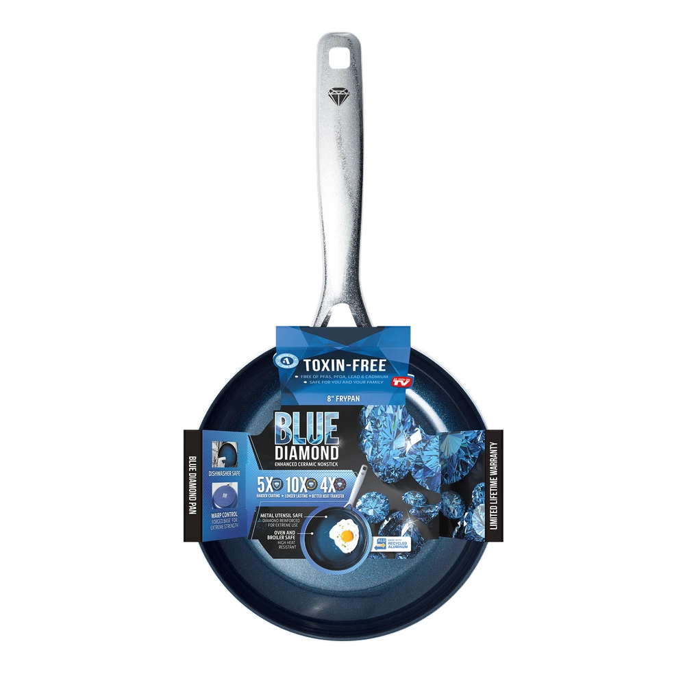 Blue Diamond Pan is the only non-stick pan with a diamond-hard finish that is 5x harder than any other non-stick pan thanks to its triple layer of Diamond-infused ceramic coating. This extremely durable non-stick coating is 10x longer lasting than traditional non-stick, and it's even metal utensil safe. With its forged base you'll never have to worry about your pan warping, wobbling or degrading over time. Blue diamond pans are lightweight and come with an ultra comfortable handle that's designed to stay cool. Get your pancakes golden brown all around with Blue diamond pans thanks to its heat distribution that's even and 4x faster than the competition. Best of all, Blue diamond is toxin-free for healthy family feasts night after night. Tasty, healthy cooking has never been easier. Enjoy your next meal On Sep 4, 2023 at 02:15:01 PDT, seller added the following information: On Jul 9, 2025 at 01:51:21 PDT, seller added the following information: On Jul 11, 2025 at 20:03:04 PDT, seller added the following information: