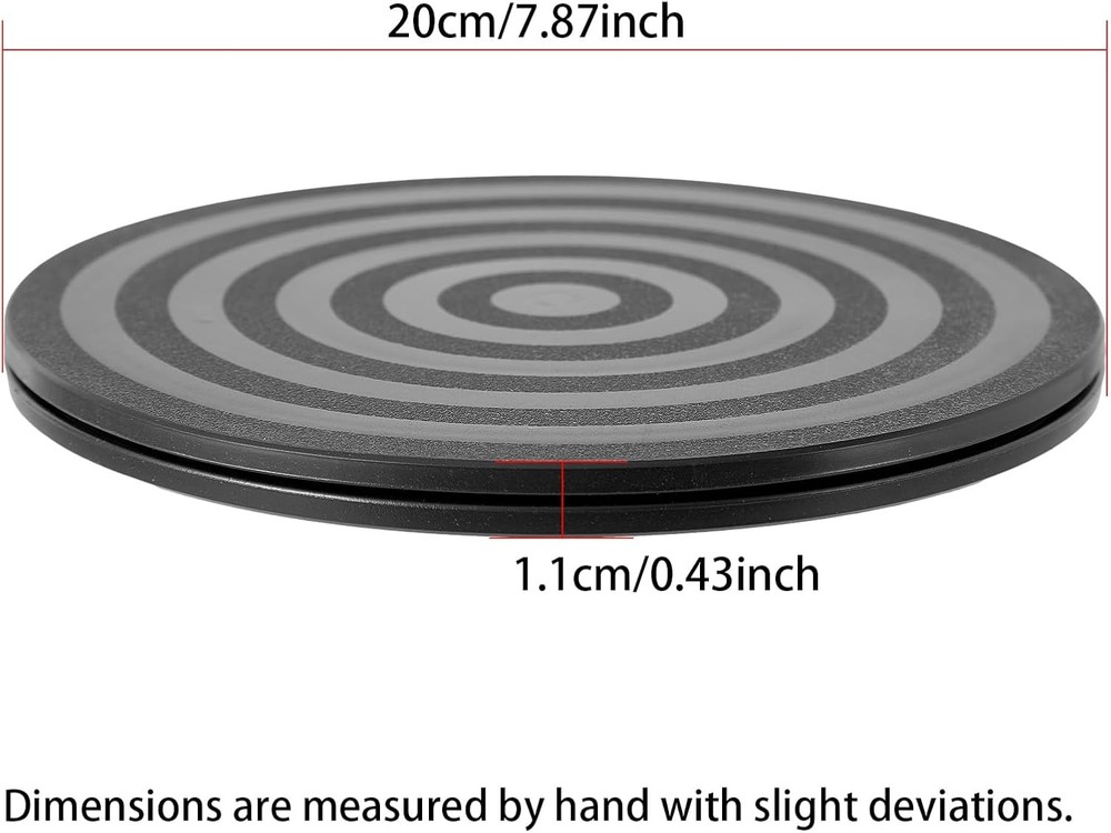 8 Inch Heavy Duty Rotating Swivel Stand - Lazy Susan with Steel 8 inch, Black Product Details Brand: HSTECH Material: Acrylonitrile Butadiene Styrene (ABS) Color: Black Item Weight: 0.23 Kilograms Maximum Weight Recommendation: 15 Pounds Item Diameter: 20 Centimeters Item Weight: 8.1 ounces Manufacturer: HSTECH Country of Origin: China Item model number: hpzp Batteries required: No Heavy Duty Swivel Turntable Includes: 8" inch diameter Lazy Susan,The diameter is 20cm and the thickness is 1.1cm. Rotating Swivel Turntable Quality: Made with 100% high impact ABS material for long-lasting, fluid rotation. Other inferior swivels are made with soft, cheap polypropylene that dent and break. Heavy Duty Swivel Turntable: The turntable has a non-slip groove. There is a bead net inside the turntable for rolling support. Strong, durable, flexible and easy to use. Heavy Duty Rotating Swivel Stand with Steel Ball Bearings Versatile: Suitable for any size Notebook Computer, heavy Plants, Arts & Crafts. Works great for monitors, TV's, Stereo Speakers, Full 360 degree Rotation. Lazy Susan: Improve access to kitchen items, swivel serving dishes, rotate house plants for even sunlight. Lazy Susan Heavy Duty Rotating Swivel Stand with Steel BallBearings Specification:Size: 8 Inch Colour: BlackHeavy Duty Rotating Swivel Stand with Steel Ball Made with 100% highimpact ABS material for long-lasting, fluid rotation. Other inferior swivelsare made with soft, cheap polypropylene that dent and break. The turntable hasa non-slip groove. There is a bead net inside the turntable for rollingsupport. Strong, durable, flexible and easy to the Lazy Susan you can vastly improve your kitchen stuff, homesupplies or garden plants, or even office or store furniture by placing it ontothe turntable and just watch how easily it's turning around by a full 360degree turn.