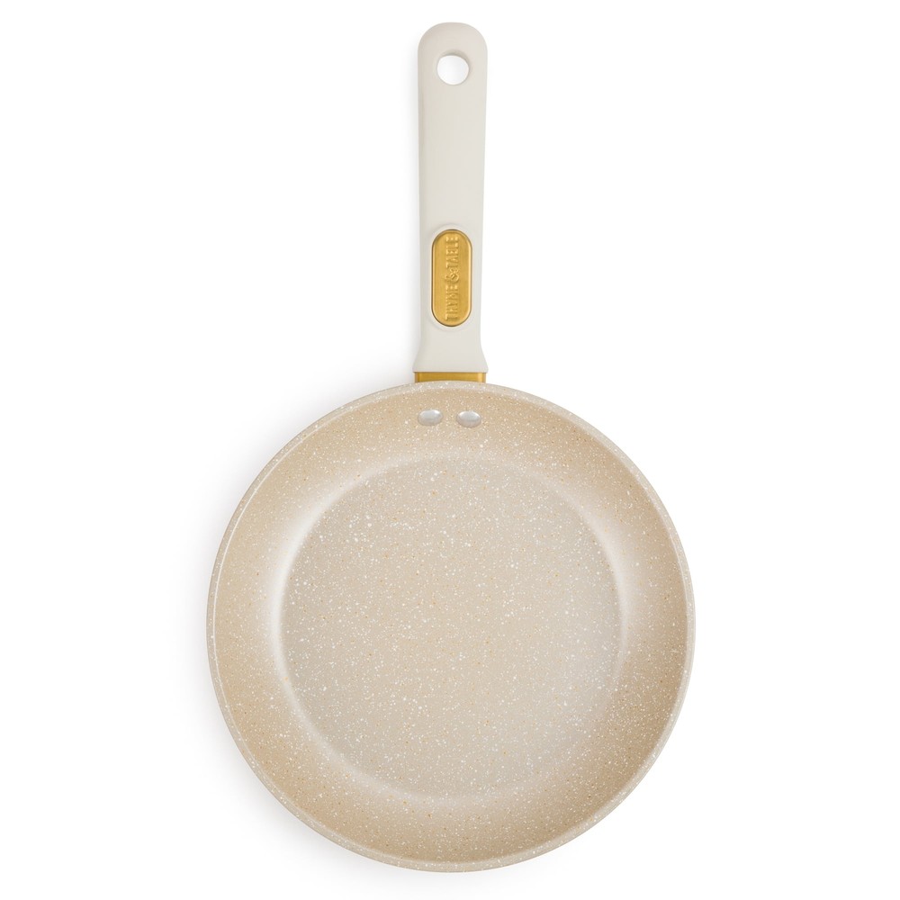 Meet the Nonstick 8-Inch Fry Pan in Taupe from our Essential line, designed for quality and affordability. Whether you're expanding yourcollection or starting fresh, this pan delivers great value without compromising performance. The nonstick surface ensures easy food release and quick cleanup, while its durable construction provides even heat distribution. Durability: The Nonstick 8-Inch Fry Pan is a versatile and essential frying pan that is built to last with premium aluminum and stainless steel, ensuring durability and reliability. Non-Stick Coating: Non-Stick Coating makes for effortless food release and quick cleanup, ideal for busy cooks who value convenience. Size and Versatility: This perfect 8-inch diameter fry pan is suitable for all cooktops, ensuring a seamless cooking experience whether you're using gas, electric, or induction stovetops. Heat Distribution: Experience even heat distribution with the induction base, allowing you to spend less time worrying about uneven cooking and more time enjoying your culinary creations. Essential for your Kitchen: The Nonstick 8-Inch Fry Pan, Taupe is the perfect versatile pan that elevates your kitchen's aesthetics while providing you an essential tool for everyday cooking, empowering you to become a chef within the walls of your own home. Cleaning Care: Dishwasher Safe 8" Fry Pan Non-Stick - Taupe & Gold