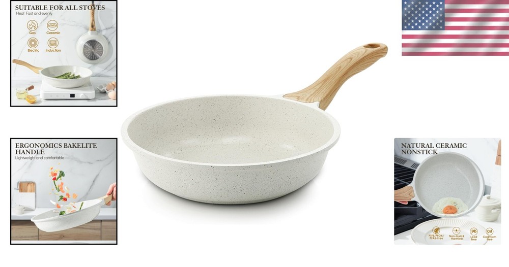 8-Inch Nonstick Ceramic Frying Pan - Healthy Induction Compatible Cookware ‹ › ‹ › ‹ › ‹ › ‹ › ‹ › ‹ › ‹ › ‹ › ‹ › 8-Inch Nonstick Ceramic Frying Pan - Healthy Induction Compatible Cookware Key Features: Made of natural ceramic, free of PFOA, PTFE, PFAS, lead, and cadmium for your safety. No toxic fumes even when overheated; no coating will come off into your food. Smooth, super nonstick surface ensures that eggs slide right off, making cooking hassle-free and delicious. Constructed from cast aluminum with an induction base for fast, even heating and long-lasting durability. Suitable for all stovetops, including induction cooktops. Comfortable woodgrain design bakelite handle that remains cool while cooking; oven safe up to 550°F (handle must be removed). Easy to clean, with a rivet-free design that allows quick wipe-downs with soap and warm water. Made from recycled aluminum, contributing to an impressive 80% reduction in carbon dioxide emissions. Benefits: Enjoy peace of mind while cooking with non-toxic, health-conscious materials. Experience effortless cooking with an ultra nonstick surface that enhances flavor with less oil. Trust in the durable construction that resists warping, wobbling, or degrading over time. Simplify your cleanup routine with a quick wipe-down, leaving you more time to savor creations. Enhance your eco-friendly cooking practices while never compromising on performance. Why Choose Our 8-Inch Nonstick Ceramic Frying Pan? Say farewell to worries about harmful chemicals entering your food! Our expertly designed frying pan combines high safety standards with top performance. Crafted from natural materials, this skillet brings a new level of safety and efficiency to your cooking experience. With its super nonstick surface and induction compatibility, your culinary adventures will be easier, healthier, and more enjoyable than ever. Elevate your cooking experience today with the 8-Inch Nonstick Ceramic Frying Pan and transform the way you prepare meals! Shipping Free & Fast Shipping - We offer free shipping to most of the USA with a normal delivery time of 3-7 days. However, due to the current situation, additional delivery time (up to 3 weeks) may be required for some items. Alternative Carriers - We may use alternative carriers (e.g. USPS, FedEx, UPS, etc.) to ensure your package arrives safely and on time. Due to the use of multiple carriers, we are unable to provide a tracking number automatically. Handling Time - Orders are processed and shipped within 1-2 business days of receiving cleared payment. Shipping Restrictions - Shipping to Alaska, Hawaii, Puerto Rico, Guam, and other US territories may incur shipping charges or delivery restrictions. Please contact us before ordering, or your order can be refunded/cancelled. State Restrictions - There may be restrictions based on your state of purchase. For example, certain items may not be shipped to California due to state regulations. Contact for Tracking Updates - If you require tracking updates or have any concerns about the delivery of your order, please feel free to contact us, and we will be happy to assist you. Return 30-Day Hassle-Free Returns - We want you to be completely satisfied with your purchase. If you are not, you can return the item within 30 days of receiving it for a full refund or exchange. Easy Return Process - To start a return, simply contact us and we will provide you with a prepaid return shipping label and detailed instructions. Restocking Fee - There are no restocking fees for returns. However, the buyer is responsible for return shipping costs if the return is not due to a seller's error. Refund Processing Time - Refunds will be processed within 5 business days of receiving the returned item in its condition. Payment We accept all major credit cards, PayPal, and Apple Pay for your convenience. Your payment information is secure and encrypted to ensure a safe and seamless transaction. Please complete your payment within 3 days of purchase to avoid any delays in shipping. Feedback Your feedback is extremely important to us. We strive to provide the best products and customer service possible. If you are satisfied with your purchase, please take a moment to leave us a positive review. If you have any concerns or issues with your order, please contact us before leaving negative feedback. We are committed to resolving any problems and ensuring your satisfaction. Contact Us If you have any questions or concerns, please feel free to out to our customer support team. You can contact us through the eBay messaging system. We are available Monday to Friday, 9:00 am to 5:00 pm EST, and we will do our best to respond to your inquiry within 24 hours. Buy it now and enjoy a pleasant shopping experience! Unit Quantity: 1.54 Stove Type Compatibility: Electric,Gas,Induction Set Includes: Frying Pan Material: Aluminum,Ceramic Features: Easy Clean,Non-Stick,Oven-Safe Type of Oven: Electric,Gas,Induction Type: Frying Pan Surface Coating: Ceramic Item Diameter: 8 in Color: White Shape: Round Item Depth: 2 in Number of Items in Set: One-Piece Heat Resistance: 550°F Item Weight: 1.54 lb Unit Type: lb