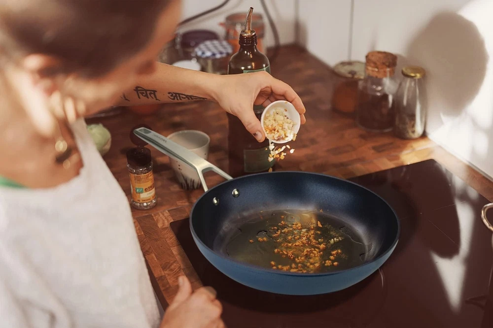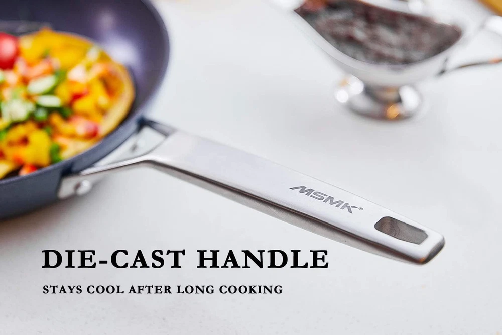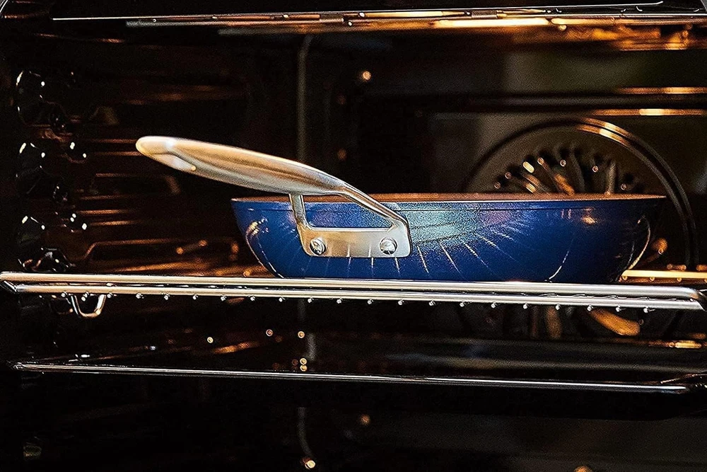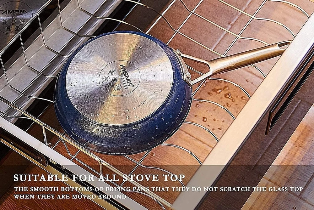 Shine Bright like a Diamond: Attractived blue colored outer – a deep, shiny shade that looks like enameling, find light in the beautiful sea, like diamond in the sky, but the one thing that really stands out is matchless beauty color changing inner coating to a deep blue colour in certain lights, you saw the life inside your eyes. Designed for stove top:Heavy-gauge 4mm Fully Encapsulated Stainless-steel bonded Anti-Warp bottom, induction Heat Transfer is much faster than with other nonstick frying pan, heats more evenly, smooth No Hole bottom is designed to avoid scratching up the Stove Top. This is a multi use pan because this pan(s) can go all the way. High heat, in the oven, sear meats saute, in the dishwasher. Get restaurant-quality meals at home just like a pro chef with nonstick frying pans! Coated with a triple-layer of nonstick material and tough titanium ceramic diamond compound to make them super durable. USA and GRE TUV approved, PFOA FREE, no nickel, lead and other heavy metals, safe for children Easier to store: Smaller frying pans are much easier to store in kitchen cabinets and drawers than larger ones, and give you more control over the heat and cooking process, as the pan heats up quicker and more evenly Heavy-gauge 4mm Stainless-steel bonded Anti-Warp bottom, induction Heat Transfer is much faster than with other nonstick frying pan, heats more evenly, smooth No Hole bottom is designed to avoid scratching up the Stove Top Ergonomic Cast Stay-Cool Stainless-steel handle which always stays cool while cooking and has a good grip, meaning it is easy to flip food, the handle can prevent water and oil from entering into the handle, which is easier to clean than other stainless steel handles Oven safe up to 450°F: You can use this skillet on a cooktop and then put it in oven without transferring the food to another oven safe dish CUSTOMER SERVICE:100% Satisfaction -30-DAY 100% MONEY BACK IF THERE IS ANY PRODUCT QUALITY PROBLEM. We offer a 1 Year Long Waranty When You the Provided Maintenance and Usage Insiructions. Safe: Diamond and titanium non-stick coating from USA, GRE TUV approved, PFOA FREE, no nickel, lead and other heavy metals, safe for children Easy to Clean Design: Unlike other pans, gooey, messy and cheesy dishes like quesadillas and grilled cheese will slide right off your non-stick pans. You can easily wipe mess away when you’re done without worrying about burnt-on food. Solid Stay Cool handle is easier to clean than hollow handle Unrivaled Durable Nonstick: Non-stick pans allow you to more easily flip seafood than the original non-stick pan while still getting that the restaurant-quality sear The heat conduction of the nonstick egg frying pan helps to lock in the flavor and moisture of the steak, while the high heat helps to create a flavorful, crispy crust. The result is a steak that is tender and juicy on the inside, with a flavorful, crunchy exterior