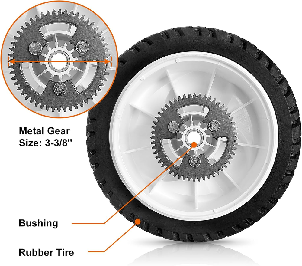 Store New Arrivals Add to Favorite View Feedback Contact 105-3036 Wheels for Toro 22" Recycler Lawn Mower - 8 Inch Rear Drive Wheel 52 Gear Teeth Compatible with Toro 20041 20066 20017 20068 20073 Recycler Self-Propelled Push Mower, 2 Pack Description Style 105-3036 Wheels Size 8 x 2 inch Wheel Size 8 Inches Item Diameter 22 Inches Rim Width 2 Inches Exterior Finish Unfinished Material Rubber Item Weight 5 pounds Manufacturer Part Number 105-3036 Pitch Circle Diameter 0.5 Inches Rim Size 618 Inches Item Weight 5 Pounds Bolt Pattern (Number of Holes) 20 Offset 1.75 Inches Bore Diameter 0.5 Inches Vehicle Service Type Mower, Tractor Model 105-3036 【Fit Models】These 8" rear drive wheels are mainly used for Toro 22" recycler lawn mower, fit models 20013, 20014, 20017, 20018, 20031, 20041, 20047, 20049, 20051, 20066, 20067, 20068, 20070, 20073, etc. For more models, please check the product description. 【 Part Number】105-3036, 105-3024, 105-3025. This wheel could also be used as front tire for Toro recycler self-propelled walk-behind personal pace mulching mower. We also have another product(B09XMDQDCJ) for toro 22" lawn mower, but they fit for toro's different models, please double check your part number, tractor model, and wheel size before you order. 【Durable & Easy to Install】Just need a wrench to bolt up the wheel. For optimal performance, wheels are equipped with metal gear to resist wear and tough wheel tread to increase traction. 【Product Dimensions】wheel size 8'' x 2'', gear size 3-3/8'', hub offset 1-3/4'', bore size 1/2''. 【Package Included】2 pcs of wheel equipped with sturdy rubber tire, bushing and metal drive gear. Product Description 8 Inch Wheel for Toro 105-3036 Part Number: 105-3036, 105-3024, 105-3025. (We also have another product(B09XMDQDCJ) for toro 22" lawn mower, but they fit for toro's different models, please double check your part number, tractor model, and wheel size before you order.) Specification Diameter: 8 Inch Width: 2 Inch Bore: 1/2 Inch Hub Offset: 1-3/4 Inch Package Included: Wheel x 2 Maybe there is certain deviation in manual measuring, please refer to the actual item. Wheels Features Hard Plastic with 3-Spoke These high-quality wheels will help your equipment to become smoother and quieter. 1/2 Inch Bore Size Please check your original part number, size, shape to ensure that our accessory will fit your model. Metal Gear Size: 3-3/8" Wheels are equipped with metal gear to resist wear for optimal performance Durable Rubber Tire Rubber tire enables to reduce noise and improve grip. Compatible Brand and Models 105-3036 Lawn mower front rear wheel compatible with Toro (SN refers to serial number. ) 20013 2002 (SN 220000001-220300000), 20013 2002 (SN 220300001-220999999), 20013 2003 (SN 230000001-230999999), 20013 2004 (SN 240000001-240999999), 20013 2005 (SN 250000001-250999999), 20013 2006 (SN 260000001-260999999), 20014 2002 (SN 220000001-220300000), 20014 (SN 220300001-220999999), 20014 (SN 230000001-230999999), 20017 (SN 220000001-220300000), 20017 (SN 220300001-220999999), 20017 (SN 230000001-230999999), 20017 (SN 240000001-240999999), 20017 (SN 250000001-250999999), 20017 (SN 260000001-260999999), 20018 (SN 220000001-220300000),20018 (SN 220300001-220999999), 20018 (SN 230000001-230999999), 20031 (SN 240000001-240999999), 20041 (SN 250000001-250999999), 20047 (SN 260000001-260999999), 20049 (SN 250000001-250999999), 20051 (SN 240000001-240999999), 20066 (SN 270000001-270999999),20066 (SN 280000001-280999999), 20067 (SN 270000001-270999999),20067 (SN 280000001-280999999), 20068 (SN 280000001-280999999), 20070 (SN 260000001-260999999), 20073 (SN 270000001-270999999),20073A (SN 270000001-270999999), 20074 (SN 270000001-270999999),20074A (SN 270000001-270999999), 20075 (SN 270000001-270999999), 20076 (SN 270000001-270999999),20076A (SN 270000001-270999999), 20079 (SN 260000001-260999999), 20089 (SN 280000001-280999999), 20096 (SN 270000001-270999999), 20098 (SN 270000001-270999999), 20112 (SN 280000001-280999999),20112 (SN 290000001-290999999), 20113 (SN 280000001-280999999),20113 (SN 290000001-290999999), 20655 (SN 270000001-270999999),20655 (SN 280000001-280999999), 20655 (SN 290000001-290999999),20655 (SN 240000001-240999999), 20656 (SN 260000001-260999999), 20658 (SN 280000001-280999999),20658 (SN 290000001-290999999). ABOUT US We offer the best prices around on high quality products. Our E-store includes media such as books, movies, music and games while offering electronics, toys, sporting apparel, clothing, tools, general home, garden items and more. SHIPPING We are always working hard to ensure your package arrives as soon as possible. Please understand that some factors like weather, high postal traffic, and the performance of shipping companies are outside of our control. We offer free shipping to the lower 48 states and ship within 2 business days of payment, usually sooner. We do not accept P.O. Boxes. Please provide a physical address. For shipping outside of the continental USA, we only use eBay's Global Shipping Program.The item is shipped to KY and then sent to the rest of the world. International customers are responsible for all duties and taxes. Continue to check out in order to calculate costs for shipping the item to your country. Messages regarding eBay's Global Shipping Program MUST be directed at eBay EXCLUSIVELY. RETURNS We offer a 30-Day Return Policy on items which you are not completely satisfied with. You have the option for a full-refund or an exchange of the item. No returns are available on items shipped outside of the USA. PAYMENT We accept PayPal. CONTACT US This page content is yet to come Please ad us to your favorite seller and visit again later Thank You CUSTOMER SATISFACTION We try our very best to make sure every customer is completely satisfied. If there's a problem, message us! We're happy to help. WE ACCEPT Copyright © 2021 AutoDS. | All Rights Reserved