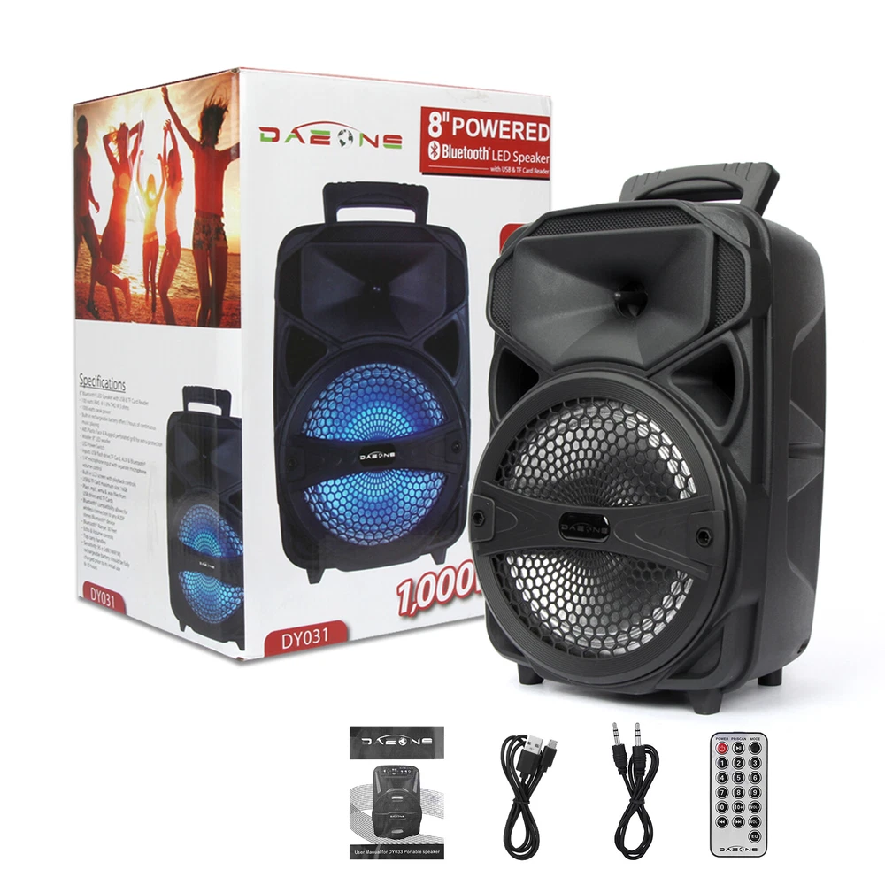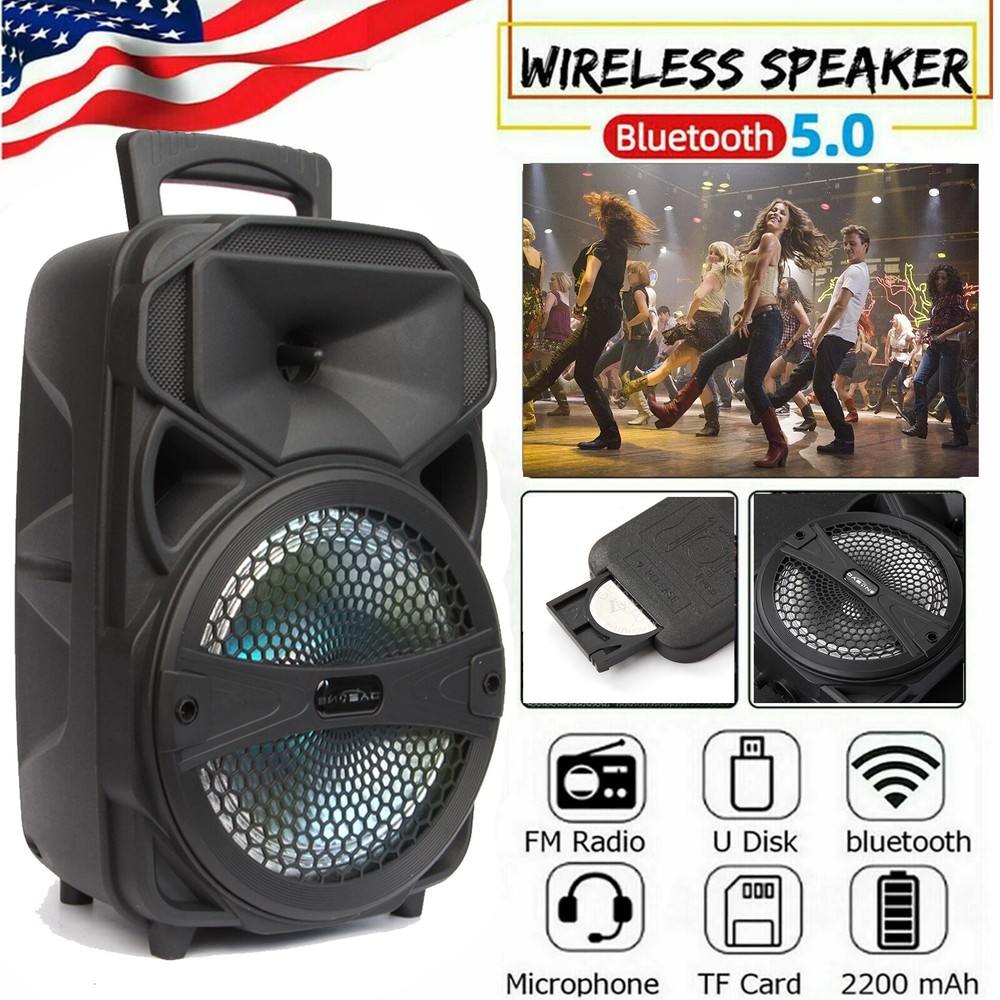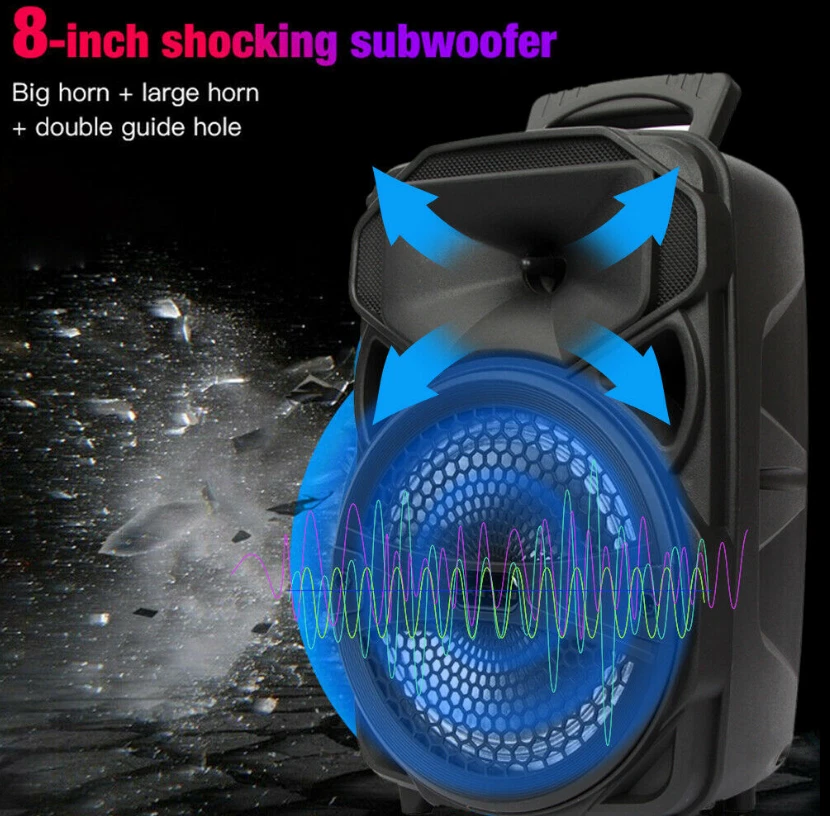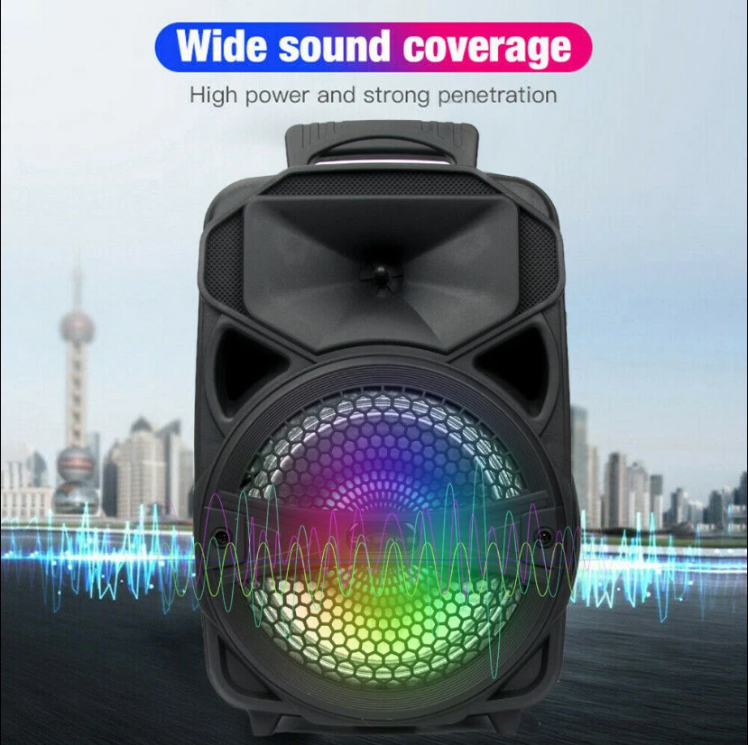 8'' Bluetooth Speaker Wireless 1000W Heavy Bass Sound FM Party Speaker System Features: 1. Highly efficient 8” woofer and 1” tweeter produces deep and low bass while the mids and highs remain loud and clear even when the volume is cranked up. The bass complements your favorite party tunes with deep, natural low vibrations, crank up the volume and have a blast 2. Smooth bluetooth connection allows you to stream your favorite music straight from your smartphone, iPod, tablet or any other suitable BT device within 10M/32 feet. Just move about and keep the music going with no cable and no hassle 3. W hen Bluetooth device isn’t available, you can pop into a flash disk or micro SD card, or connect to your 3.5mm audio device like MP3/MP4/5 player, etc. to play your favorite tunes 4. H eavy-duty top handle and telescopic carrying handle, you’re free to take this speaker anywhere you go 5. Equipped with a remote control, you can control the speaker freely Specifications: Color: black Material: molded PP plastic cabinet Input Voltage: AC 100-240V 50/60Hz DC:5.0V Output Power(RMS): 10W Peak Watt: 1000w Built-in Battery:7.4V 1800mAh 18650 li-ion battery Package includes: 1 × Wireless Party Speaker 1 × Remote Control 1 × Power Adapter 1 × User Manual Payment Shipping Return Feedback Question Payment We accept payment via Paypal ONLY. Immediate payment is required & Shipping will be arranged only your payment is cleared. Shipping Same business day dispatch if paid by 4 pm EST(1 pm PDT). No shipping on weekend or Public Holidays & No responsibility for any customs duty. Return We stand behind our products. Items can be returned for exchange or full refund within 60 days from the date you receive your item. Return shipping is the responsibility of buyer unless the return is a result of our mistake (i.e., your receive the wrong item or damaged item). We will pay for shipping replacement back to you if an exchange is requested. If you want to initiate a return, simply clicks "Return this item" next to the transaction in My eBay, chooses a reason, and prints a return shipping label and packing slip. We’re automatically notified. Feedback Please leave us a FIVE star and POSITIVE feedback if you are satisfied with our product and service. Neutral or negative feedback will not solve problems happily. We believe communication will fix problems and hope every customer can have a good purchasing experience. Question All ebay message will be responded within 1 business day or less, except weekends and holiday!