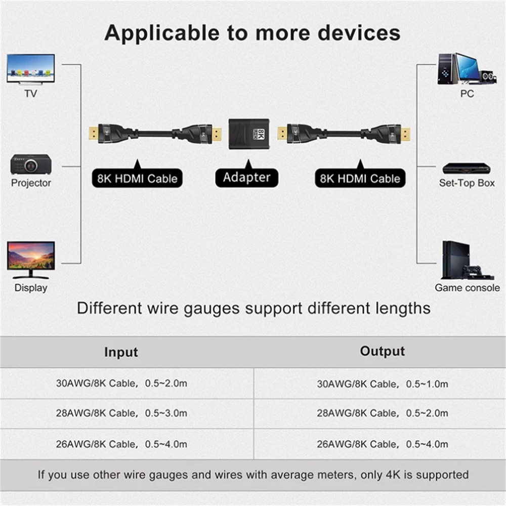 Product Description HDMI-Compatible Adapter 8K 60Hz 4K 120Hz Female To Female Connector HDMI-Compatible 2.1 Cable Extension Converter HDMI-Compatible Adapter Coupler Specification: Material: Aluminum alloy/PVC Interface process: Gold plating Resolution: 7680x4320P Bandwidth: 48Gbps Refresh rate: 8K@60Hz /4K120Hz Version: 2.1 (Backward compatibility 2.0) Feature: 1. UHD 2.1 8K Resolution: Supports 7680x4320, 8K/60Hz and compatible with 4K@120Hz, 48Gbps. Offers more dynamic range and image detail, providing a deeper and more realistic viewing experience. Note: The host and display devices must also be version 2.1 to meet requirements. 2. Stunning 3D Visual Effects: Create a high-definition home theater with 3D imaging technology. Smooth and natural color transitions provide vivid and lifelike images that transport you into the scene. 3. Compatibility with Various Devices: Suitable for monitors/ TVs/ projectors/ desktop computers/ laptops/ game consoles, etc. Please check the interface type before purchasing and HDMI-compatible cables are required for use. Product List: 1x HDMI-Compatible Adapter Shipping 1. Items sent from US warehouse. 2.Receiving time = Processing time + Shipping time . 3. Processing Time: Around 1-2 business Days . 4. Shipping Time: 3-5 business day. it may have a little delay during some holiday (such as Christmas), any problem, please feel free to contact. Returns 1. 30 days warranty from the purchased date. Please contact us via email before returning the defective item. 2. Our warranty does not extended to any product that are physically damaged or that are not under normal operating conditions as result of misuse or improper installation on the buyer/user's part. 3. Return items should include the original packaging and all accessories. buyers MUST contact us for the returning address. 4. In all cases, buyers pay shipping fees at their own cost to return products for exchange or refund. We will be responsible for the postage of replacements. Refund will be made upon receipt of the returned item. Contact Us If you have any question, please e-mail us immediately, we will reply you as quickly as possible. We care about our valued customers, and will always try to help you. About Us We are committed to providing you with the best quality products and services. We hope your shopping experience is easy and enjoyable. Payment We accept all verified payment from eBay. You may also like 13Pack Metal 0.6-2.0mm 90mm Long Screwdrivers Repair Tools For Watchmakers Watch 15.04 USD 1.99 USD Foot Pedal-Pressure Control-Valve 3 Way 2 Position 1/4" Air Pneumatic Switch 25.43 USD 1.99 USD Durable Abrasive Mounted Stone For Rotary Tools Grinding Stone Wheel Head Dremel 9.95 USD 1.99 USD WiFi 6 6E Antenna Tri-Band 6GHz 5GHz 2.4GHz RP-SMA Male For PC Desktop Computer 14.97 USD 1.99 USD FM Antenna 3.5mm for Bose Wave Music System Indoor Sound Radio Stereo Receiver F 10.79 USD 1.99 USD 2 Pcs New Microphone Furry Windscreen Muff Wind Cover Foam Cover for Blue Yeti 15.04 USD 1.99 USD powered by