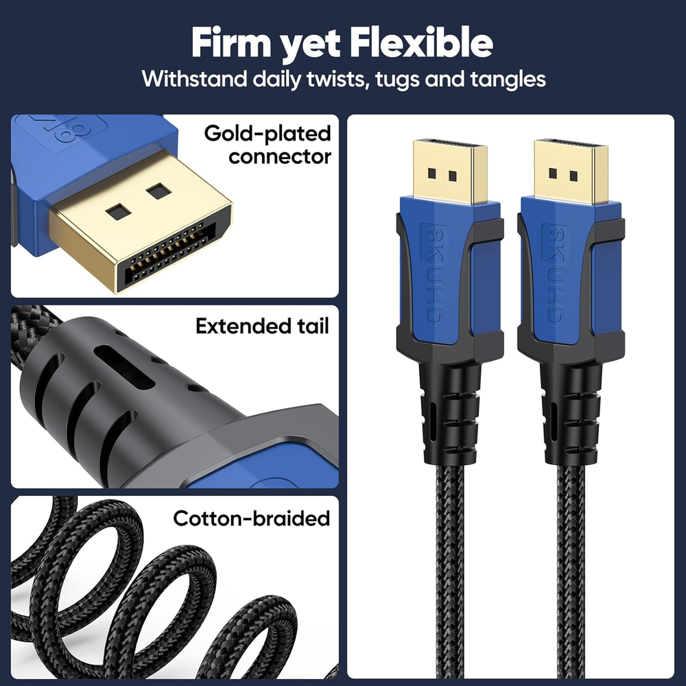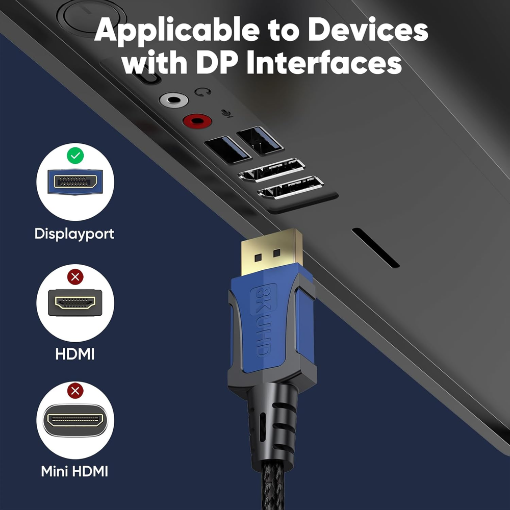 Store New Arrivals Add to Favorite View Feedback Contact Displayport 1.4 Cable 10Ft, 8K Long Display Port Cord DP Cables 10 Feet Description Item model number FE087-21 Number of Items 1 Cable Type DisplayPort 1.4 Country of Origin China Connector Type Displayport 1.4 Compatible Devices Projector, Laptop, Monitor, and More, Personal Computer Special Feature Braided, DisplayPort 1.4, New Design Package Dimensions 11.42 x 8.46 x 0.59 inches; 5.61 ounces Size 10 Feet 【8K High Resolutions】The displayport cable supports 8K(7680x4320)@60Hz, 5K(5120x2880)@60Hz, 4K@144Hz, 2K@240Hz, 1080P@240Hz, backwards compatible with displayport 1.3, 1.2, 1.2a, 1.1 and 1.0. Make your device present a lifelike world, as if you are in the real world. 【Surprising High Bandwidth】Compared to 4K dp cables, 8K dp to dp cable can provide higher bandwidth, support 32.4Gbps high bandwidth, keep your game character do no motion blur, screen is not torn or flickering. Having stronger screen output and smoother gaming experience. 【Excellent Dynamic HDR】Dynamic HDR is an important performance of the displayport 1.4, which can improve image quality and color, make the picture delicate and realistic, while also having 12 bit color depth, providing a richer color picture, making the vision look refreshed. 【Thoughtful Exterior Design】We consider the convenience of users to use displayport to displayport cable, choosing non-locking buckle design to avoid damaging your equipment when pulling out monitors and graphics cards. The cord of cotton-braid and extend tail can stable heat dissipation and extending product life. 【Wide Compatibility】Our displayport to displayport cable is directly connected from the desktop/laptop to the monitor. Compatible with Odyssey G7 G9 CHG90 CRG9, BenQ, Dell, HP, Acer, iiyama, Alienware displays and more. Suitable for graphics cards and displays with display ports (Do not use extensions or adapters as signal conversion can reduce performance). 【What Can You Get】We always devote to offer high quality items and premium service. After you purchase our monitor cables display port, you will receive our 24-hour after-sales service and 24 month (two-year) manufacturer warranty period, allowing you to purchase with confidence. Product Description Image Transmission Series Add to Cart Add to Cart Customer Reviews 4.4 out of 5 stars 47 4.1 out of 5 stars 22 4.4 out of 5 stars 185 4.5 out of 5 stars 409 Price $6.99 $ 6 . 99 — $7.99 $ 7 . 99 — Connector Type Display Port Display Port HDMI to VGA DP to DVI Cable Length 10 Feet 6 Ft 3 Ft / Material Cotton-braid Nylon-braid Nylon-braid Silicone Connector Gender Male-to-Male Male-to-Male Male-to-Male Female-to-Male Resolution Ratio 8K@60Hz 5K@60Hz 1080P@240Hz 16K@60Hz 8K@120Hz 4K@240Hz 1080P 1080P ABOUT US We offer the best prices around on high quality products. Our E-store includes media such as books, movies, music and games while offering electronics, toys, sporting apparel, clothing, tools, general home, garden items and more. SHIPPING We are always working hard to ensure your package arrives as soon as possible. Please understand that some factors like weather, high postal traffic, and the performance of shipping companies are outside of our control. We offer free shipping to the lower 48 states and ship within 2 business days of payment, usually sooner. We do not accept P.O. Boxes. Please provide a physical address. For shipping outside of the continental USA, we only use eBay's Global Shipping Program.The item is shipped to KY and then sent to the rest of the world. International customers are responsible for all duties and taxes. Continue to check out in order to calculate costs for shipping the item to your country. Messages regarding eBay's Global Shipping Program MUST be directed at eBay EXCLUSIVELY. RETURNS We offer a 30-Day Return Policy on items which you are not completely satisfied with. You have the option for a full-refund or an exchange of the item. No returns are available on items shipped outside of the USA. PAYMENT We accept PayPal. CONTACT US This page content is yet to come Please ad us to your favorite seller and visit again later Thank You CUSTOMER SATISFACTION We try our very best to make sure every customer is completely satisfied. If there's a problem, message us! We're happy to help. WE ACCEPT Copyright © 2021 AutoDS. | All Rights Reserved