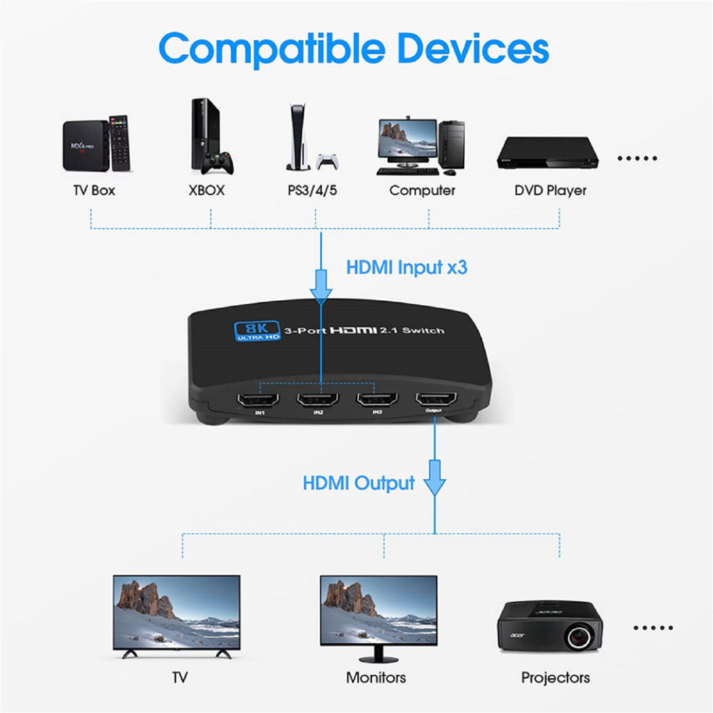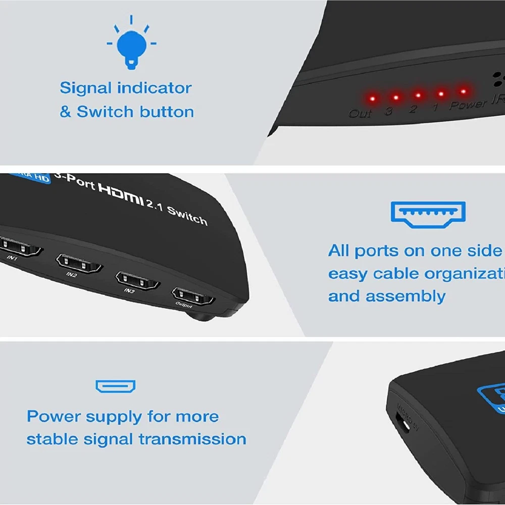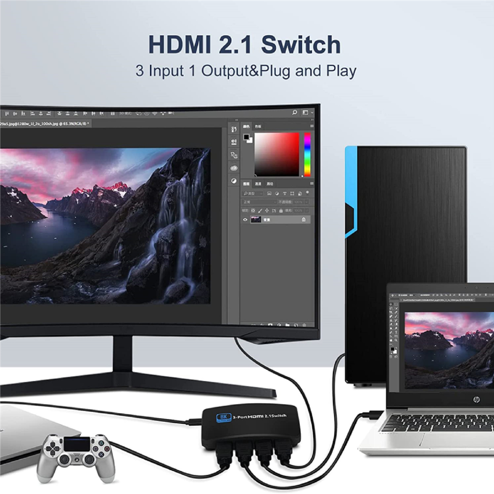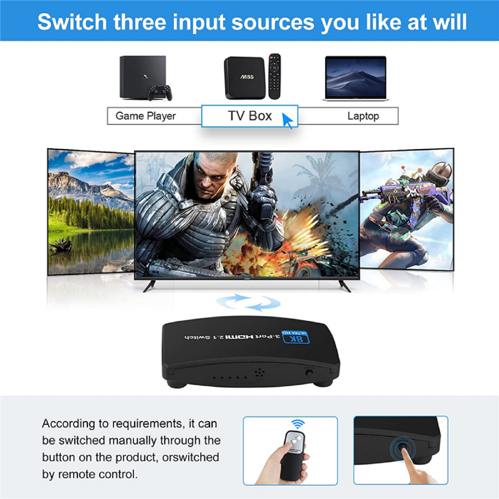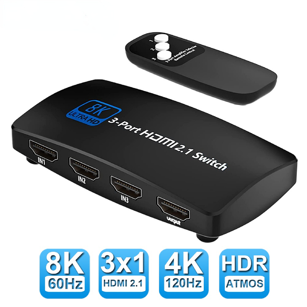 8K HDMI 2.1 Switch 3-Port 144Hz for PS5 Xbox PC