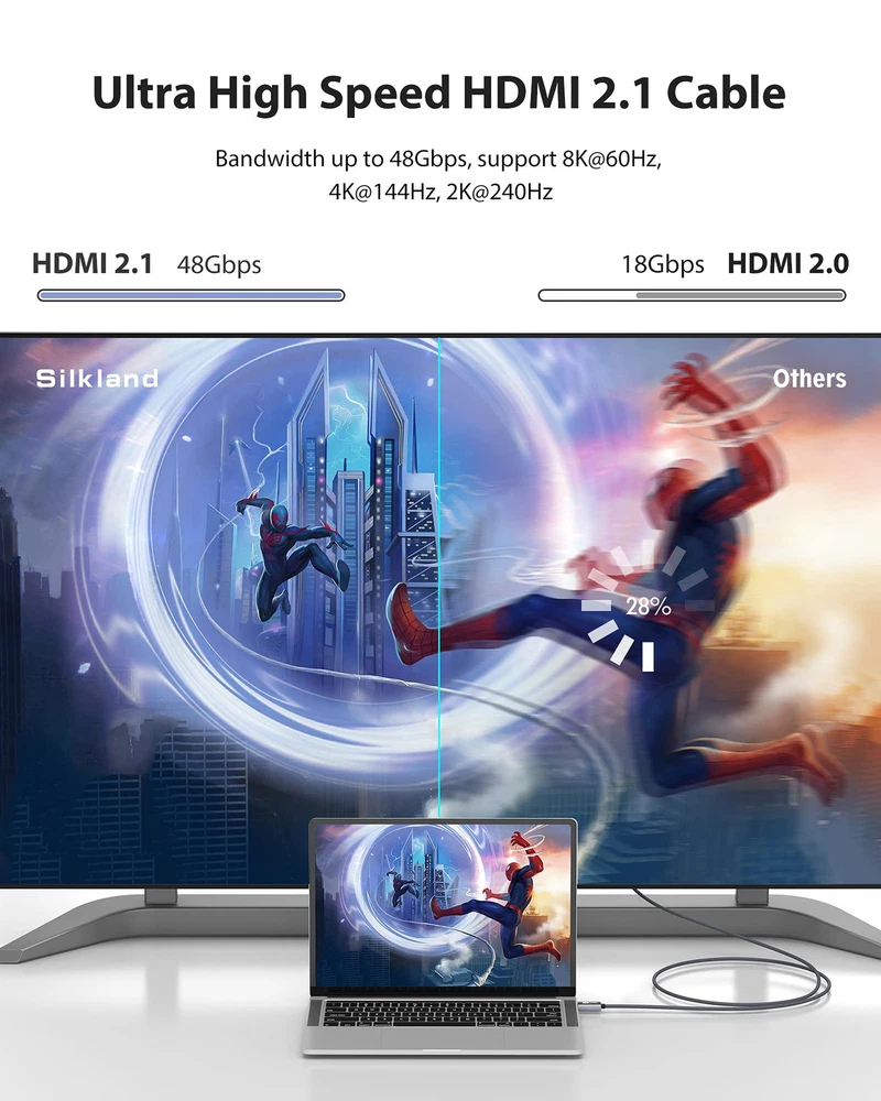 [Use for ARC/ eARC Audio] it is a standard HDMI 2.1 version cable,which are equipped with eARC technology. (Compatible with arc function) Supports the latest high-bitrate audio formats including DTS Master, DTS:X, Dolby Atoms, eARC. Provides enhanced support for your soundbar or AV receiver. In other words, your ears are in for a surprise. [HDR in 8K] This 8K HDMI Cable uses the most cutting-edge technology, allows for a brilliant, lifelike images. clearly displays every particle, and accurately processes every signal source. With 8K HDMI's unique dynamic HDR and 12 Bit color processing technology, each scene of the video is every frame, with more ideal depth, brightness, detail, contrast and wider color gamut. [Supports 120fps] Take your gaming to the next level. A 48Gbps higher bandwidth, especially suitable for the latest generation of game consoles. up to 120Hz/144Hz refresh rate at 4K resolution gives you an advantage over the competition. Pair with your Xbox Series X, PlayStation 5, or any other compatible gaming console or HDMI device to unleash the full potential and speed of 4K HDR. [Better Continuity] More expensive zinc alloy housing have excellent corrosion resistance. 24K gold-plated connectors and 3-layer copper shielding provides reliable connectivity and preserves signal purity. Less screen flickering, or white dots, more flawless videos. Withstands 25,000+ bends for strong durability. [Services you will also get]Originated from confidence in product quality. All costs covered during 2-year service of replacement process of this HDMI 2.1 Cable. Please contact us if you have any question, friendly and prompt customer service will be offered within 24 hours.