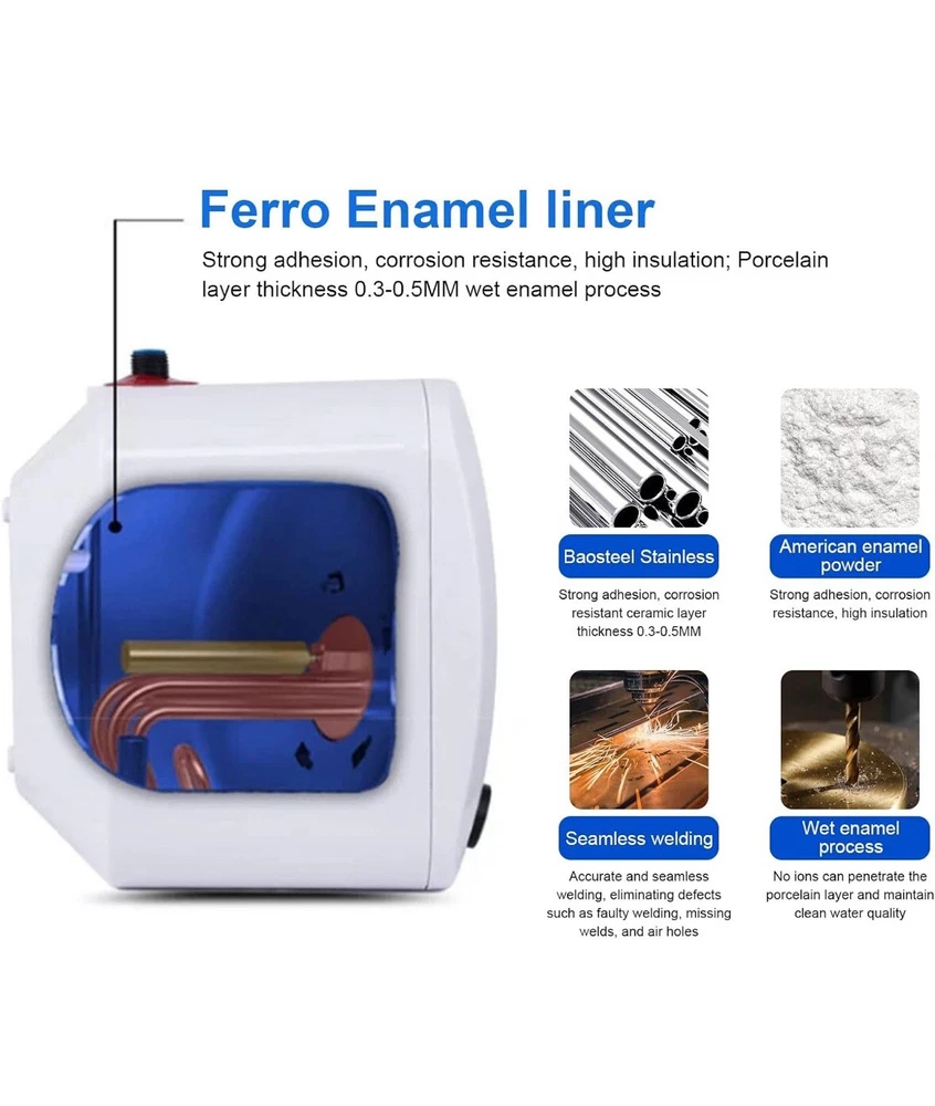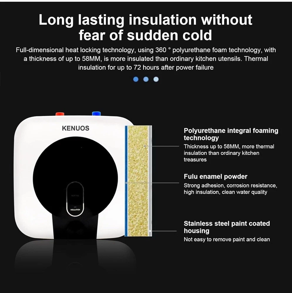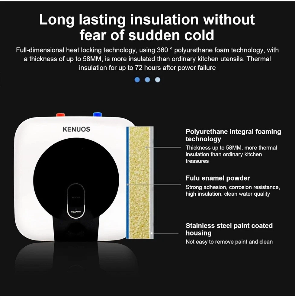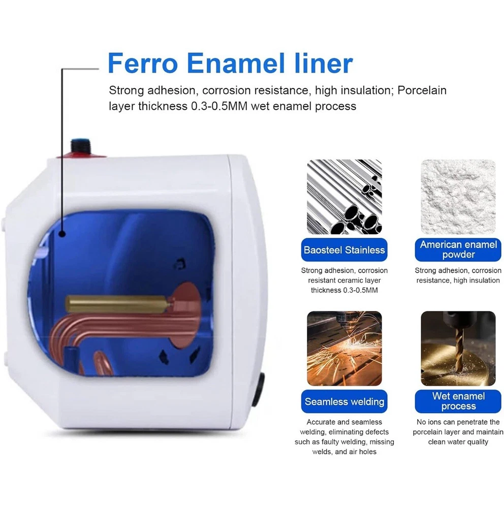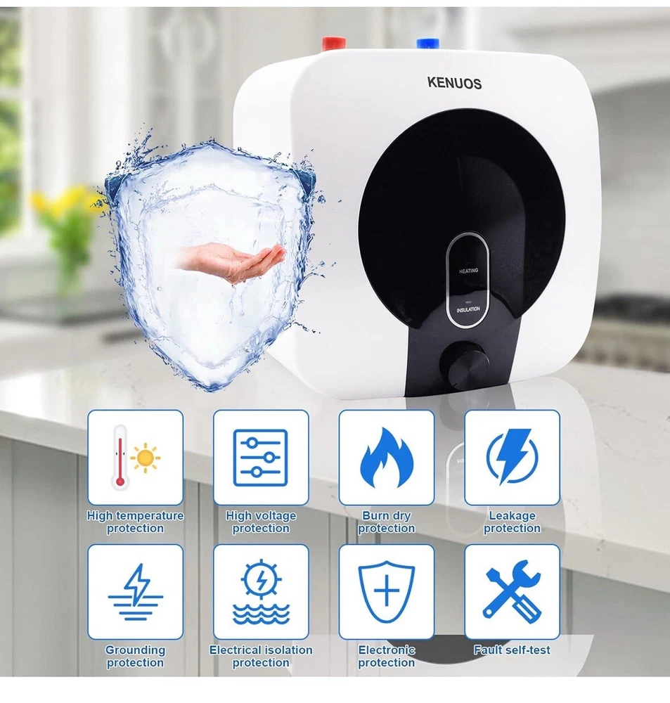 Temperature Adjustment Range:30-65 ℃/86-149 ° FFirst Hour Recovery:Does Not ApplyPower:1500WItem Width:Does Not ApplyShape:RectangleBrand:UnbrandedPlug:US StandardTank Lining Material:/Applicable Water Pressure:0.05-0.6MPAPackage Size:38*34.5*34cm/14.9*13.58*13.38inWater Connection:Does Not ApplyType:Condensing Tankless Water HeaterMaterial:Plastic, Stainless Steel, 316L Stainless SteelPower Source:Corded ElectricBTU/h Heating Rating:Does Not AppyVoltage:110VAmperage:Does Not ApplyManufacturer Warranty:4 YearsHeating Time:8-15 minutesItem Height:Does Not ApplyCapacity:8L/2.11galPower Cord Length:81cm/31.88inWater Temperature Range:/MPN:Does not applyNet Weight:3.35kg/7.38lbsFeature 1:Easy installation,Convenient Use,Easy OperationEnergy Star:AWater Onlet Mode:Upper Water OnletWaterproof Grade:IPX4Jacket Diameter:Does Not ApplyHeating System:Storage TankProduct Size:30*28*28cm/11.81*11*11inGross Weight:4.1kg/9lbsAssembly Required:YesColor:WhiteExhaust Pipe Length:59cm/23.22inFeatures:1500W power and fast thermal conductivity heating pipeMounting Location:Under SinkCountry/Region of Manufacture:China
